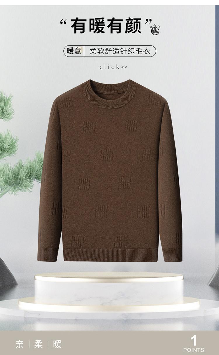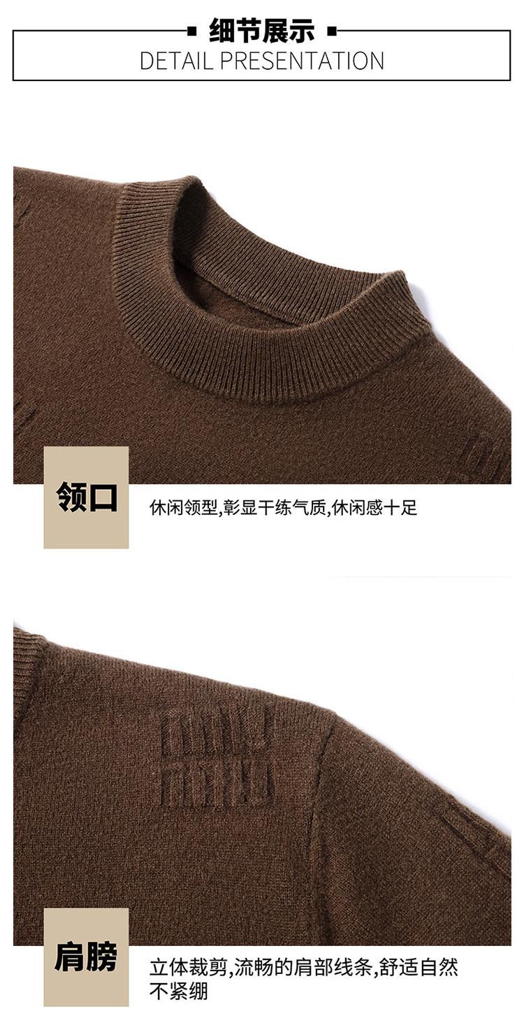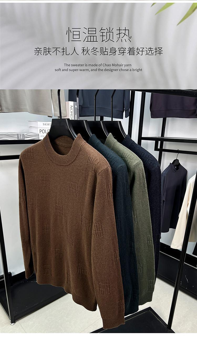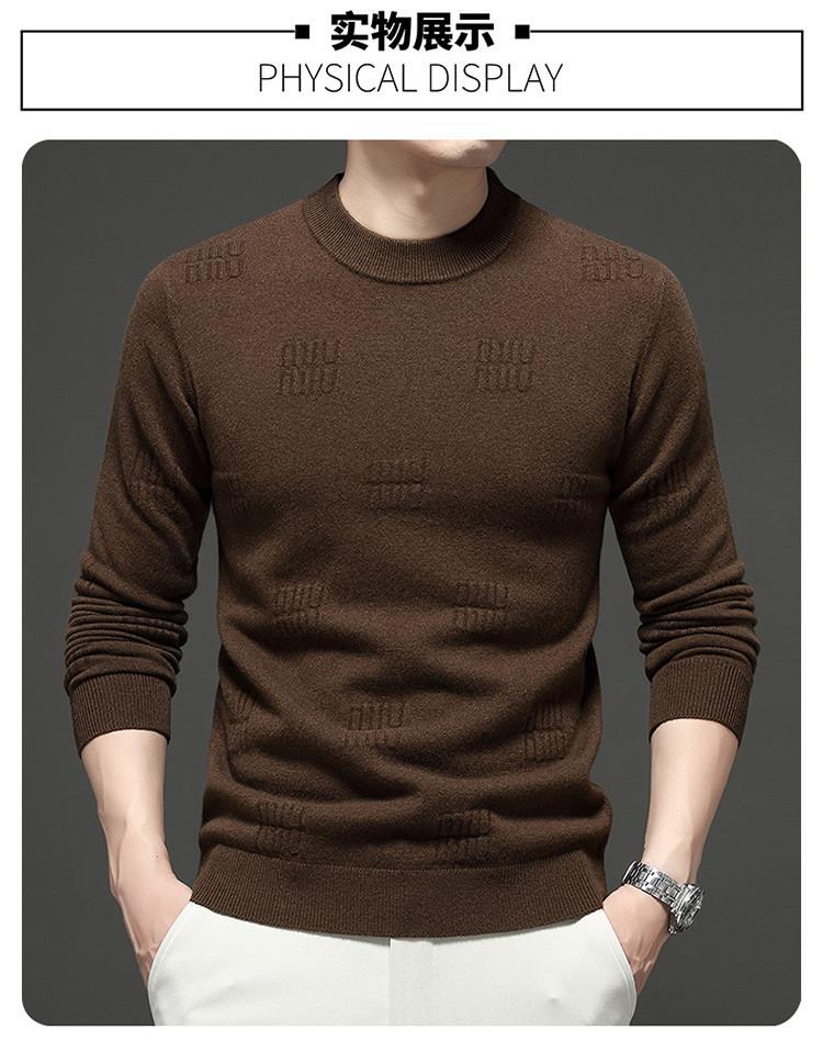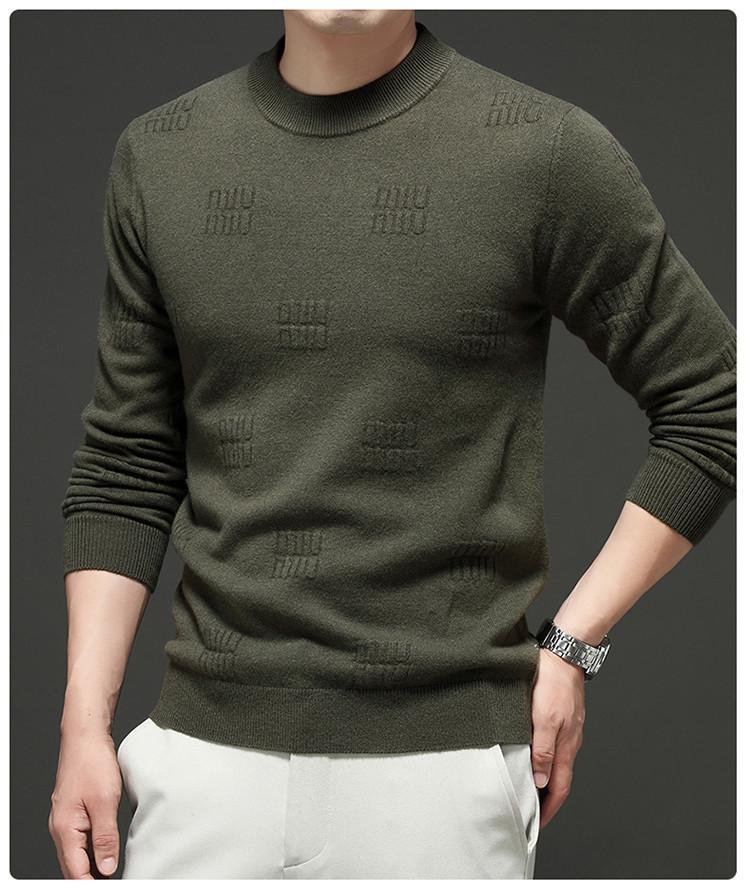 Suéter de Lana de Cuello Redondo Medio Alto para Hombre 2025 Otoño/Invierno 100% Lana Pura Tejido Jersey Capa Base Ropa para Papá