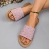 Zapatillas de Punta Redonda Transfronterizas de Verano 2025 Comercio Exterior Europeas y Americanas Planas Caladas Mariposa Pedrería Sandalias de Una Tira para Mujer