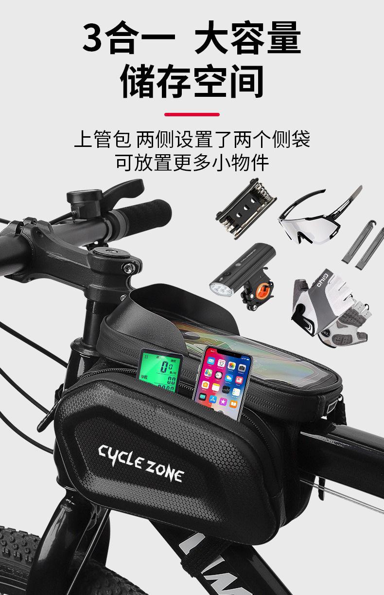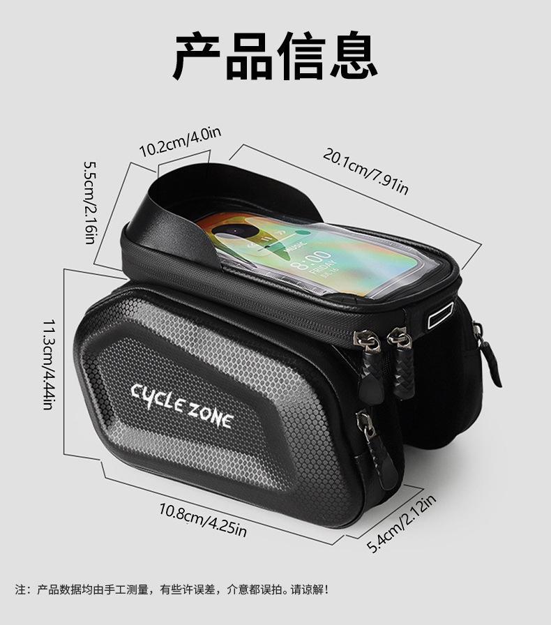 Bolsa para Teléfono de Viga Delantera para Ciclismo, Bolsa para Teléfono con Pantalla Táctil para Bicicleta de Montaña, Bolsa para Tubo Superior, Carcasa Dura de EVA, Impermeable, Alforja para Sillín, Alforja