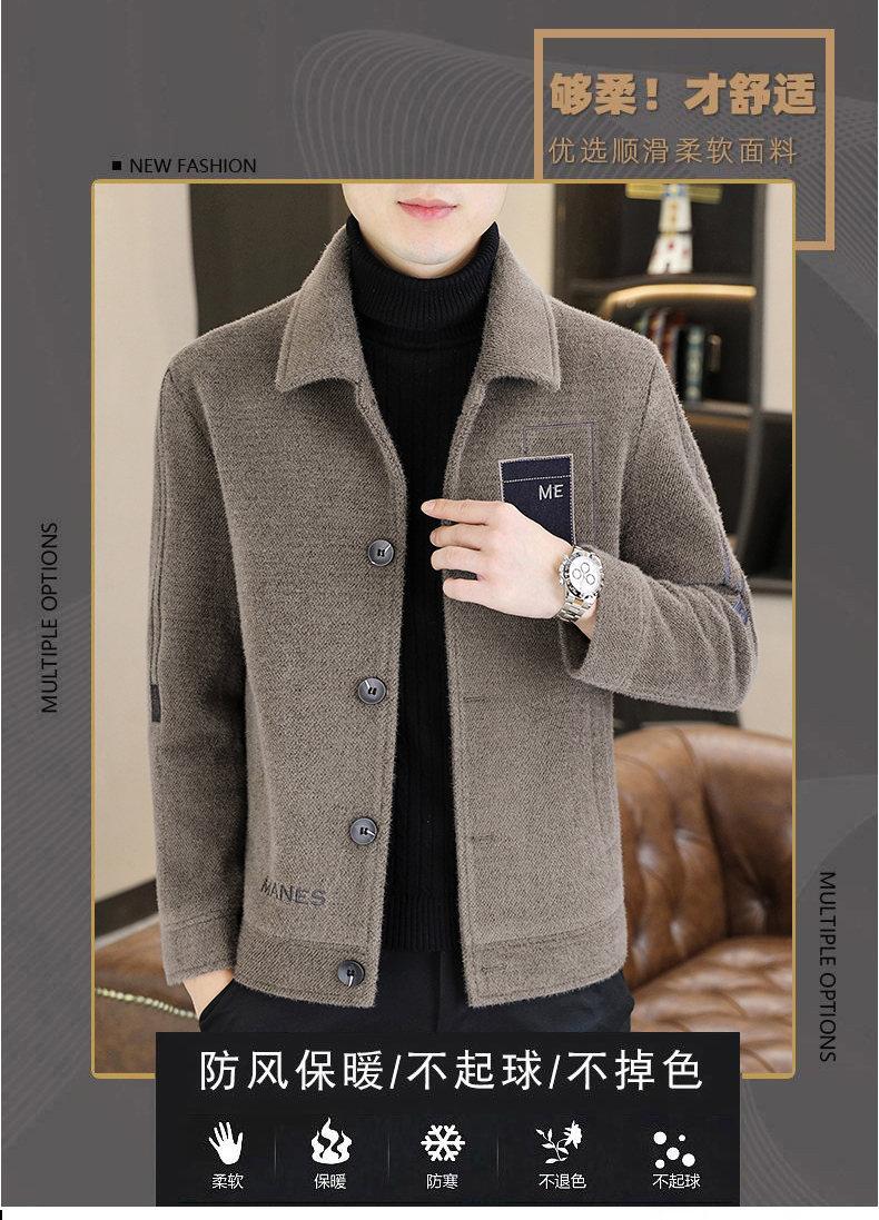 Abrigo de Lana para Hombre 2024 Corto Otoño e Invierno Coreano Casual Abrigo de Lana para Hombre Chaqueta Engrosada