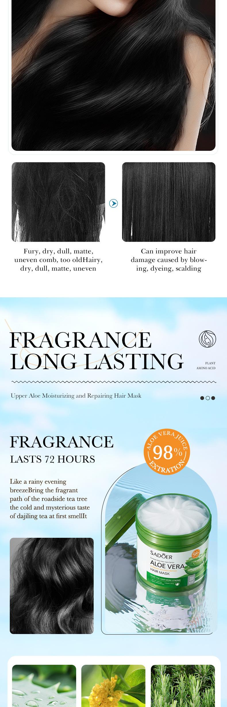 Mascarilla Capilar de Aloe Vera Inglés Completo 500g Sadoer Acondicionador Hidratante Suave Sedoso Comercio Exterior Transfronterizo Venta al por Mayor