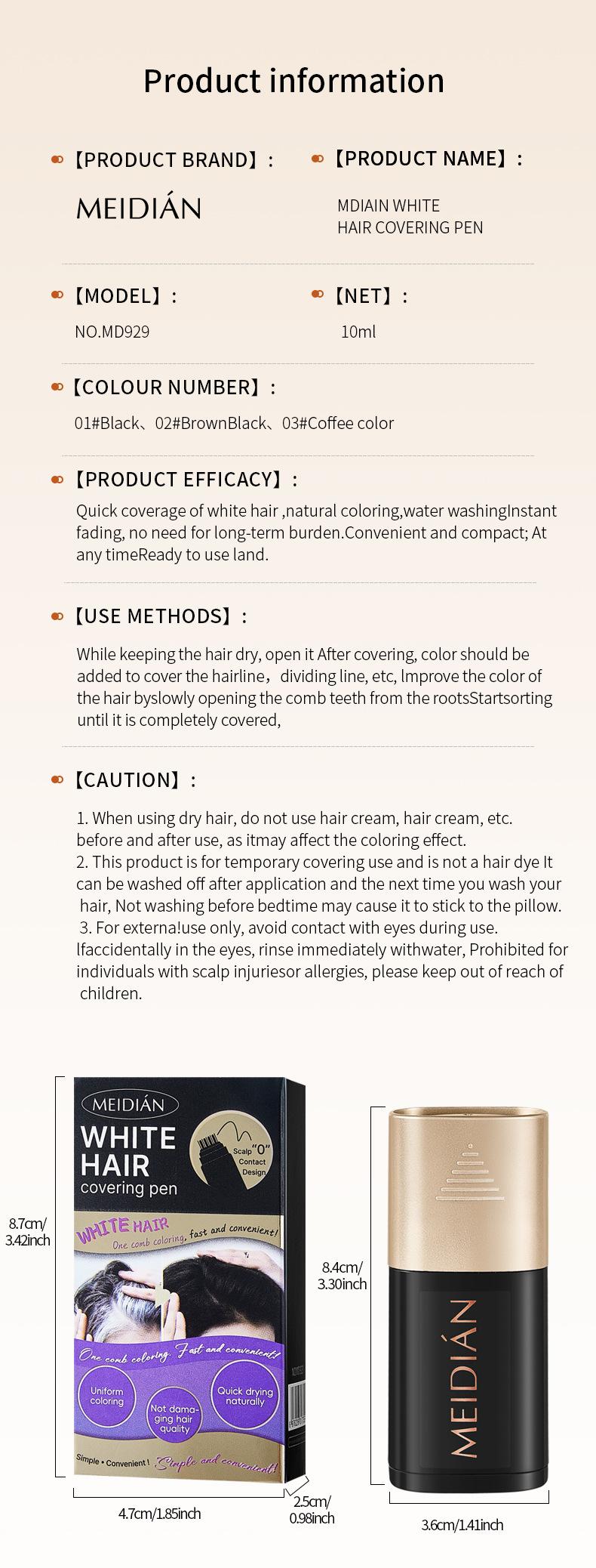 Pluma para colorear el cabello transfronteriza, tinte para el cabello vegetal de un solo uso que no se desvanece, artefacto de cobertura portátil negro, barra para peinar el cabello