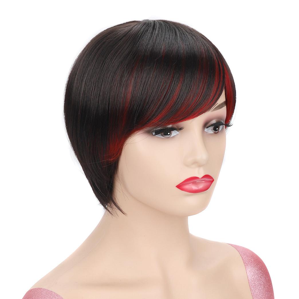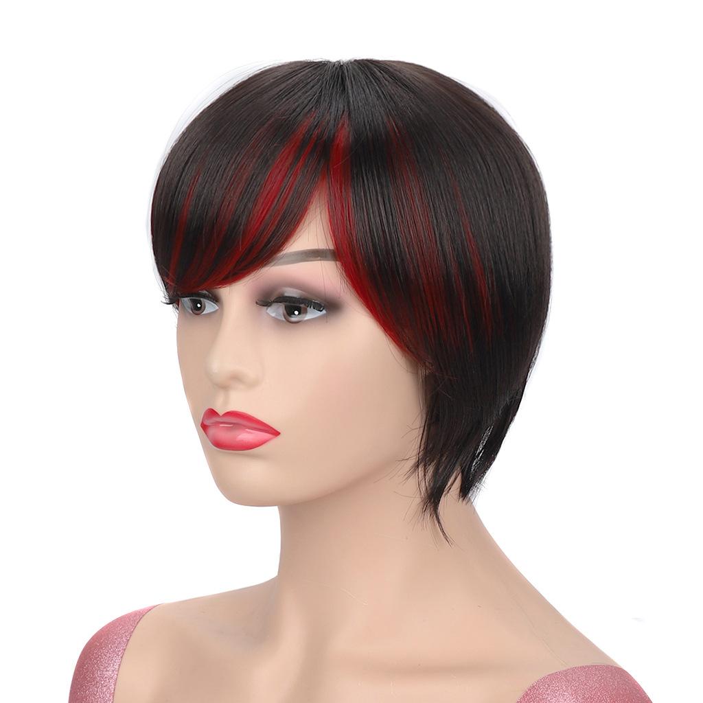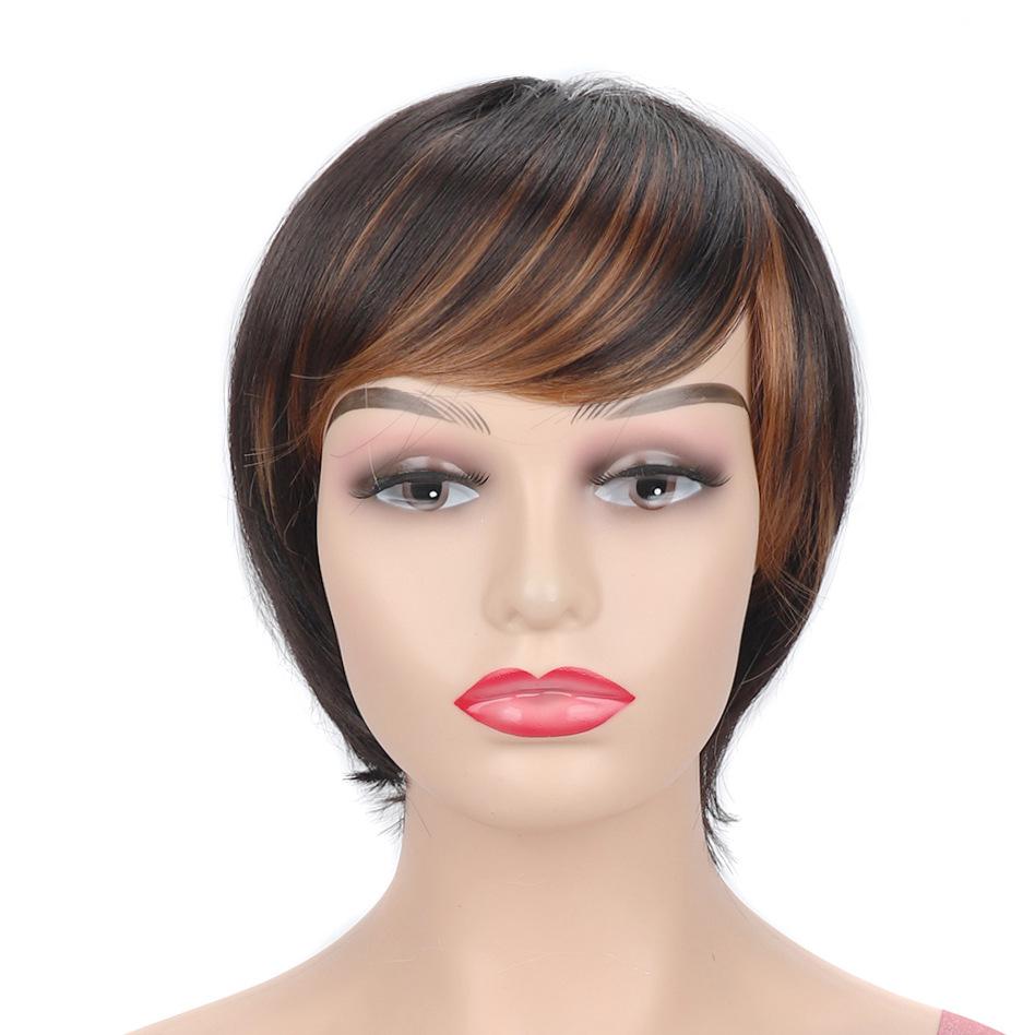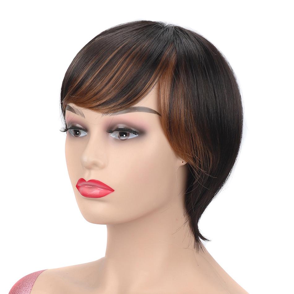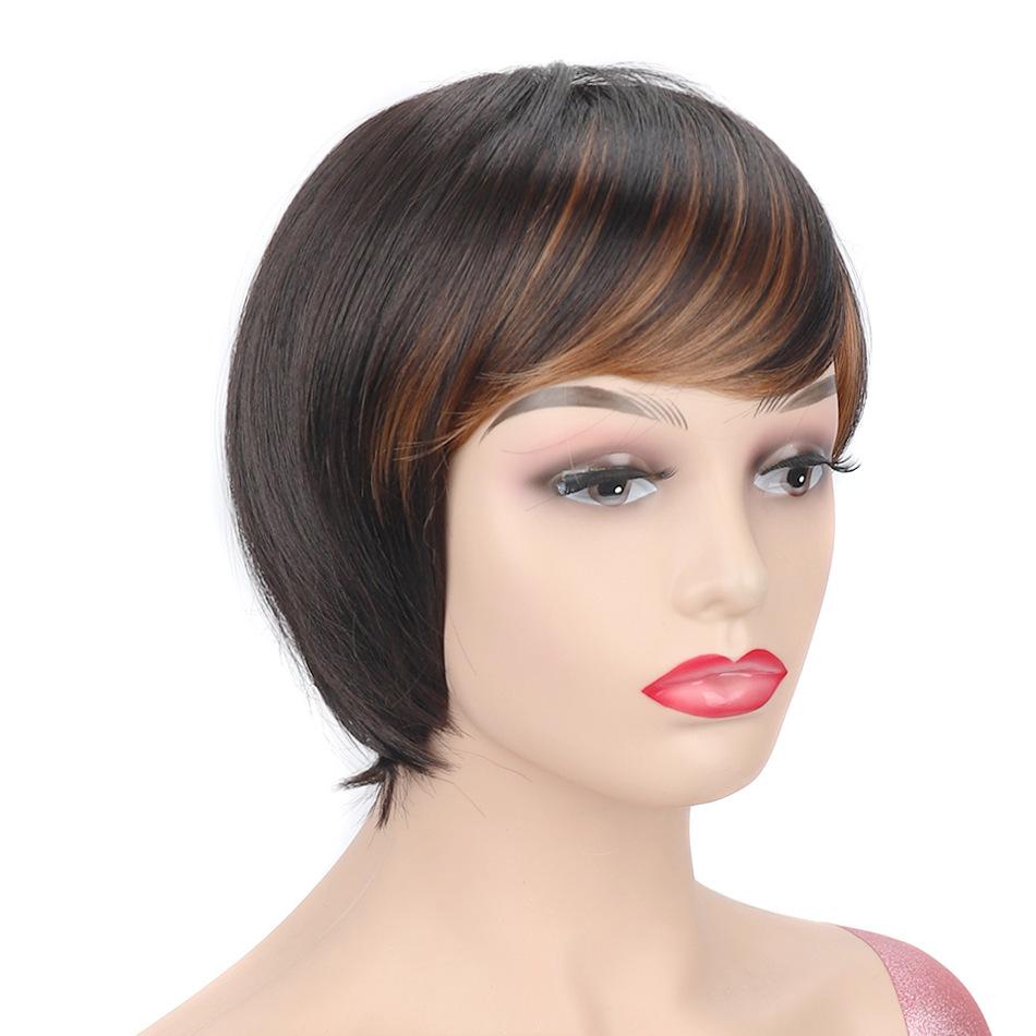 Nombre del Producto: Peluca Sintética de Fibra Negra Decolorada de Color para Comercio Exterior Transfronterizo Peluca Corta Rizada con Flequillo de Color Peluca Corta con Gorro para Mujeres Africanas