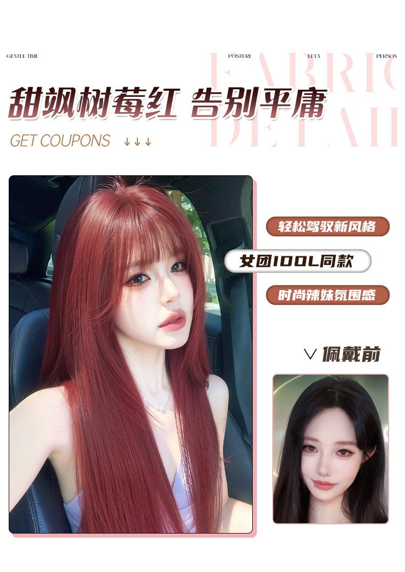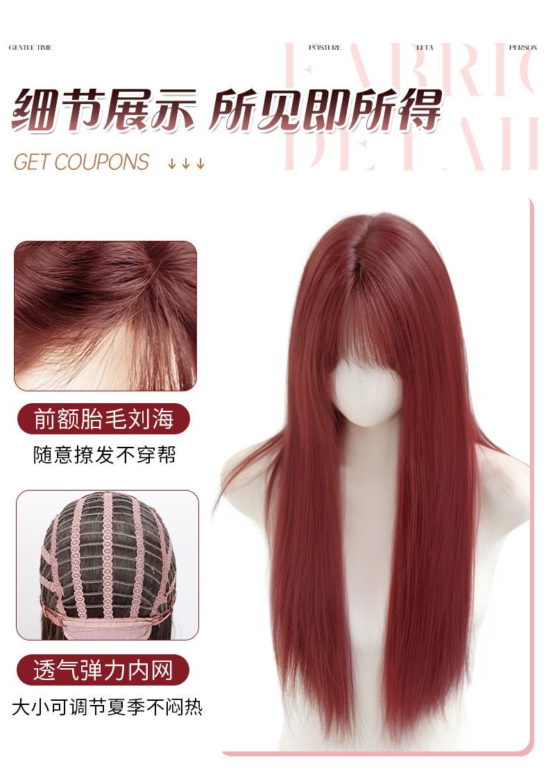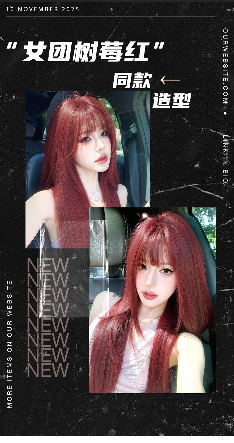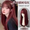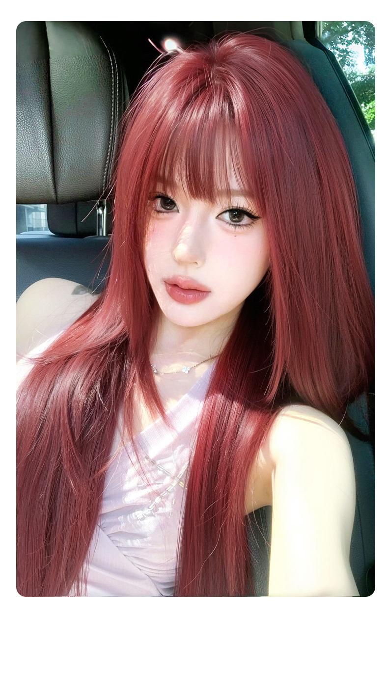 Peluca Cubierta Completa para la Cabeza Mujer Rojo Frambuesa Flequillo de Aire Cabello Largo Lacio Blanqueador Dulce Cool Chica Picante Cabello de Simulación Diaria Cubierta Falsa para la Cabeza