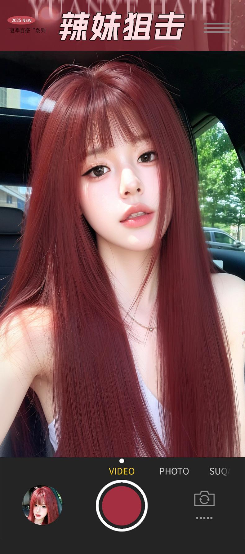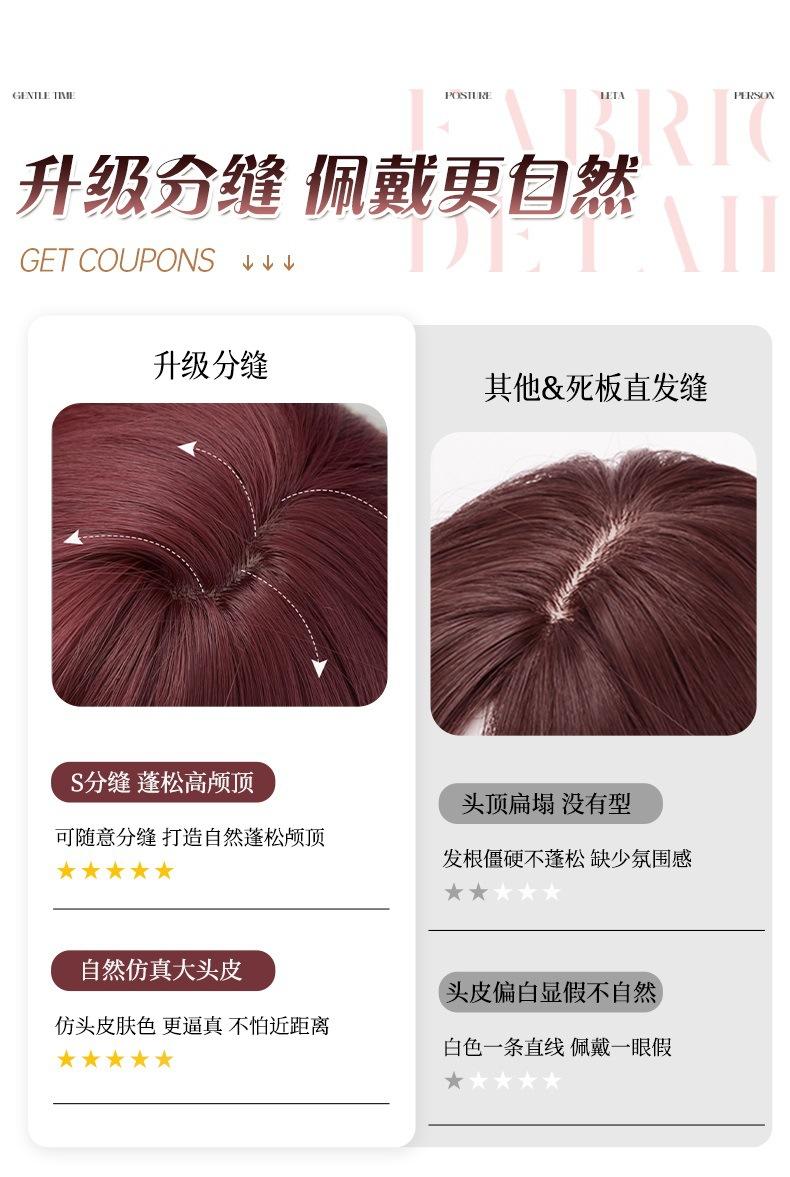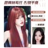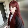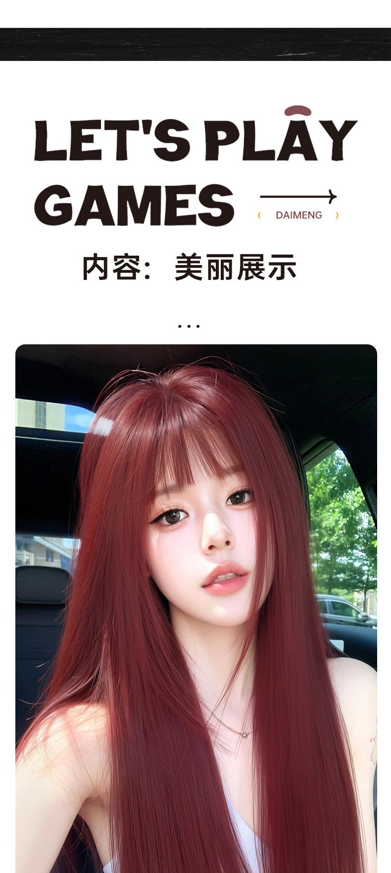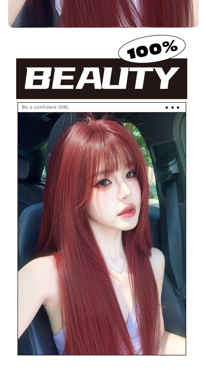 Peluca Cubierta Completa para la Cabeza Mujer Rojo Frambuesa Flequillo de Aire Cabello Largo Lacio Blanqueador Dulce Cool Chica Picante Cabello de Simulación Diaria Cubierta Falsa para la Cabeza
