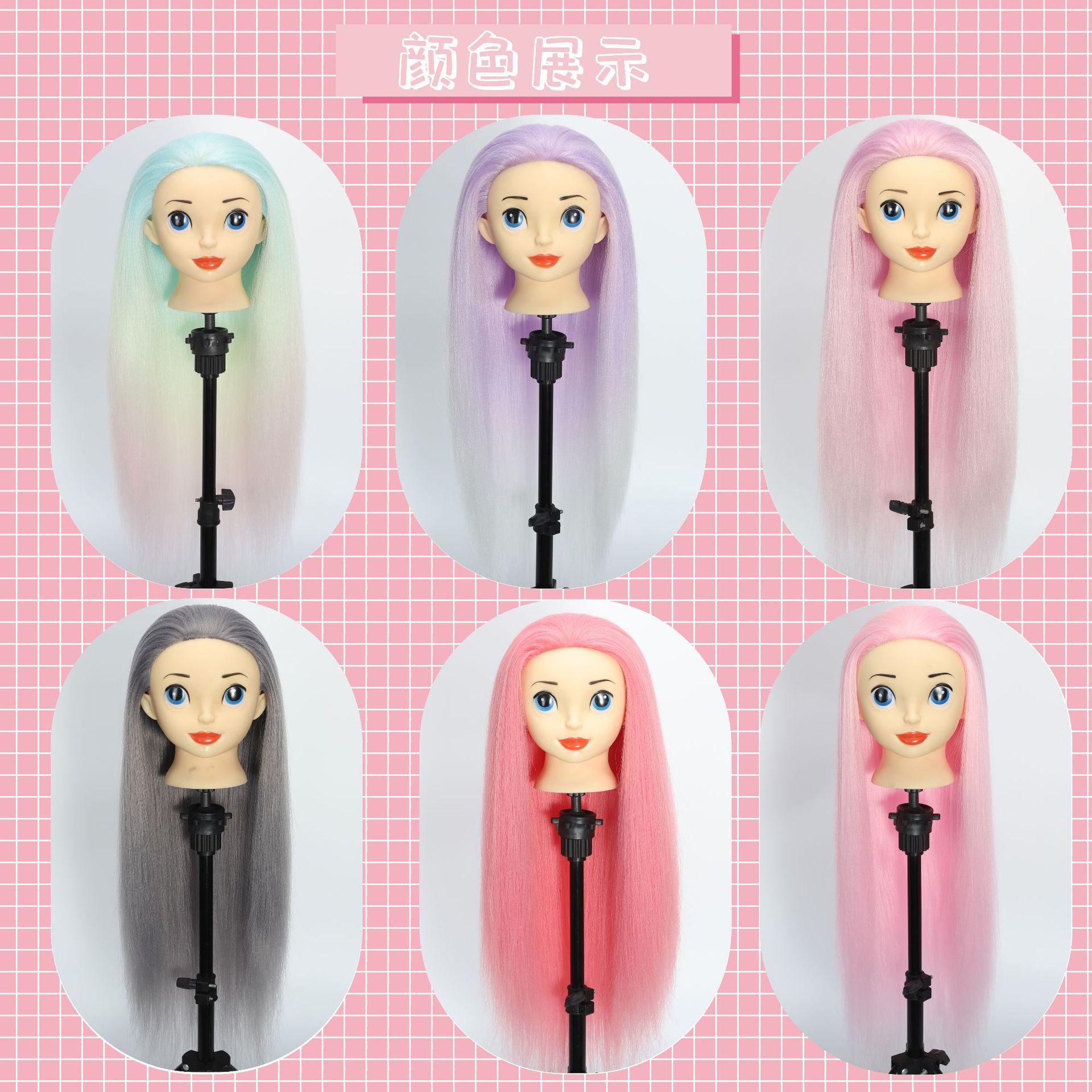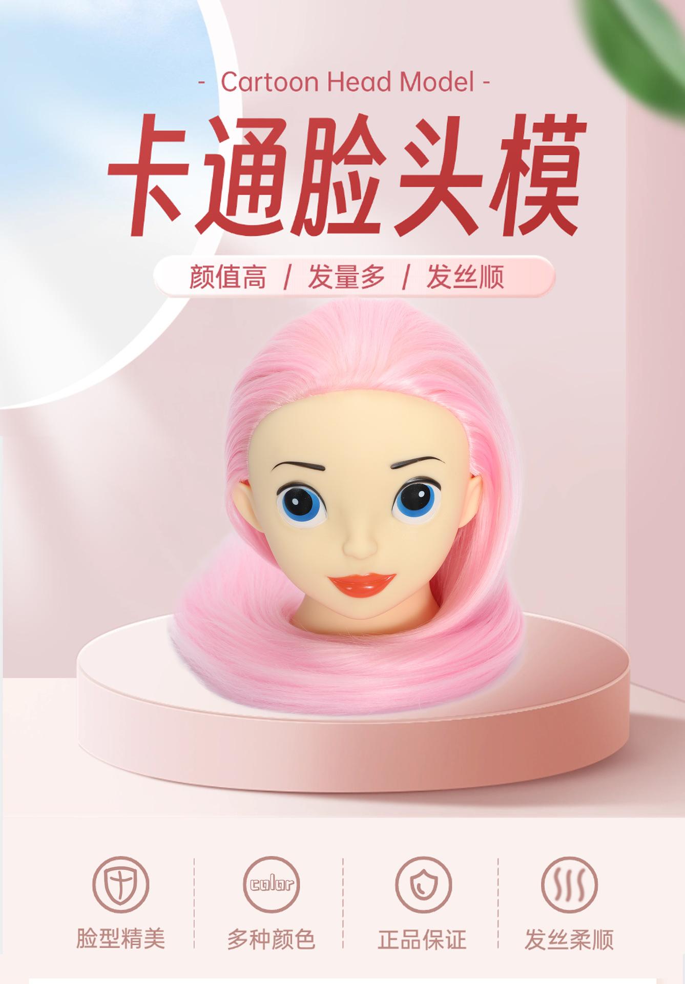 Cabeza de maniquí con forma de cara de muñeca de dibujos animados para niños para practicar peinados, trenzados y maquillaje, cabeza de maniquí de peluquería