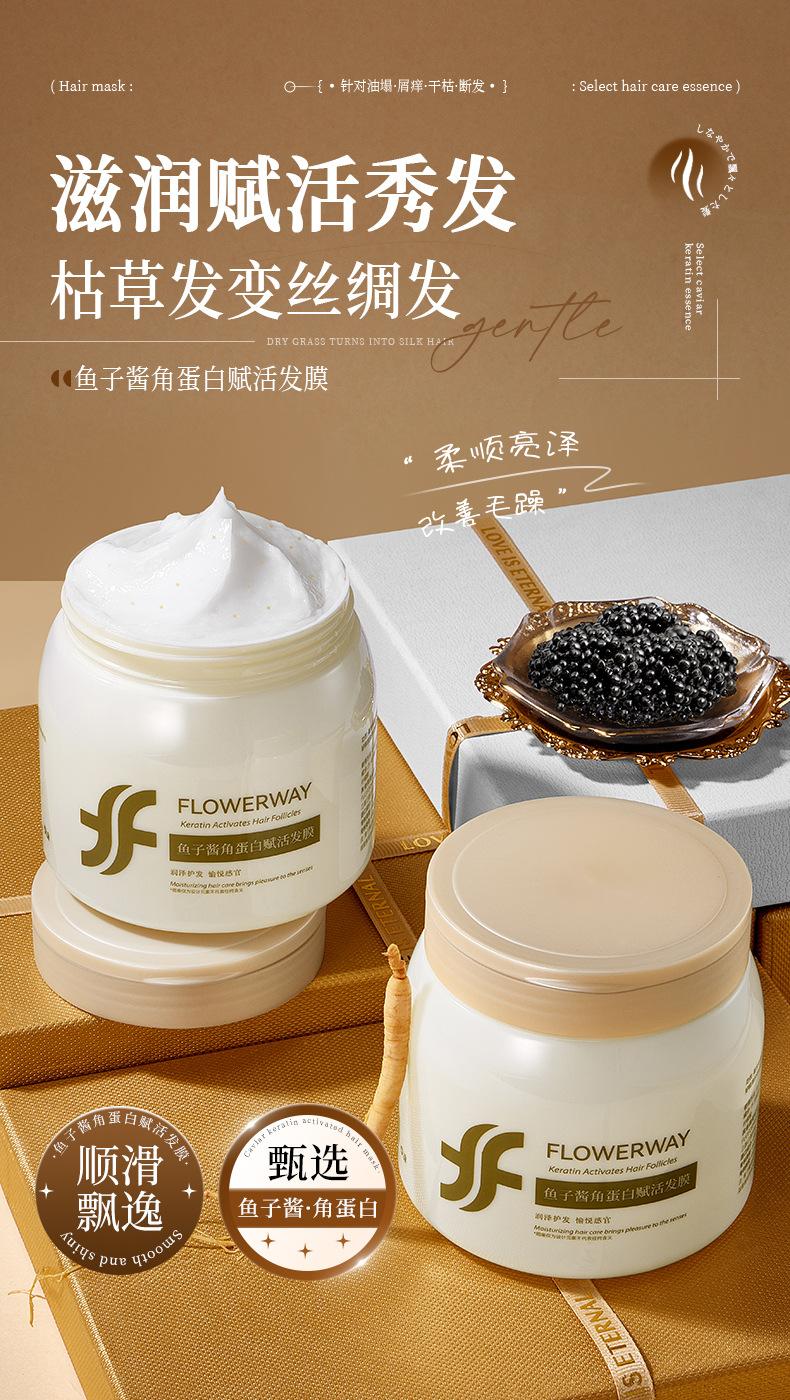 Mascarilla Capilar Revitalizante Flowerway Caviar Keratina Mejora el Frizz Seco y Suaviza Cuidado Capilar de Salón
