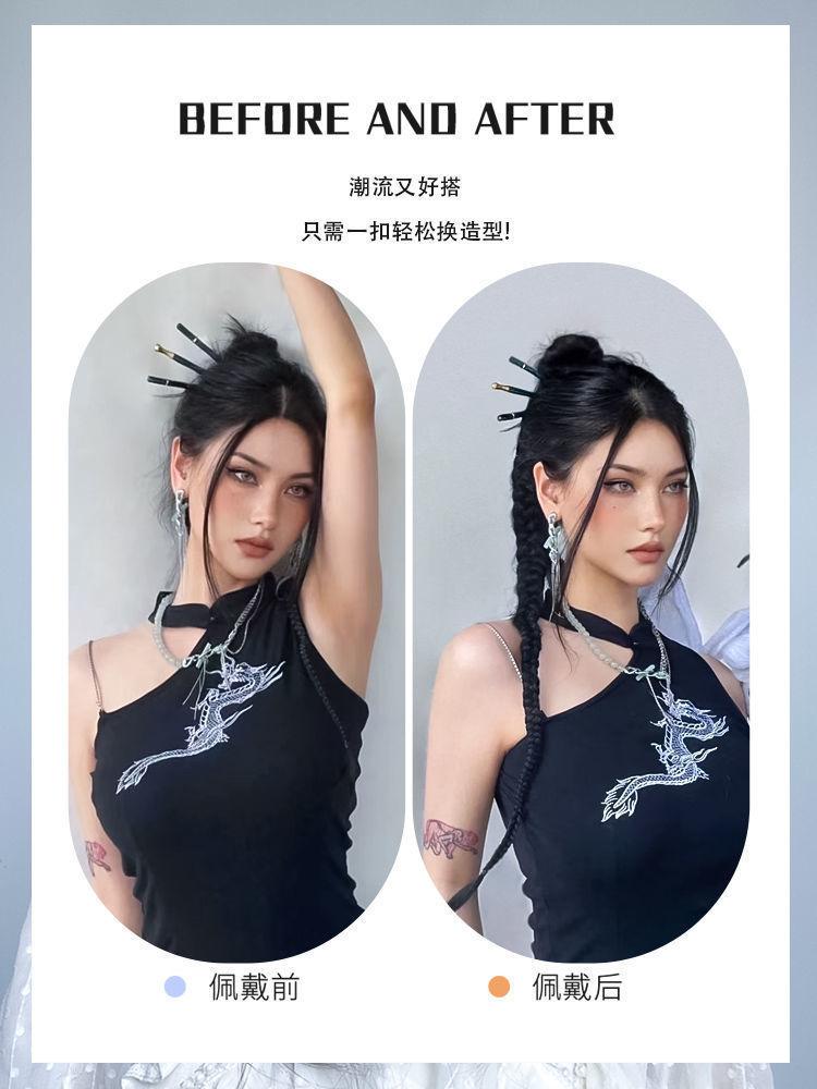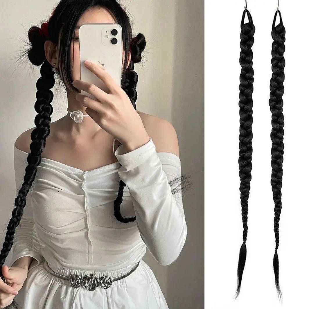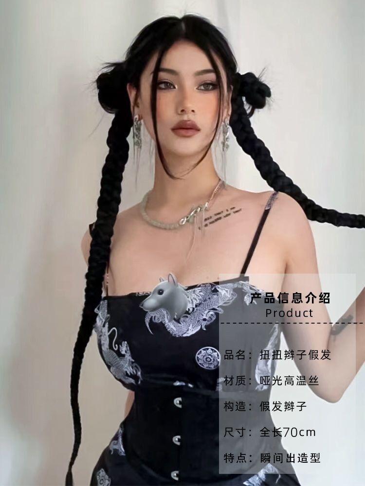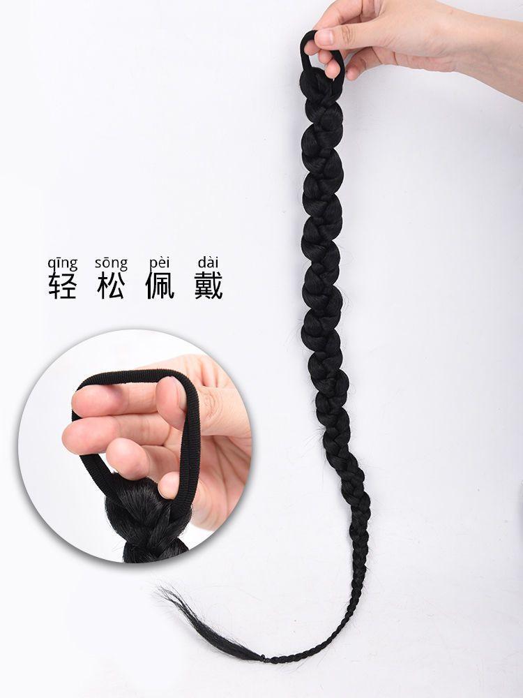 Temu Peluca de Cola de Caballo de Venta Caliente Femenina Cabello Largo Sexy Trenza Torcida Artificial Doble Cola de Caballo Exportación Europea y Americana Trenza Sucia Venta al por Mayor