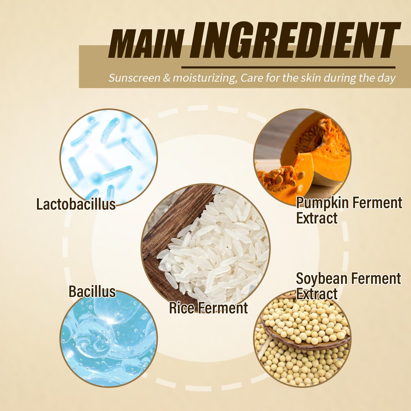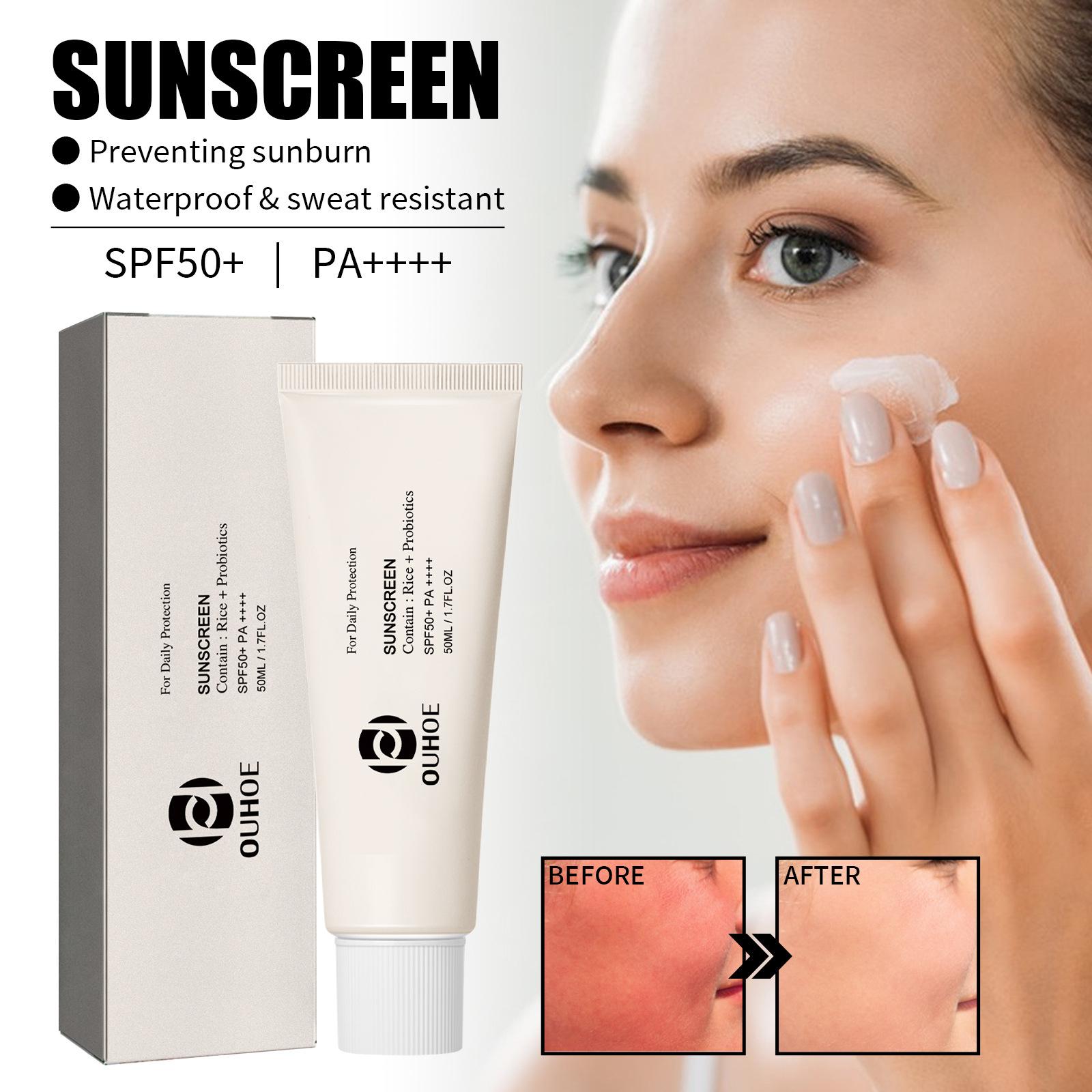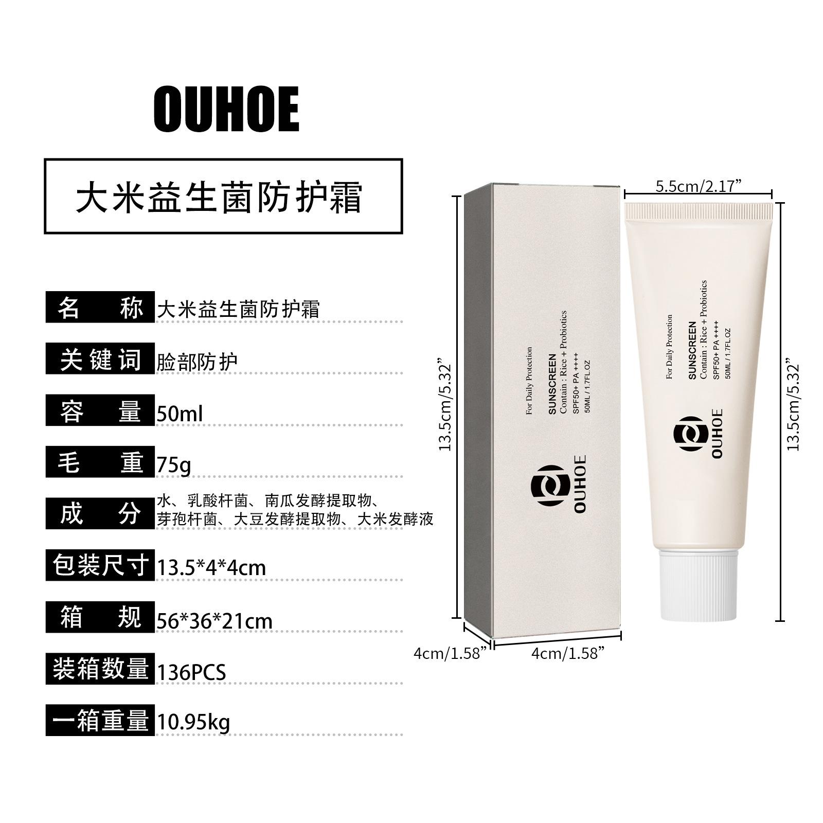 Ouhoe Crema Protectora Probiótica de Arroz Anti-UV Refrescante No Grasosa Hidratante Bloqueadora de Humedad Crema Protectora Facial