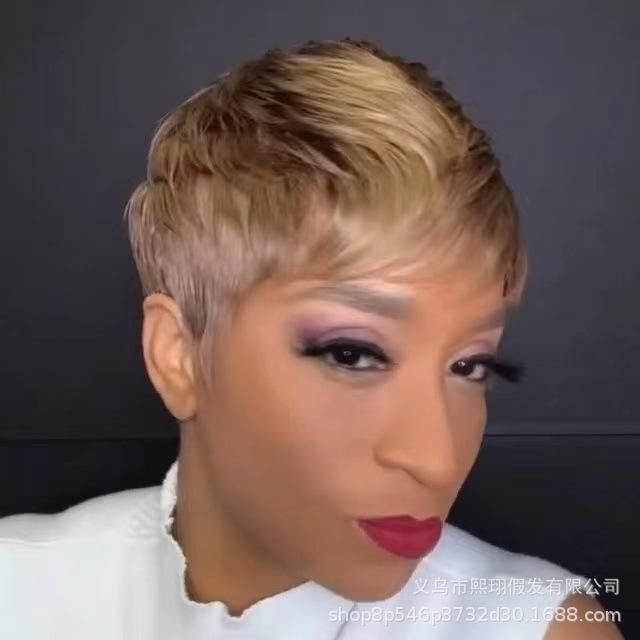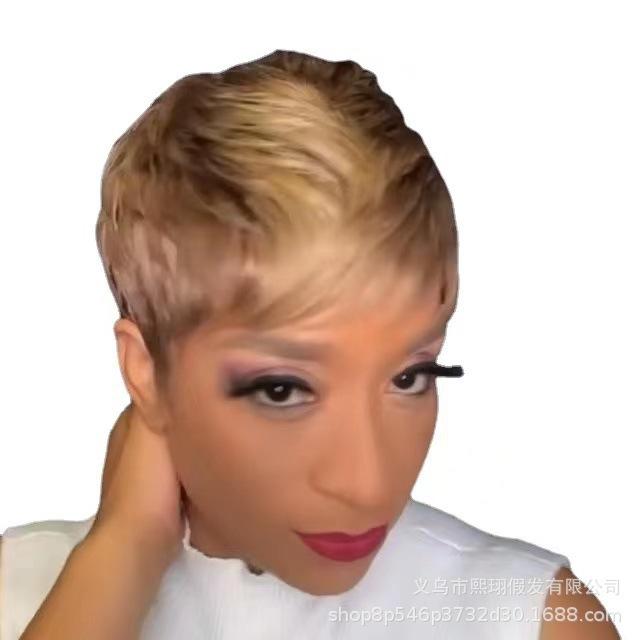 Peluca nueva europea y americana transfronteriza para mujer, cobertura completa de cabeza, cabello corto lacio, moda con mechas, peluca de fibra química de Amazon, cubierta para la cabeza al por mayor