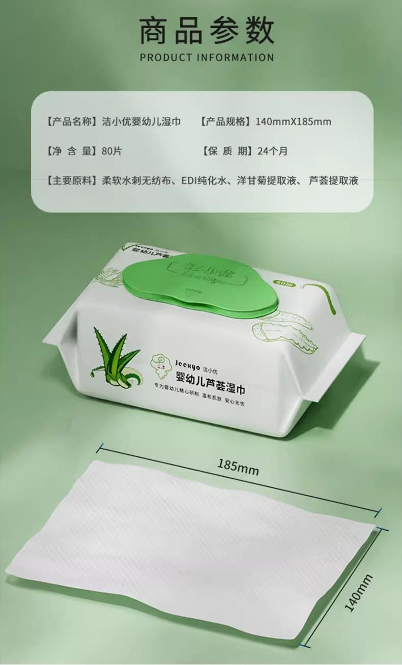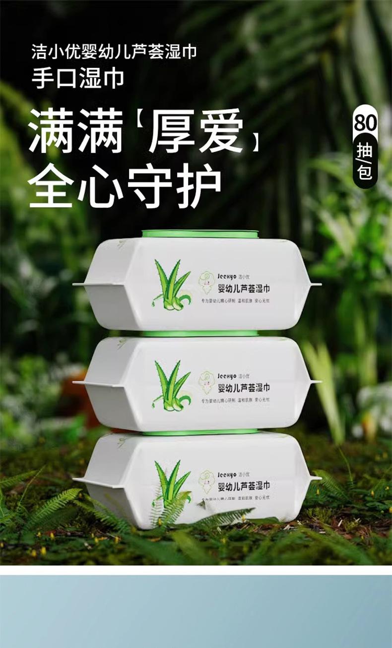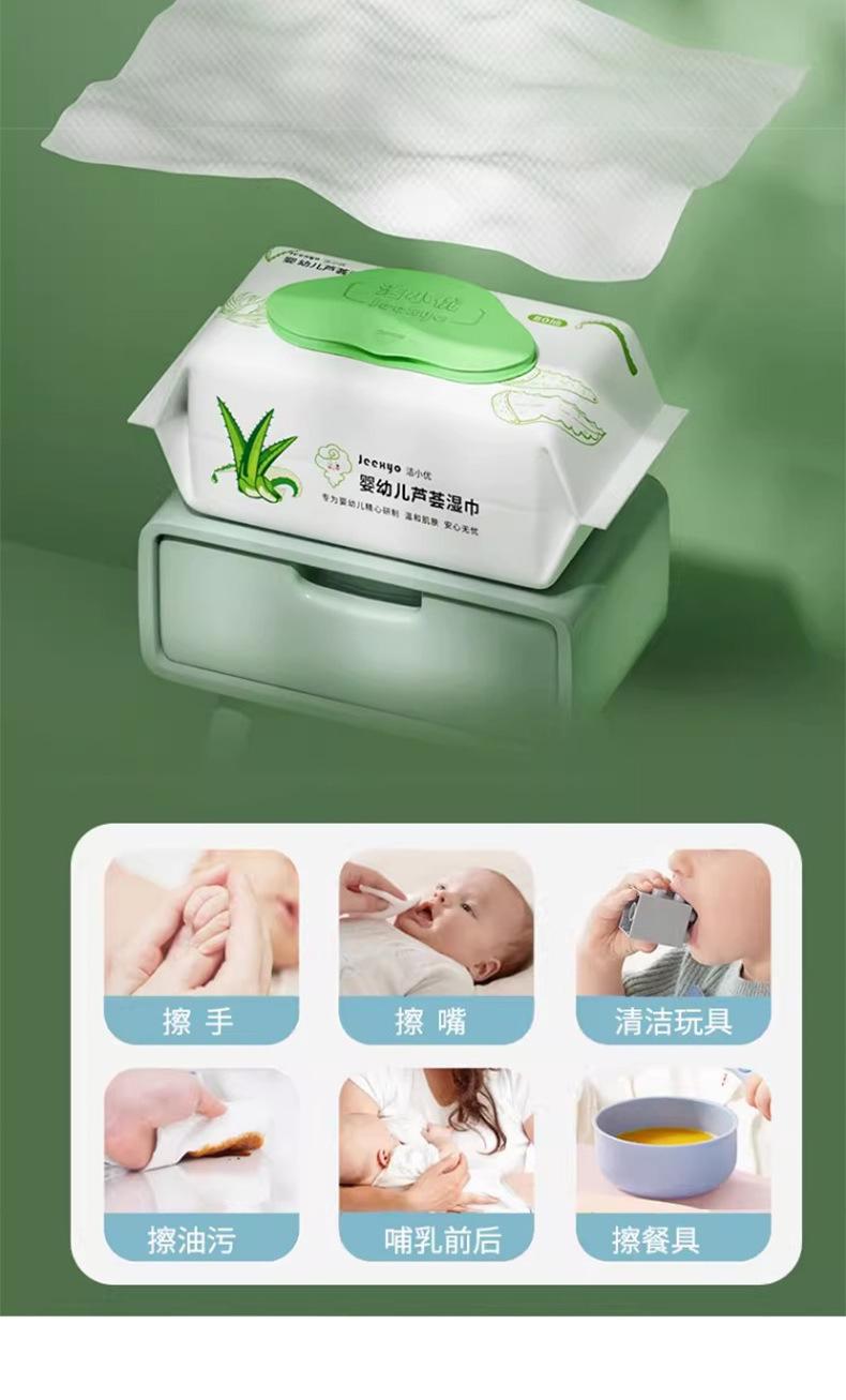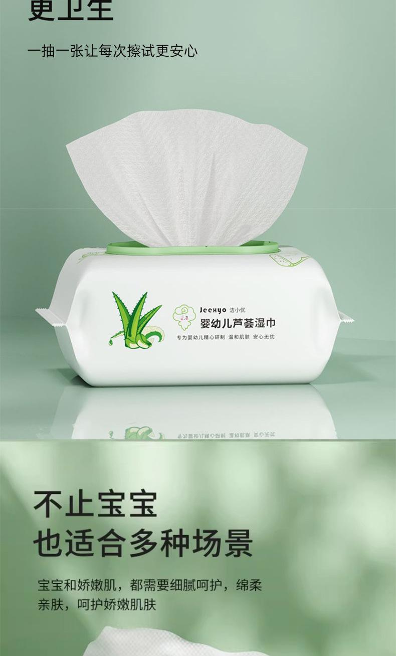 Toallitas Húmedas para Bebé Jie Xiaoyou Aloe Vera No Irritantes Espesadas Suaves con Tapa Limpieza Amigable con la Piel Aumentada Toallitas Húmedas para Mano y Boca