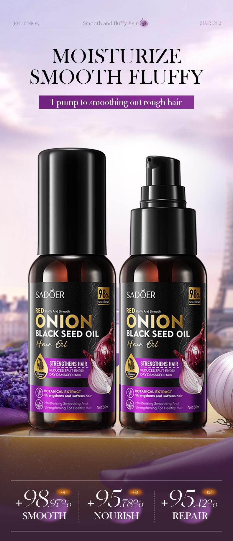 Aceite de semilla negra de cebolla SADOER, aceite esencial para el cuidado del cabello suave, aceite esencial hidratante para el cuidado del cabello, comercio exterior transfronterizo al por mayor