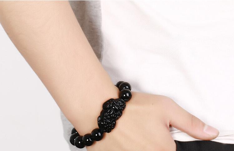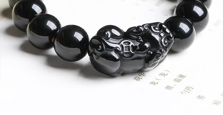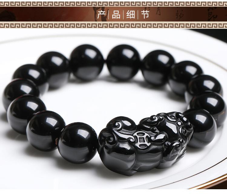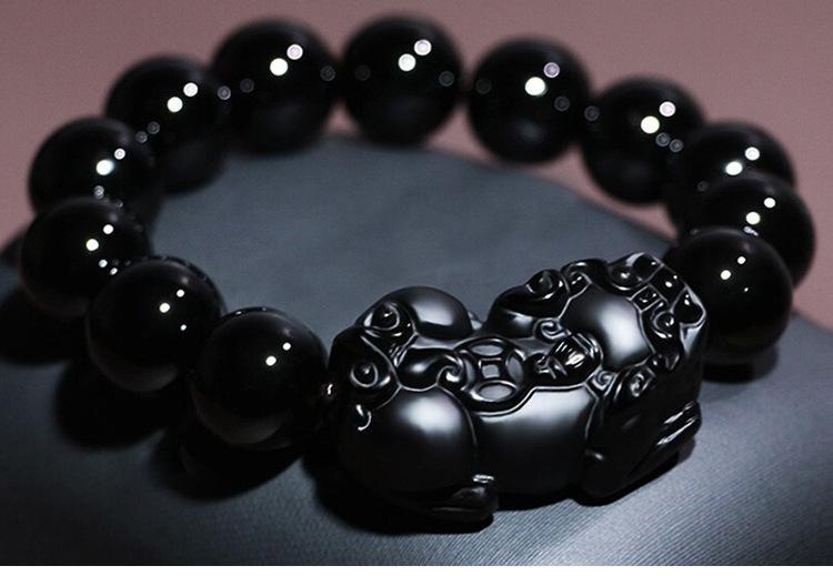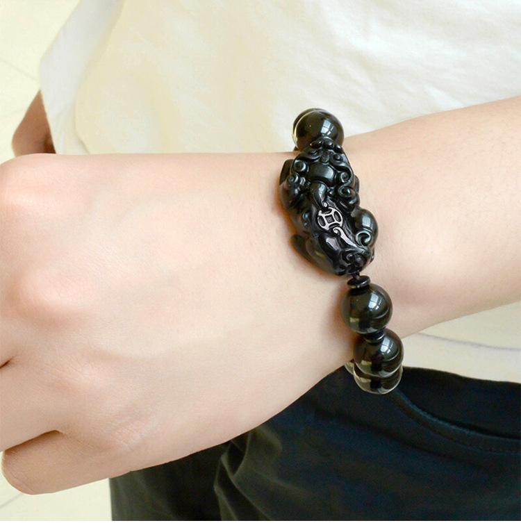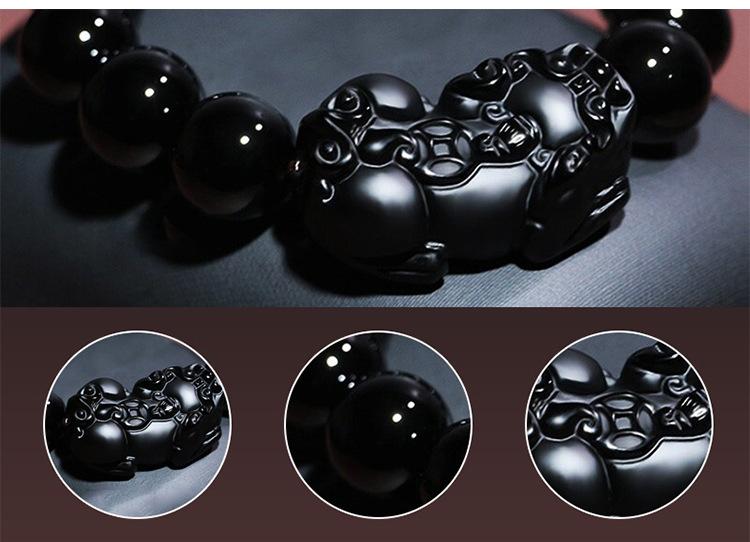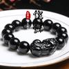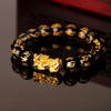 Pulsera de Cuentas de Obsidiana Dorada Negra Natural Mexicana Pixiu Buda Estilo Oro Negro Pulsera Negra Pura Venta al por Mayor