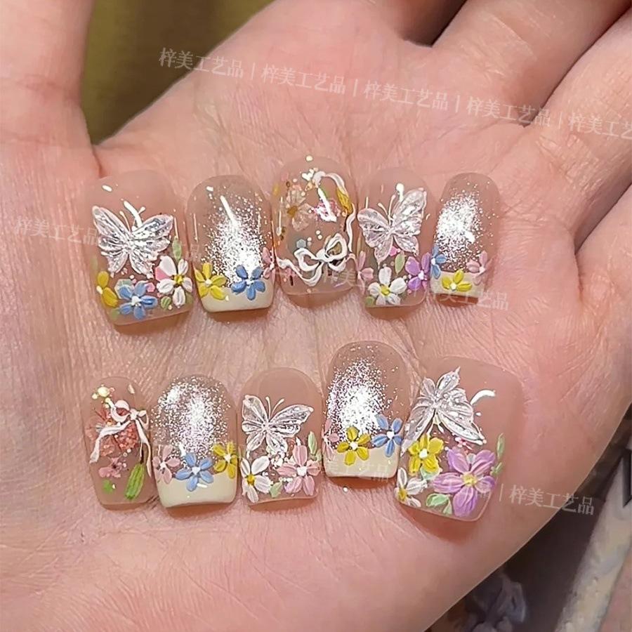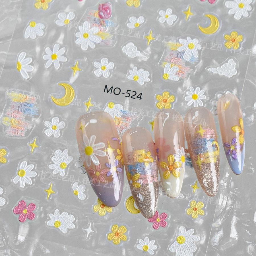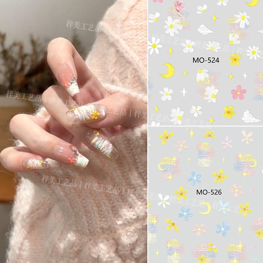 Arte de Uñas Relieve Pintura al Óleo Flores Pequeñas Pegatinas Frescas Pequeñas Graffiti Pintado a Mano Nuevas Calcomanías Coloridas de Flores para Uñas Decoraciones