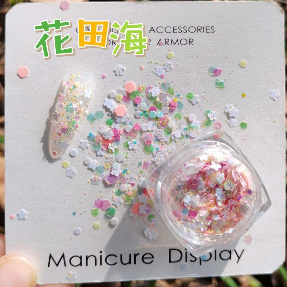 A box of 6-frame love five-pointed star sequins, A box of summer heart-warming sequins, A box of vintage blue ...