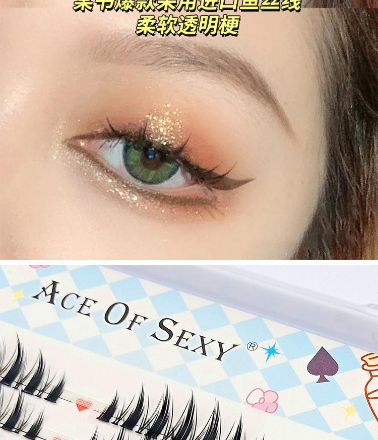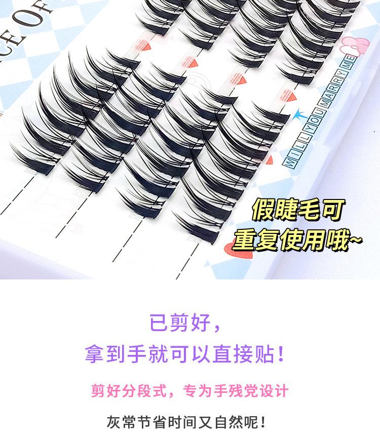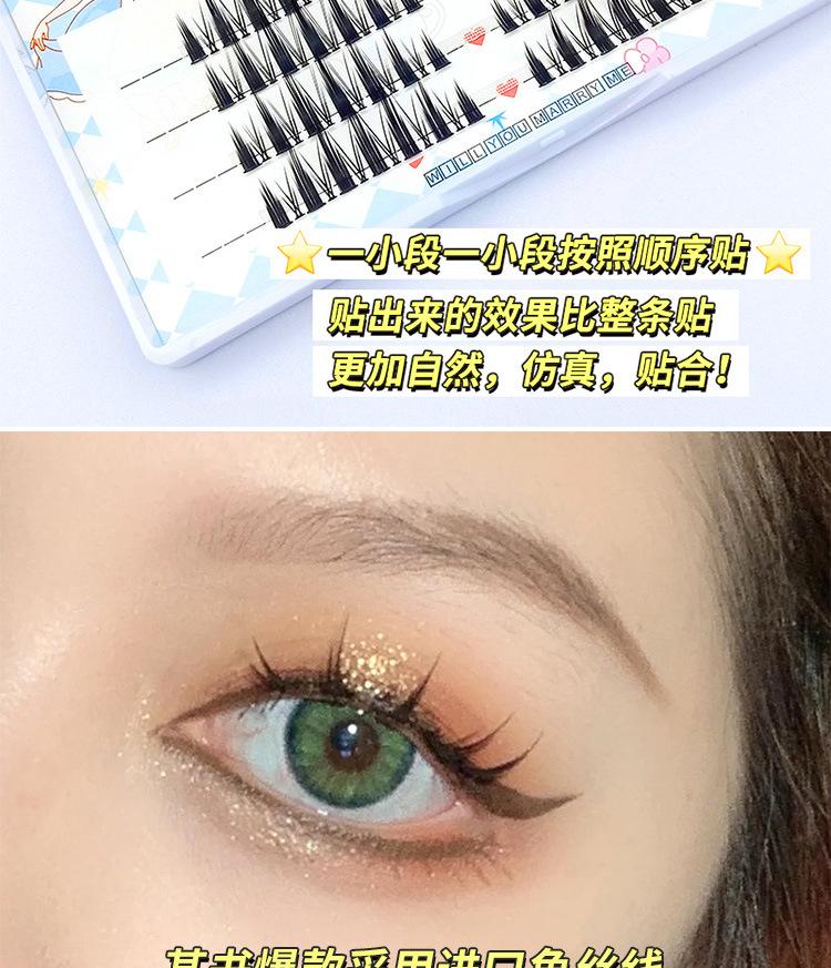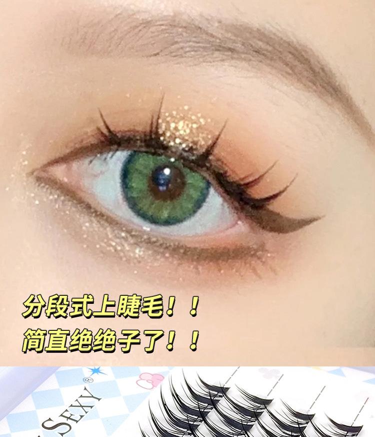 Cuatro filas de pestañas postizas de dibujos animados europeos y americanos ligeras, pestañas postizas de corte segmentado naturalmente gruesas, pestañas simples fáciles de usar