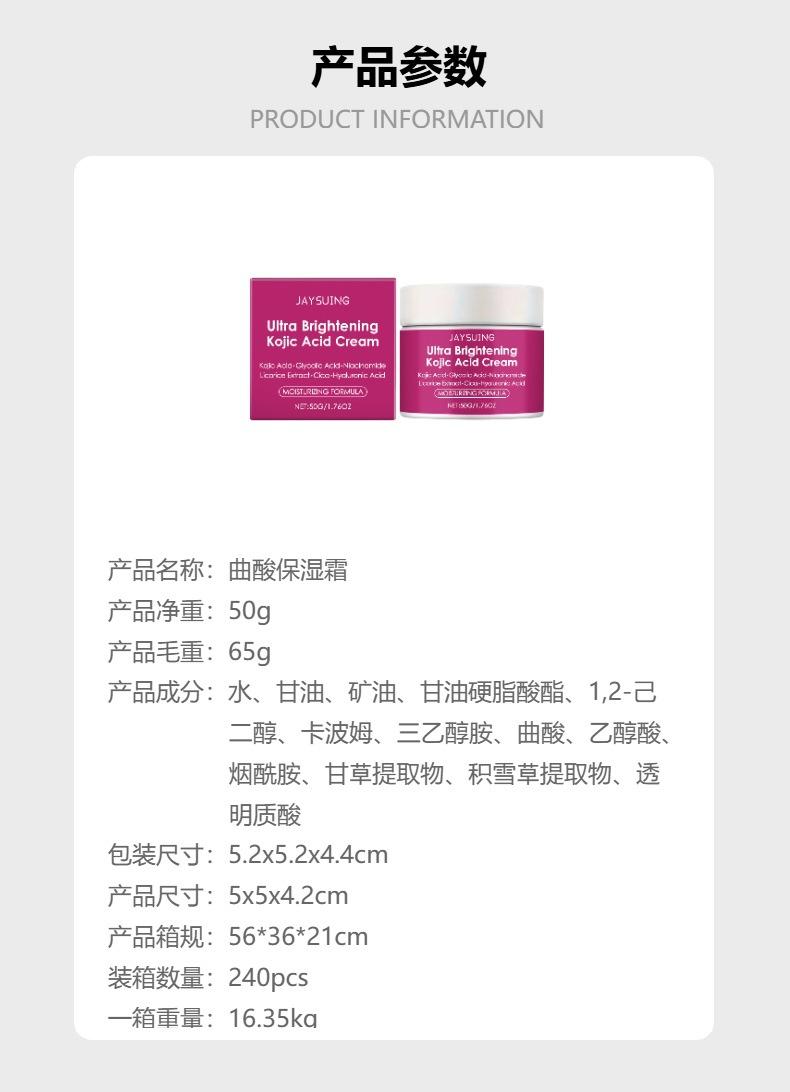 Crema Hidratante de Ácido Kójico Jaysuing Cuida la Delicada Piel Facial, Hidrata e Ilumina, Retiene la Humedad y Nutre la Crema Facial