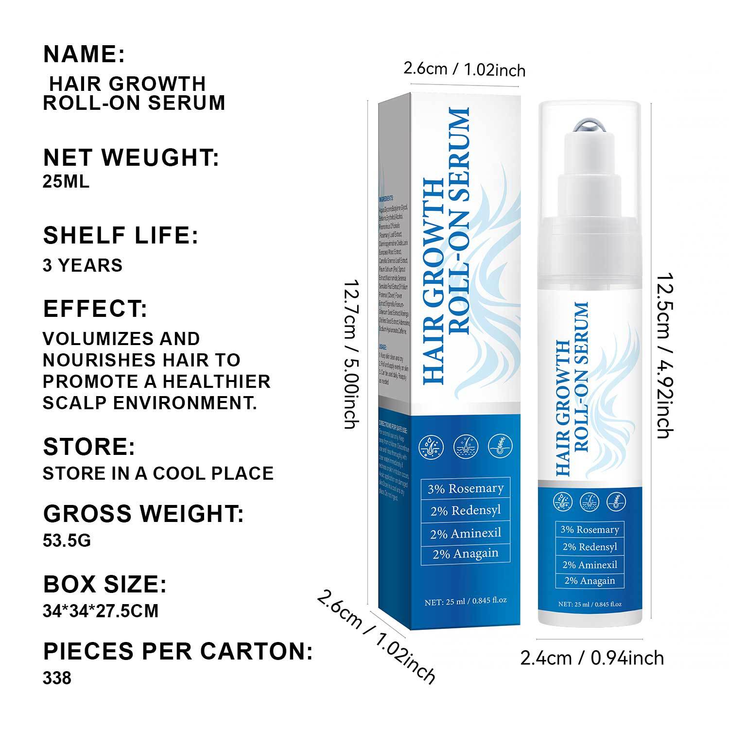 Esencia Capilar Transfronteriza 25g Serum Roll-On para el Crecimiento del Cabello Empaque Neutro