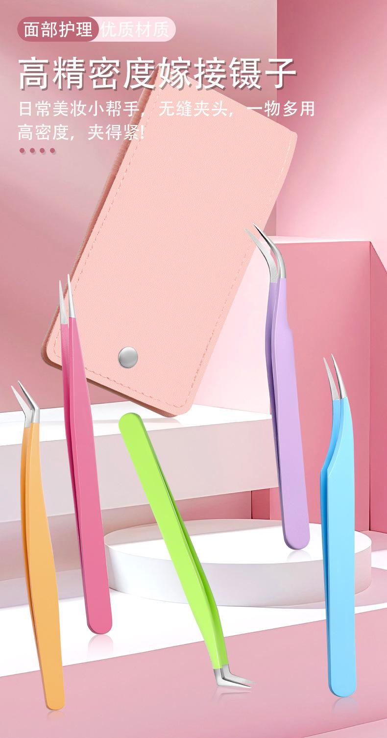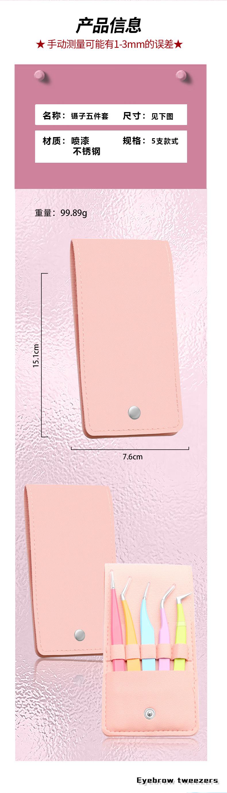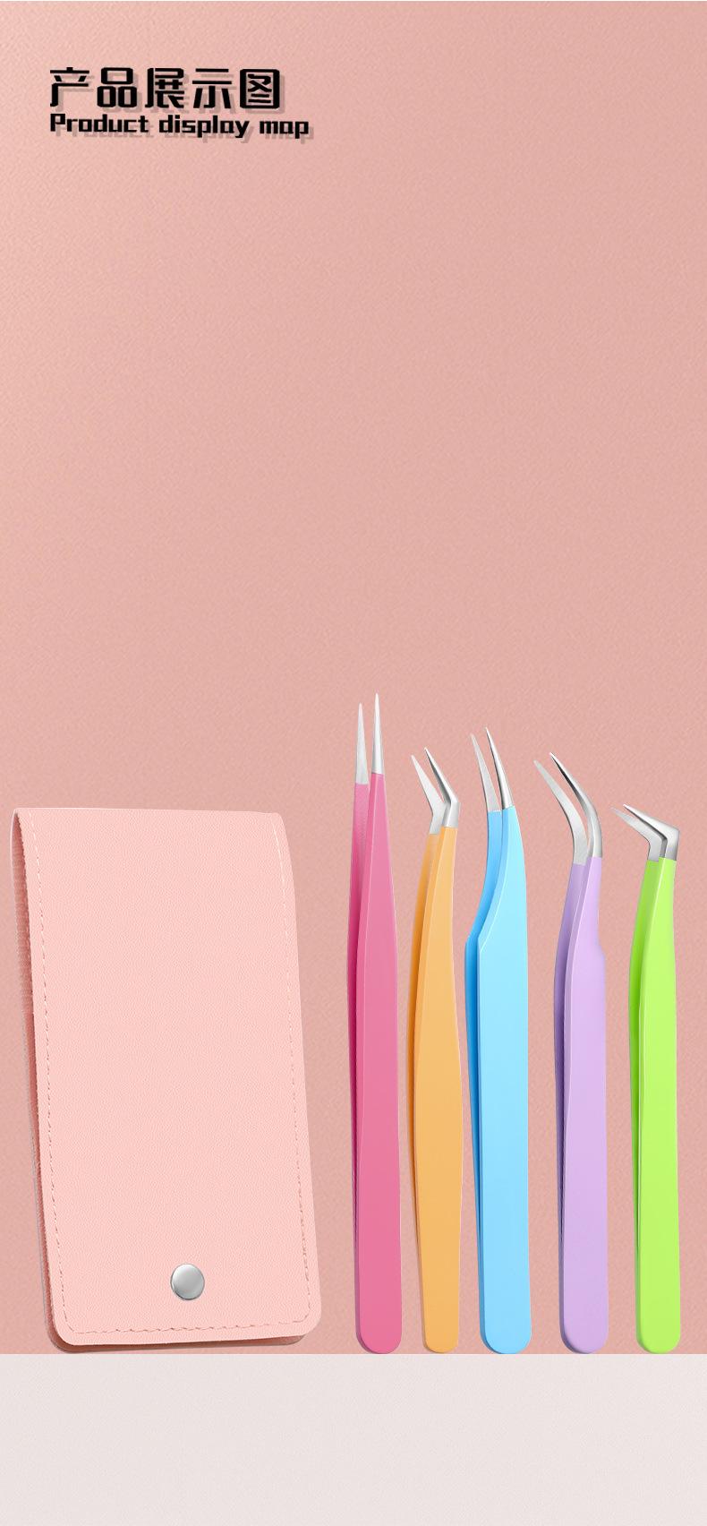Colorful tweezers five-piece set, Purple tweezers, Orange tweezers, Pink tweezers, Green tweezers, Blue tweezers