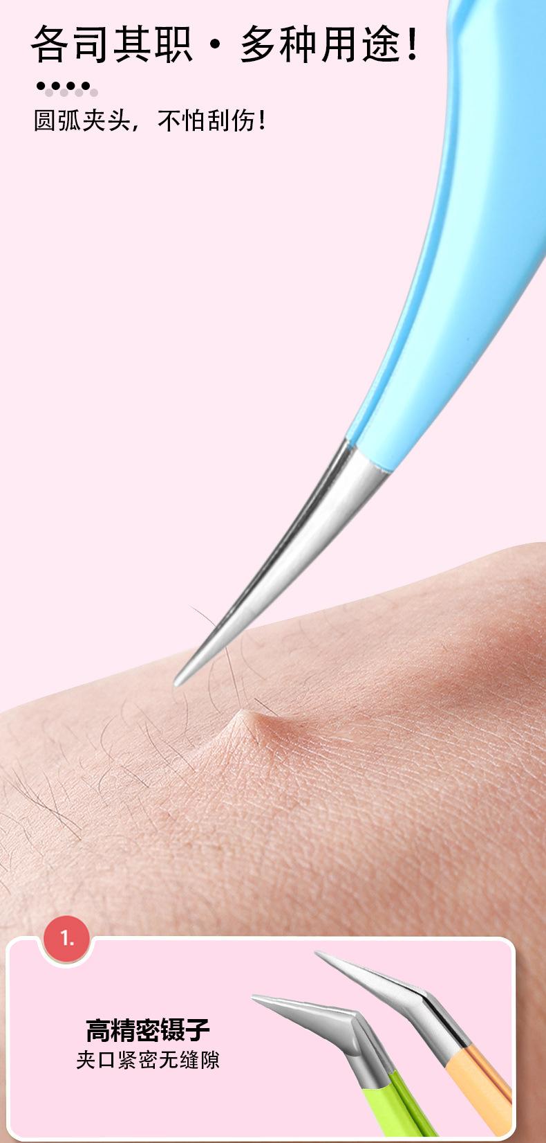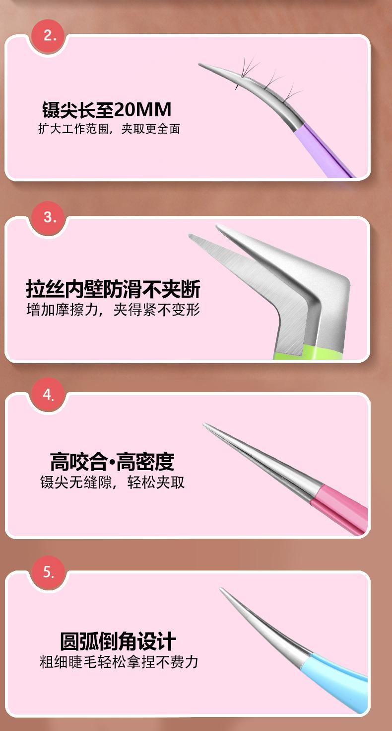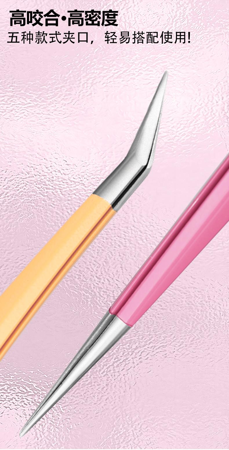 Colorful tweezers five-piece set, Purple tweezers, Orange tweezers, Pink tweezers, Green tweezers, Blue tweezers