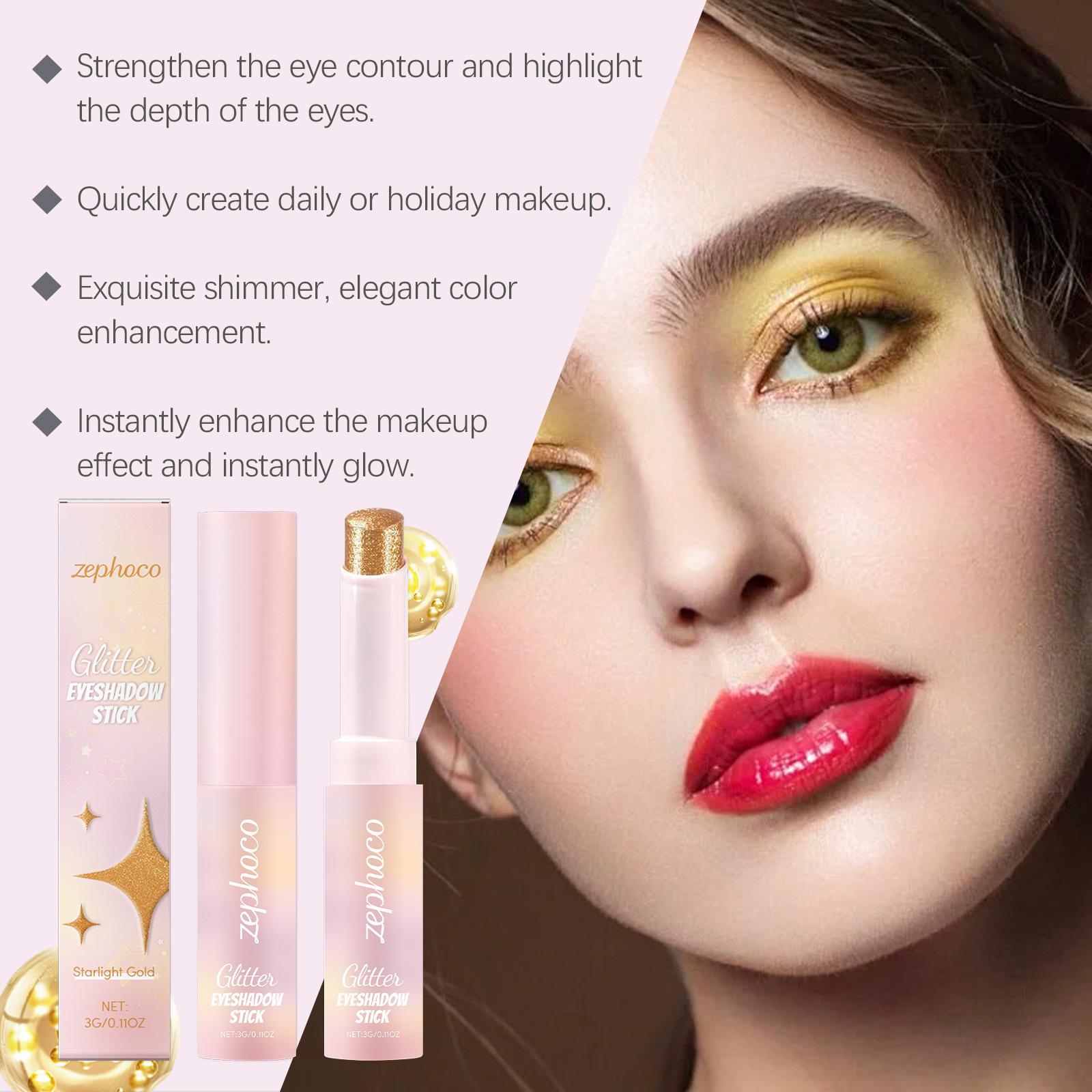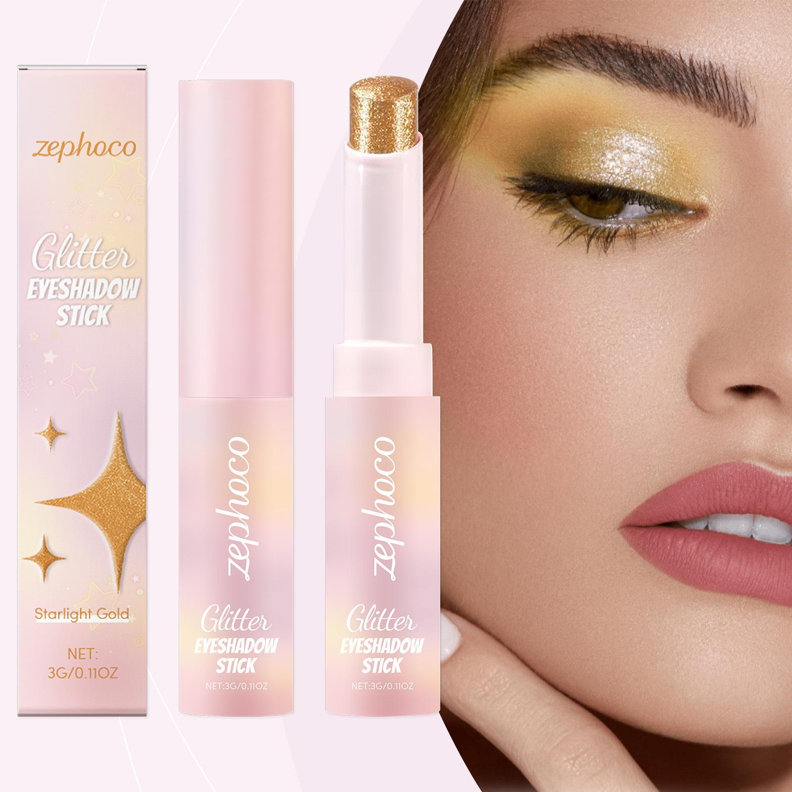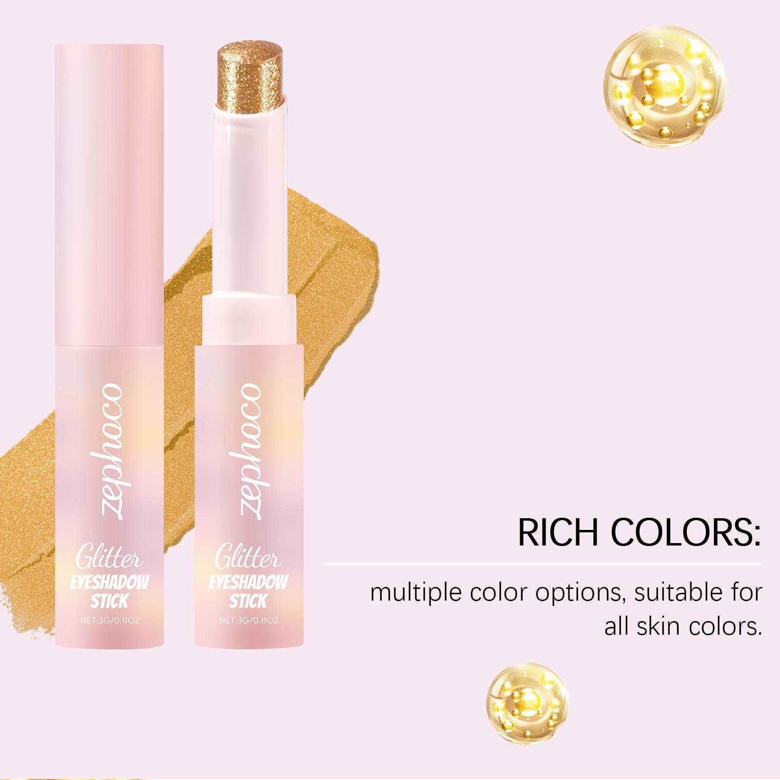 Zephoco Barra de Sombra de Ojos Starlight Gold Multicolor Cristal Lentejuela Crema Color de Larga Duración Fácil de Aplicar Maquillaje Barra de Sombra de Ojos
