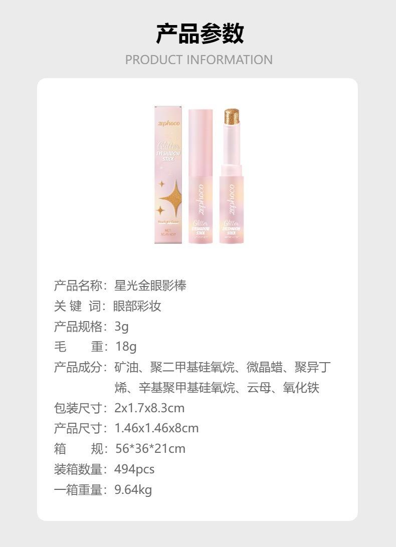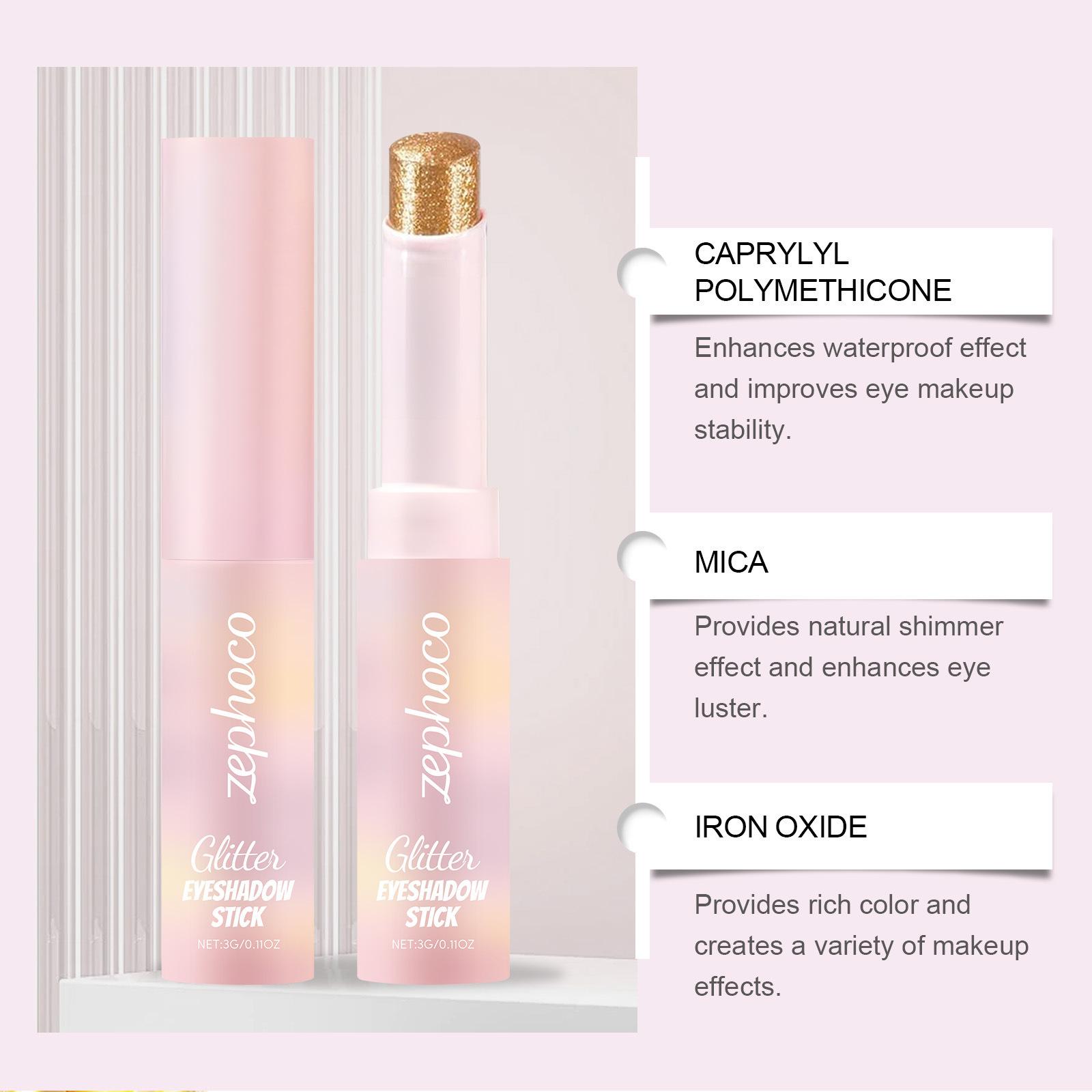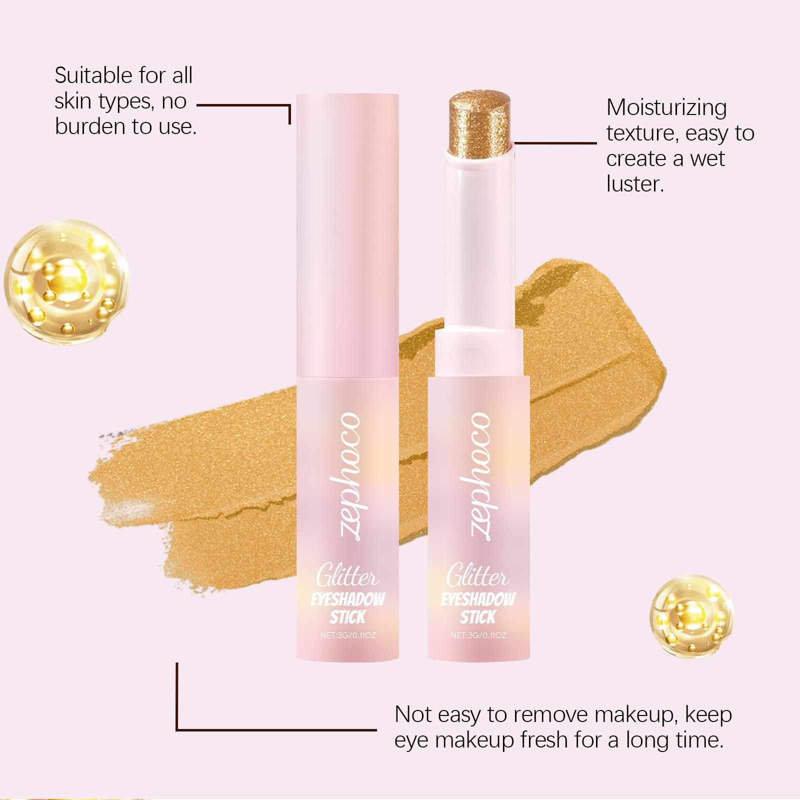 Zephoco Barra de Sombra de Ojos Starlight Gold Multicolor Cristal Lentejuela Crema Color de Larga Duración Fácil de Aplicar Maquillaje Barra de Sombra de Ojos