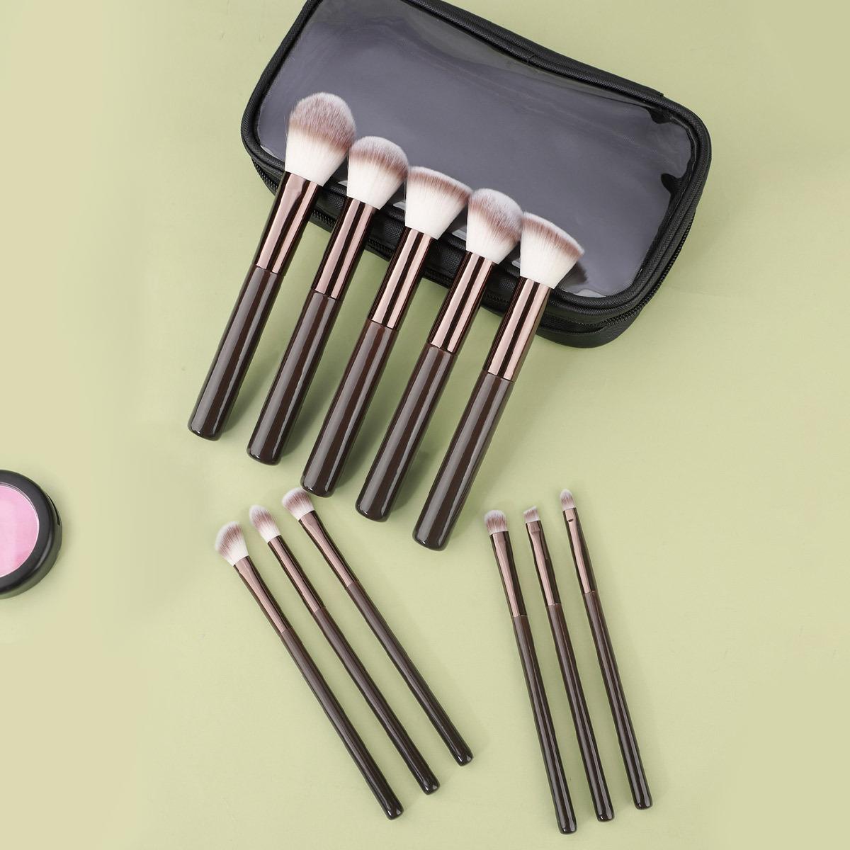 Set de Brochas de Maquillaje Suaves de 11 Piezas Exclusivo Transfronterizo con Mango de Madera Maciza Pincel para Polvo de Tres Colores Brocha para Base Brocha para Sombra de Ojos En Stock
