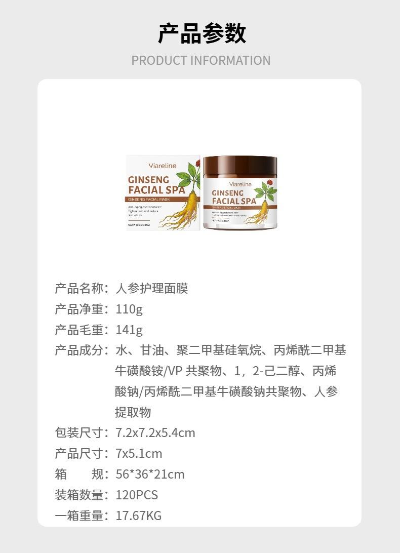 VIARELINE Mascarilla de Cuidado de Ginseng Nutritiva Delicada Hidratante Refrescante Humectante Cuidado Diario de la Piel