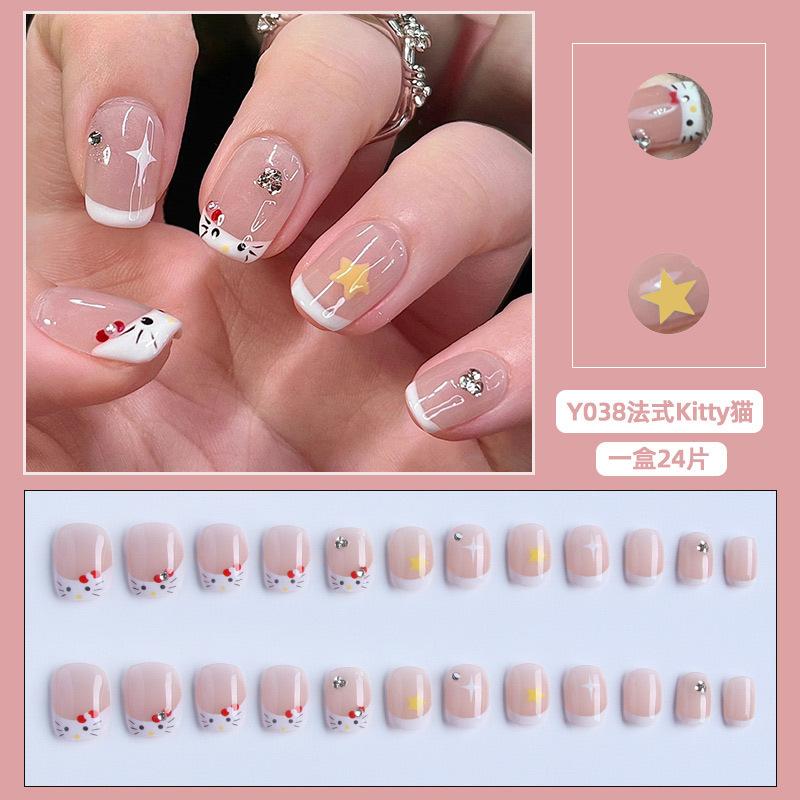 Usa un Arte de Uñas de Libro Rojo Pequeño Uña Postiza Color Nude Blanco Desmontable Usa un Parche de Uña Postiza Chica Caliente Flash