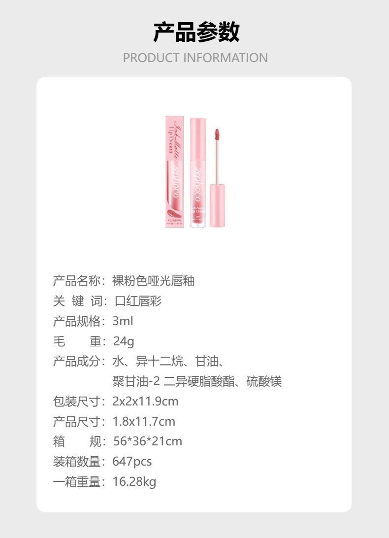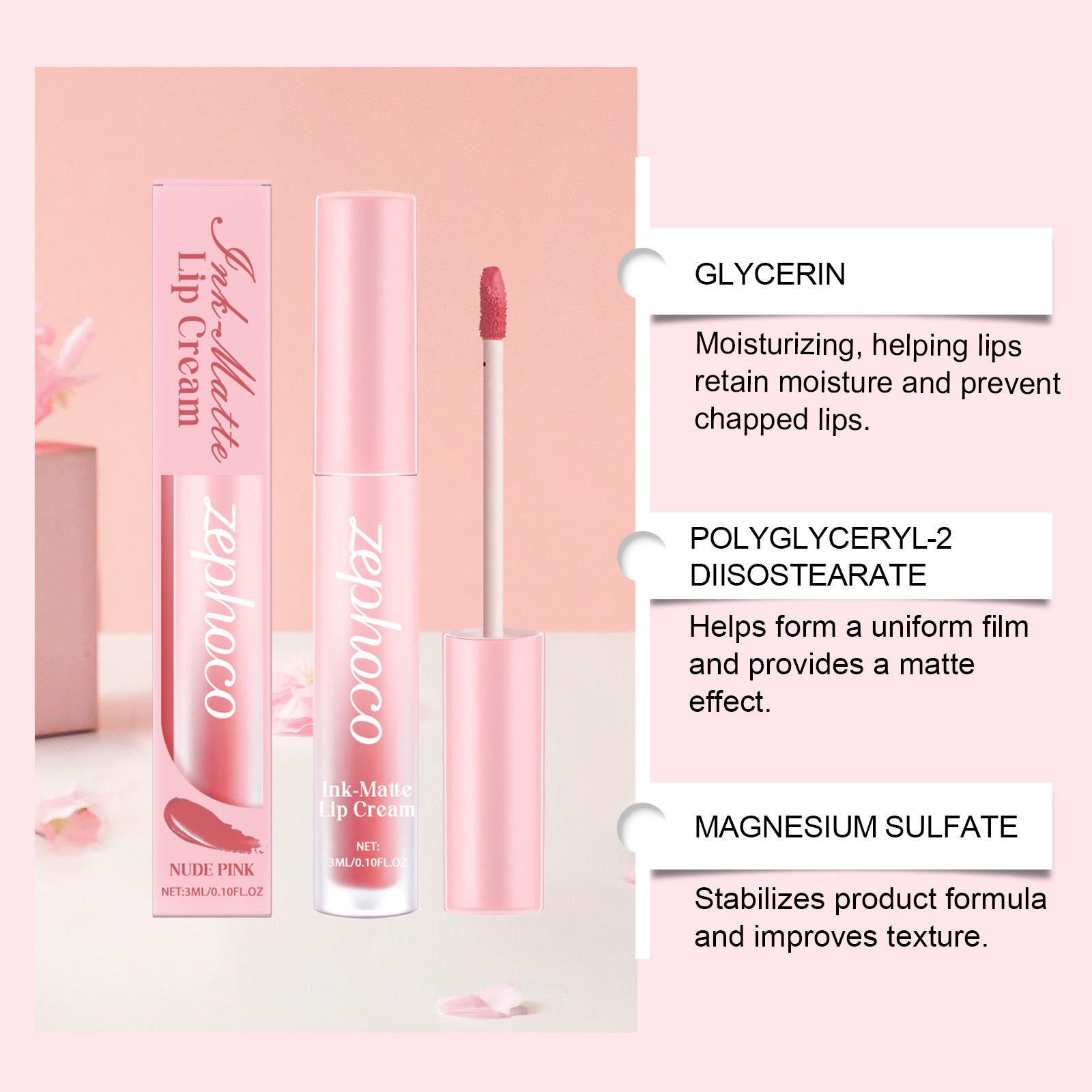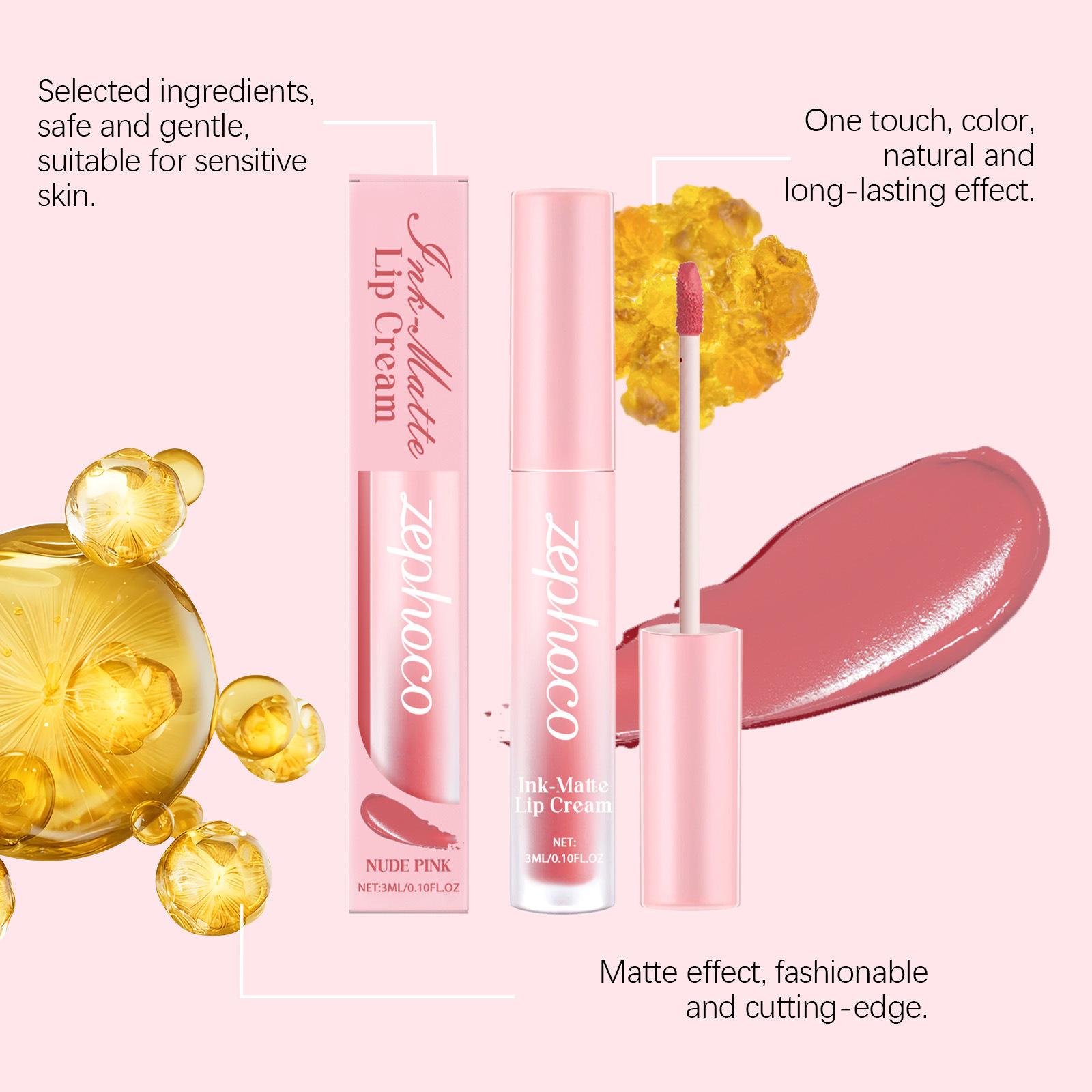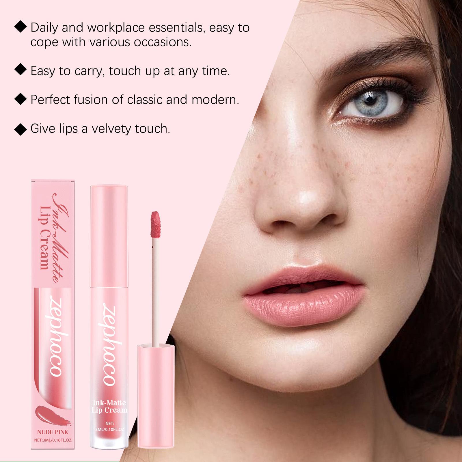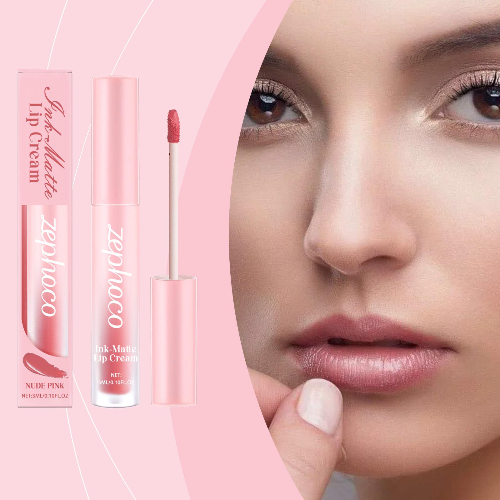 Zephoco Brillo Labial Mate Rosa Nude Hidratante Sedoso No Transfiere Color Color Natural Potenciador Color de Alta Gama