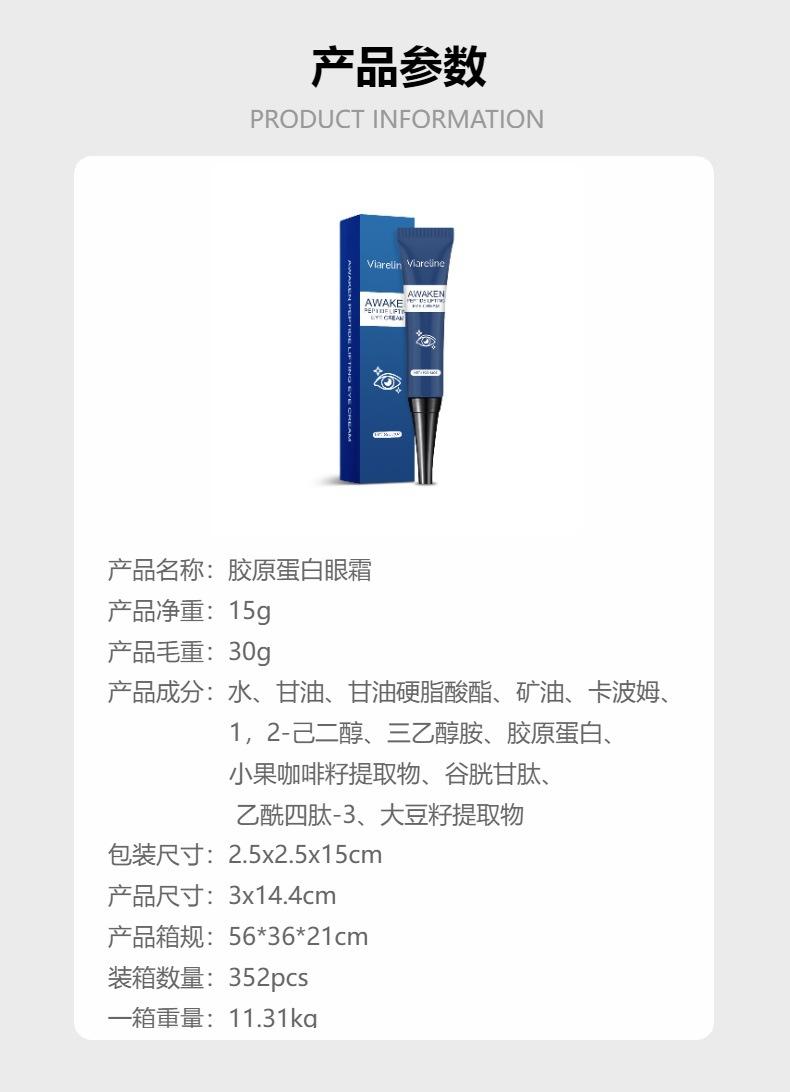 Crema para Ojos Reafirmante de Colágeno Viareline Hidratante, Suave y Lisa Piel de los Ojos Hidratante y Elástica Crema de Masaje
