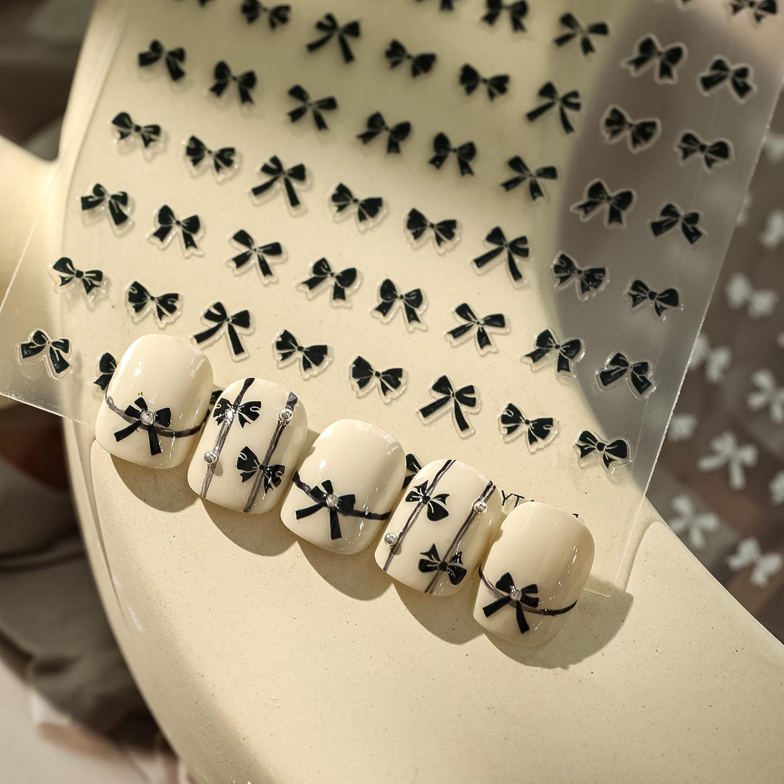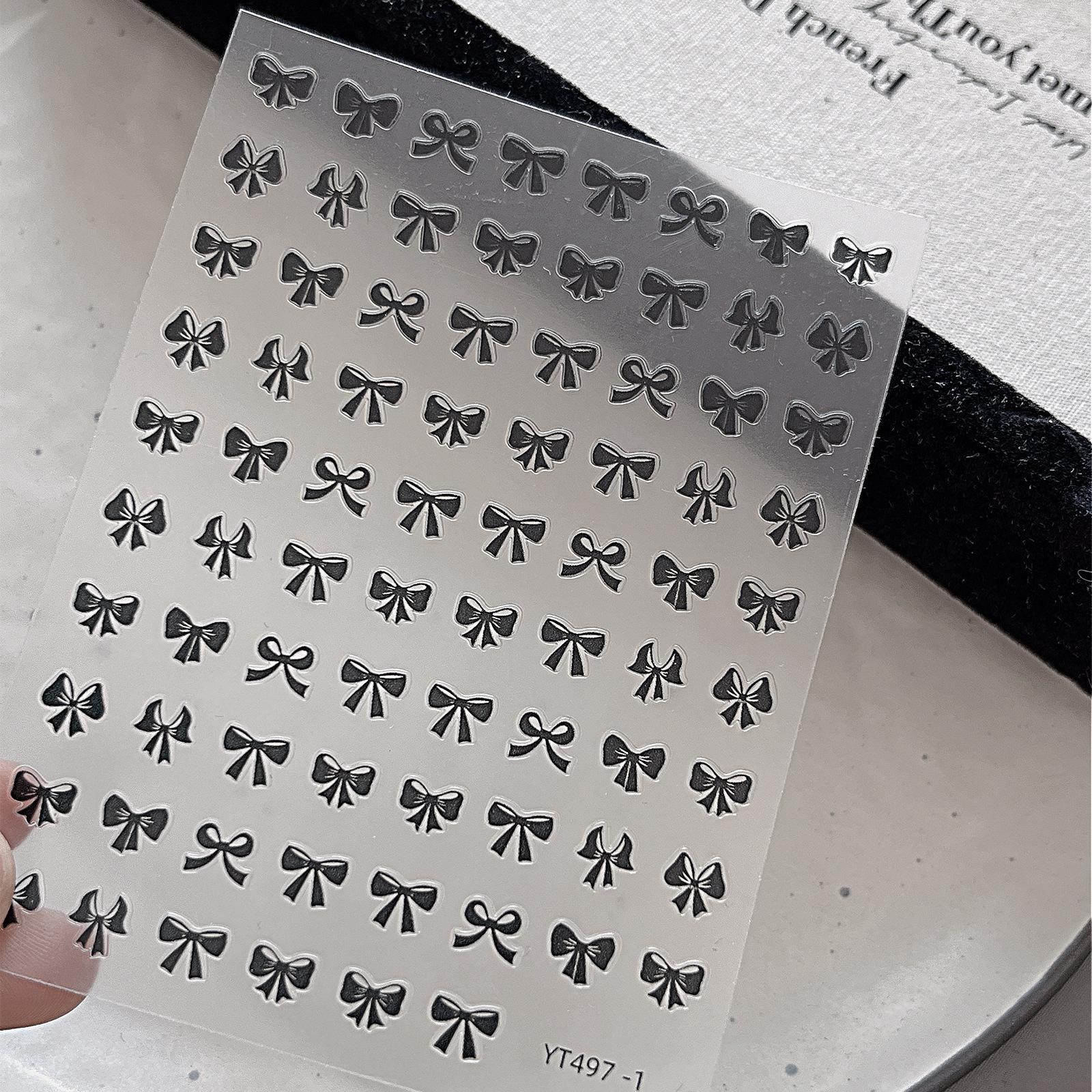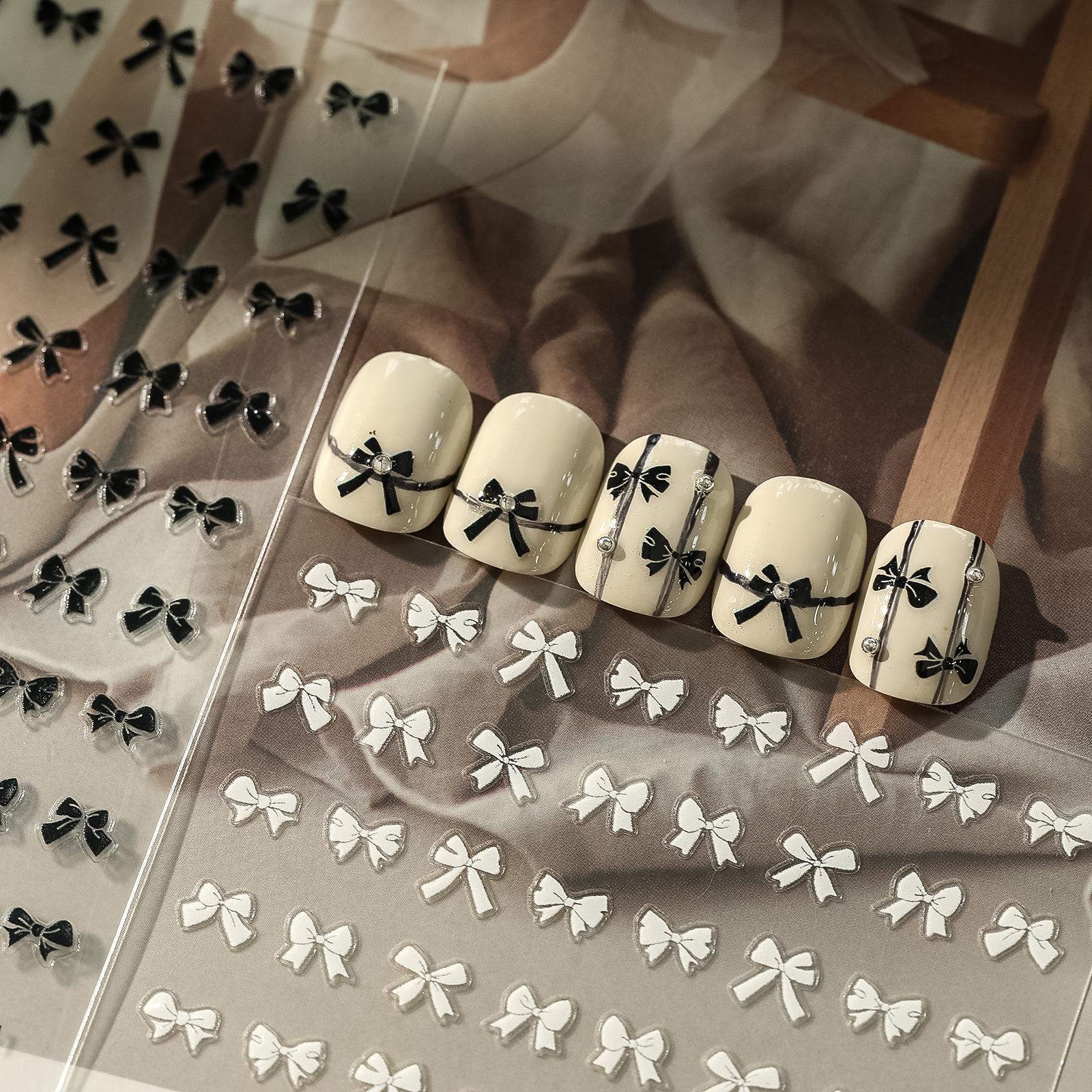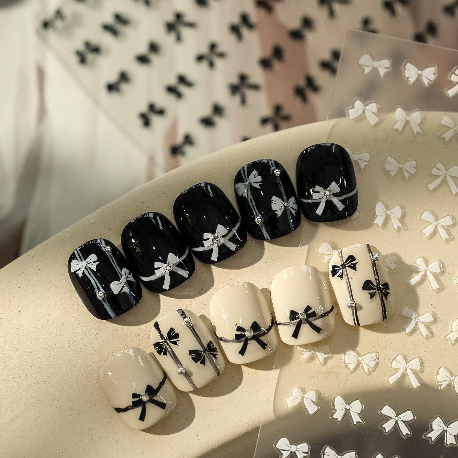 Corbatín Casual Pequeño, Versátiles Stickers Negros y Blancos para Arte de Uñas con Lazo, Stickers para Uñas Recortados Asimétricos Pintados a Mano