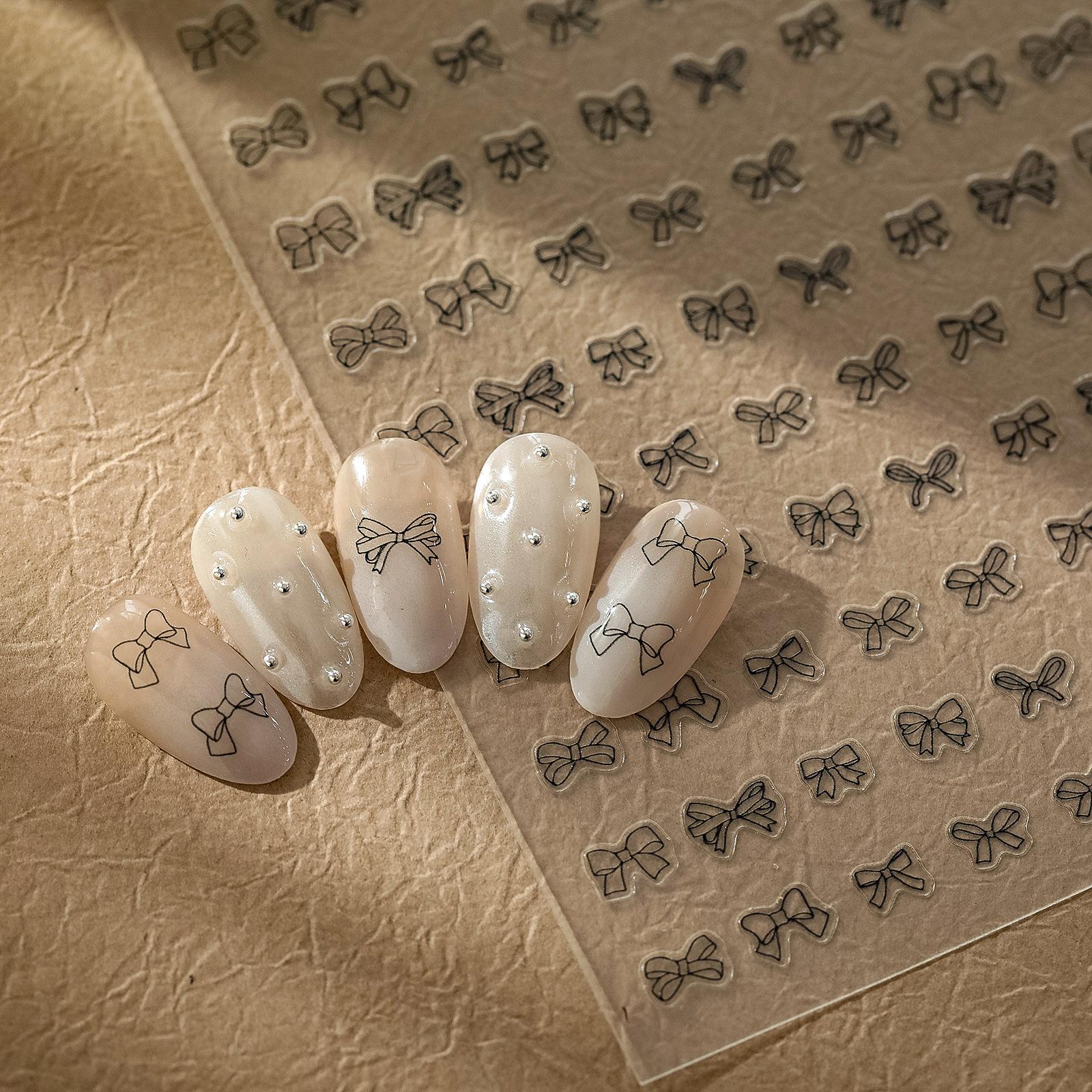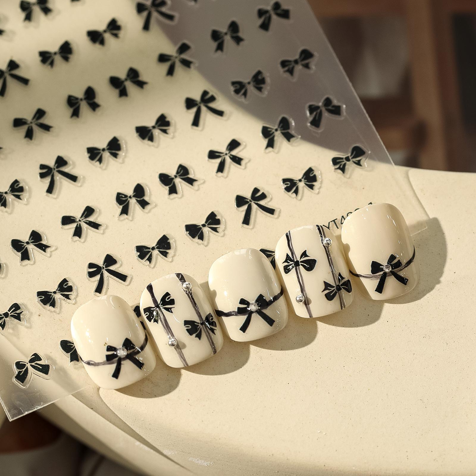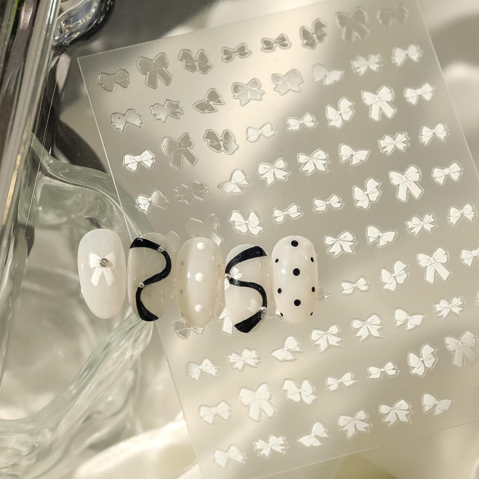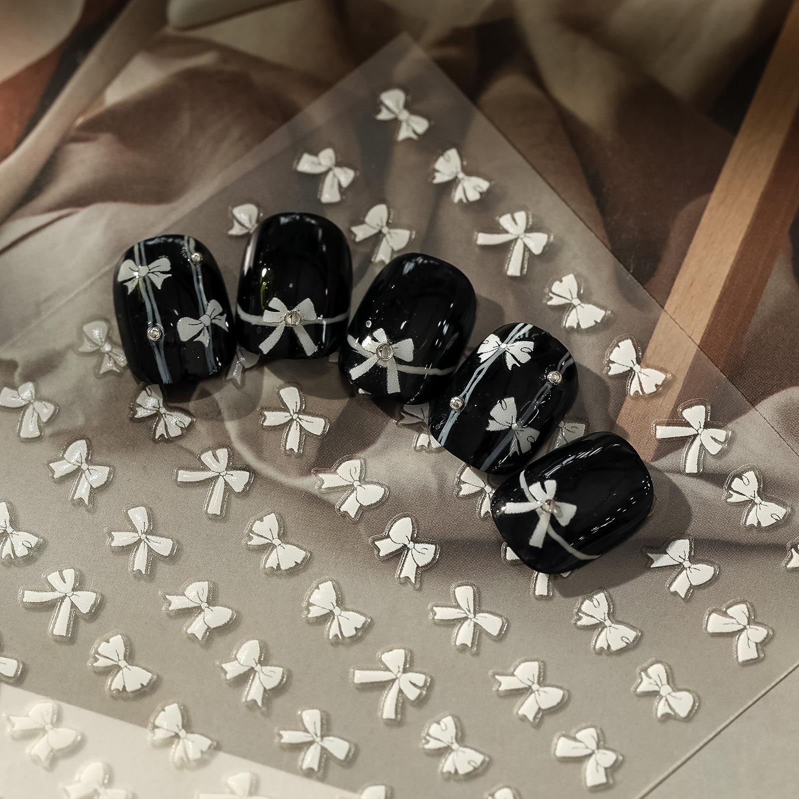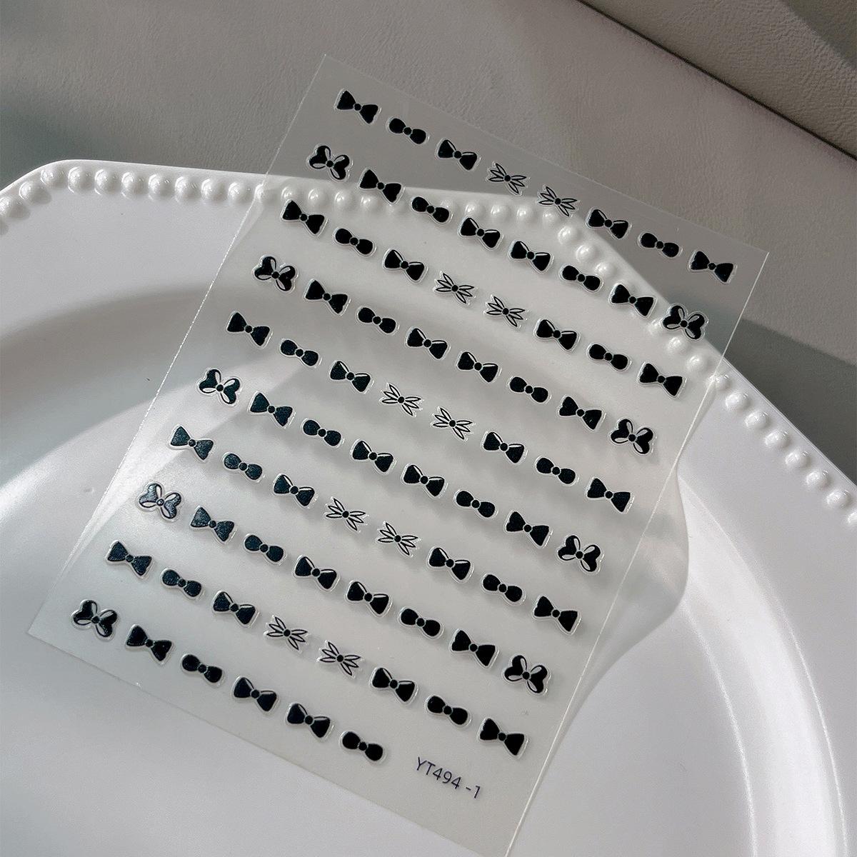 Corbatín Casual Pequeño, Versátiles Stickers Negros y Blancos para Arte de Uñas con Lazo, Stickers para Uñas Recortados Asimétricos Pintados a Mano