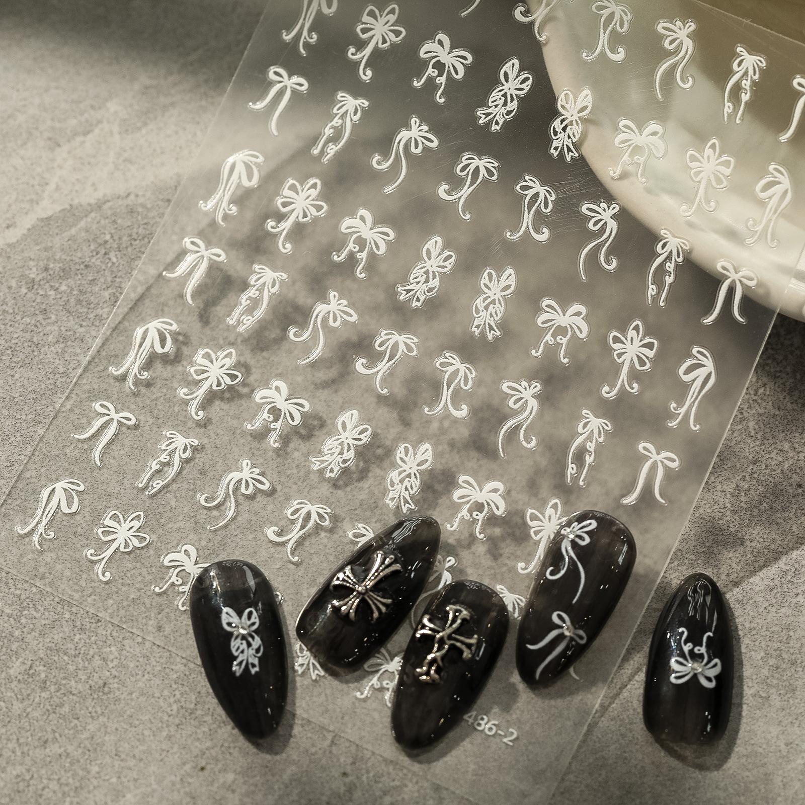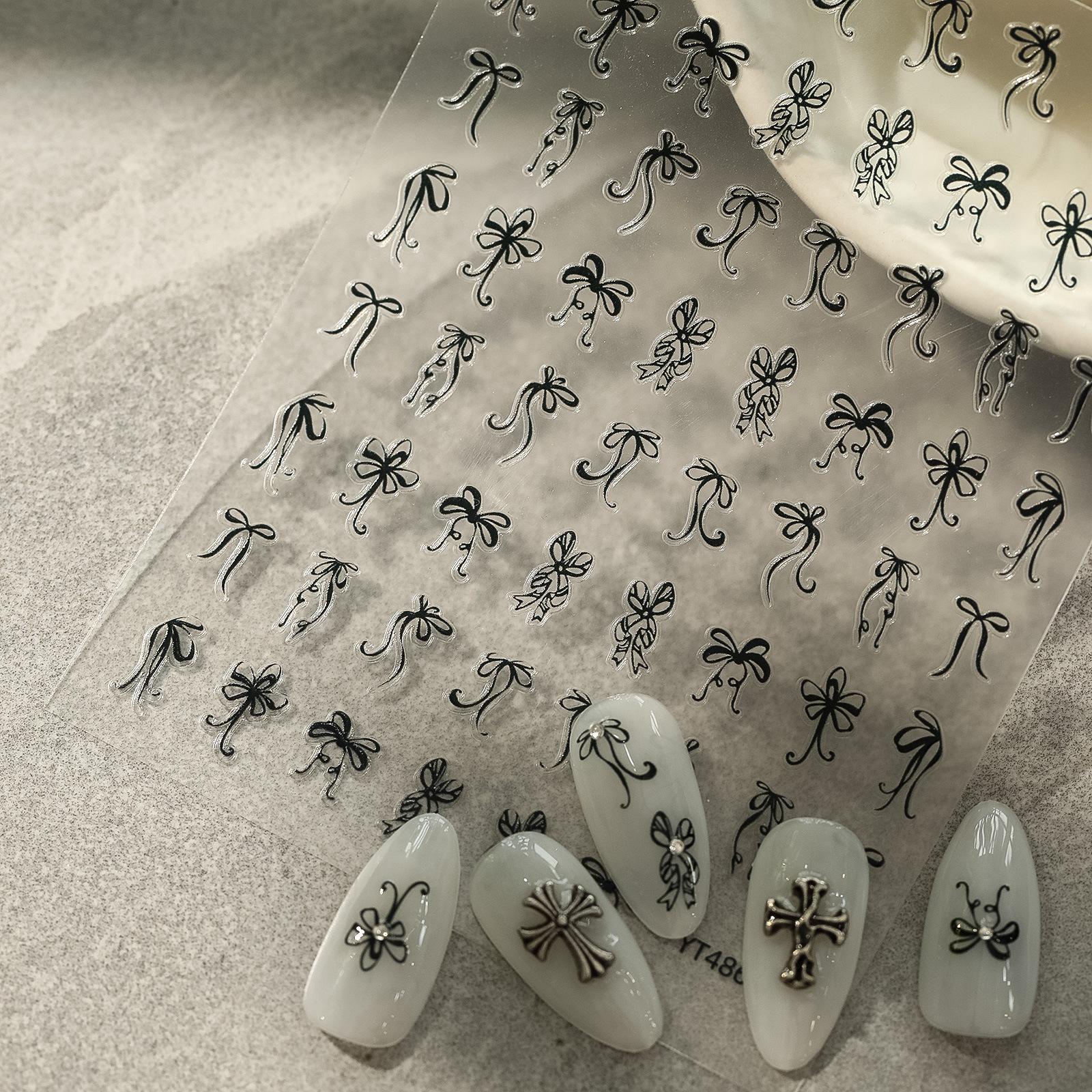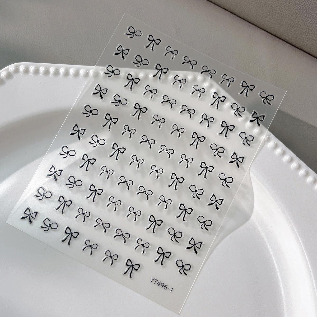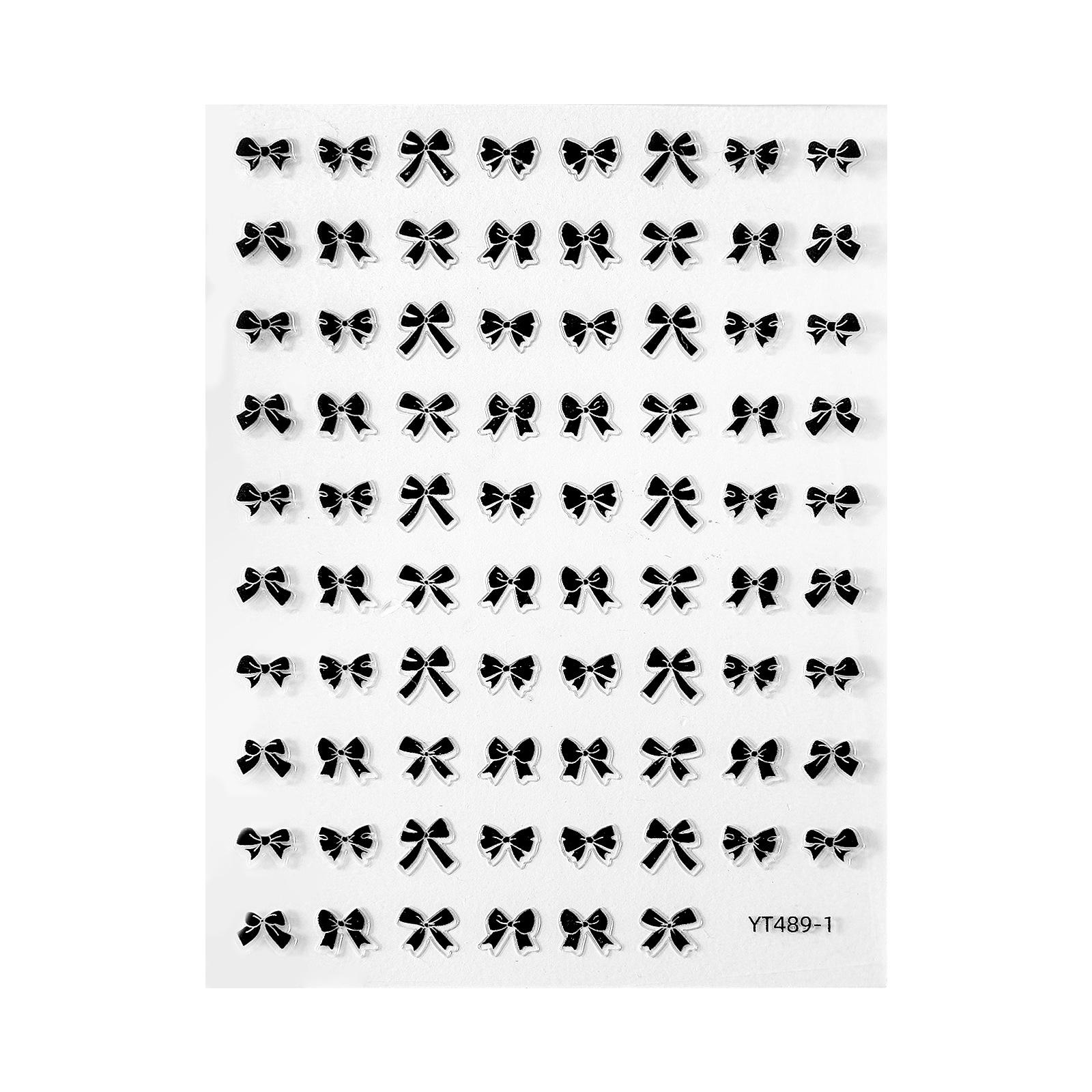 Corbatín Casual Pequeño, Versátiles Stickers Negros y Blancos para Arte de Uñas con Lazo, Stickers para Uñas Recortados Asimétricos Pintados a Mano