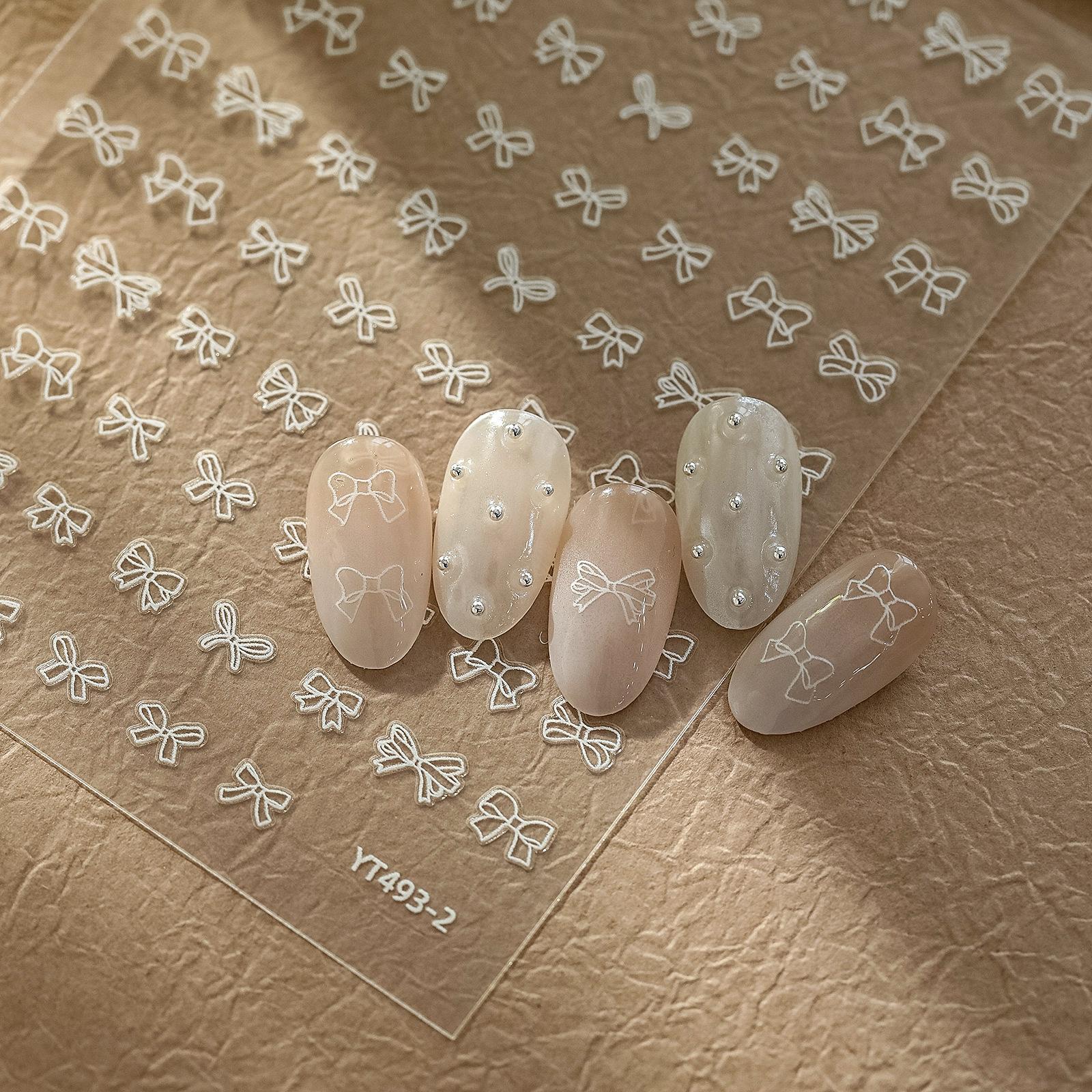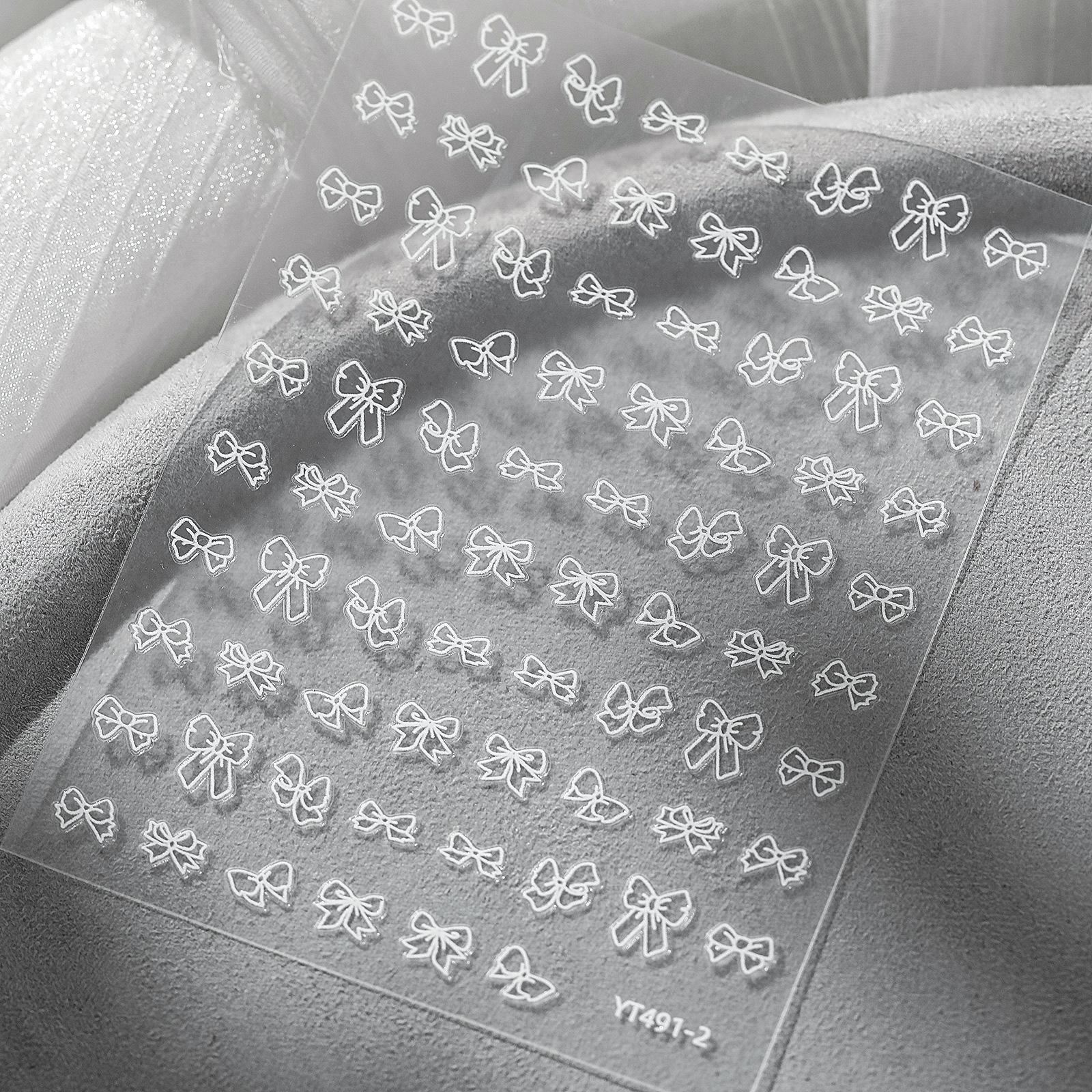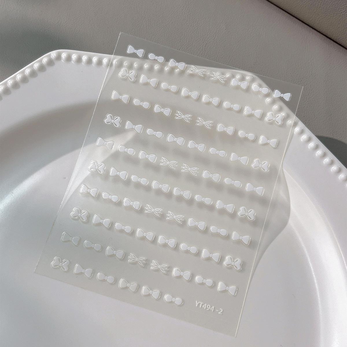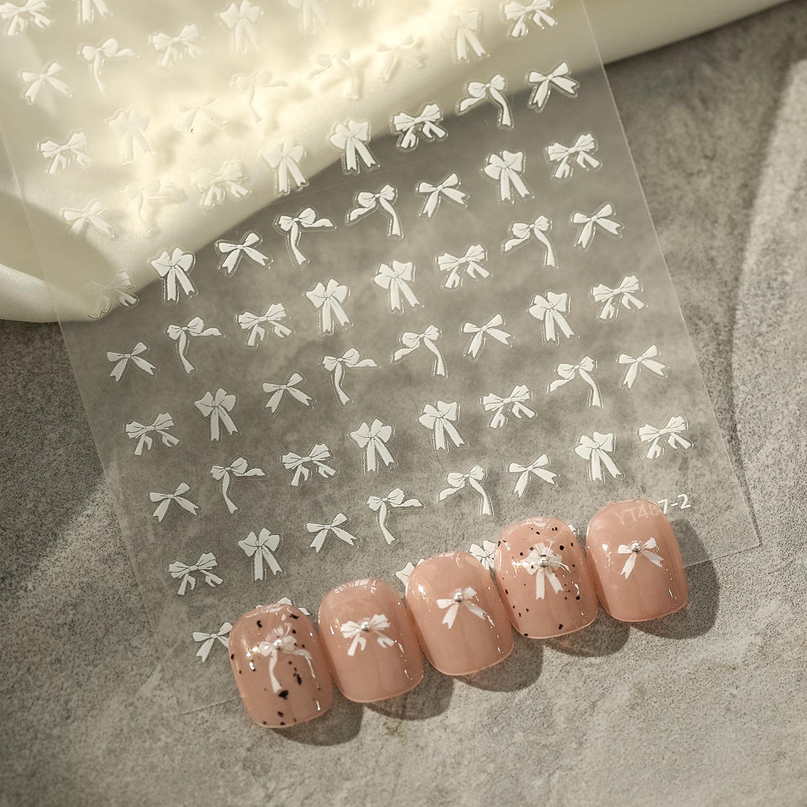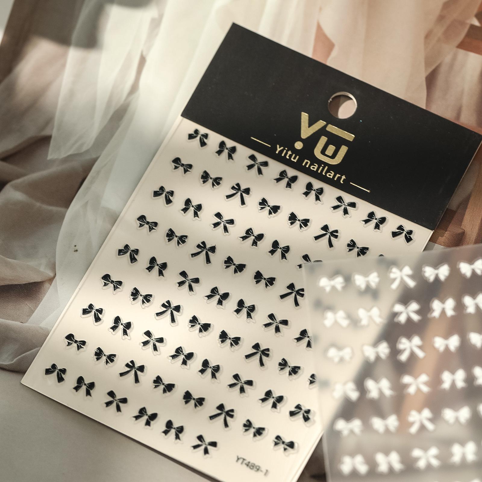 Corbatín Casual Pequeño, Versátiles Stickers Negros y Blancos para Arte de Uñas con Lazo, Stickers para Uñas Recortados Asimétricos Pintados a Mano