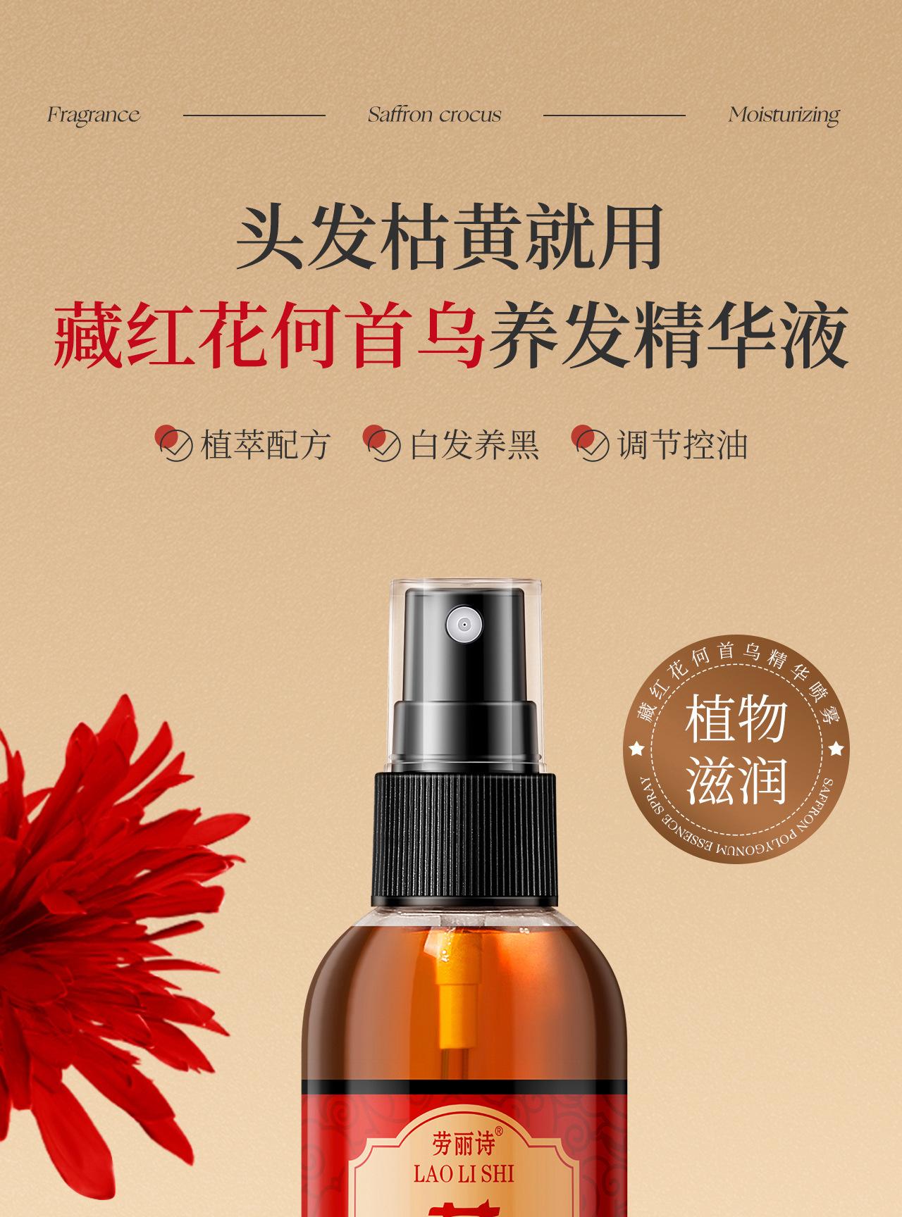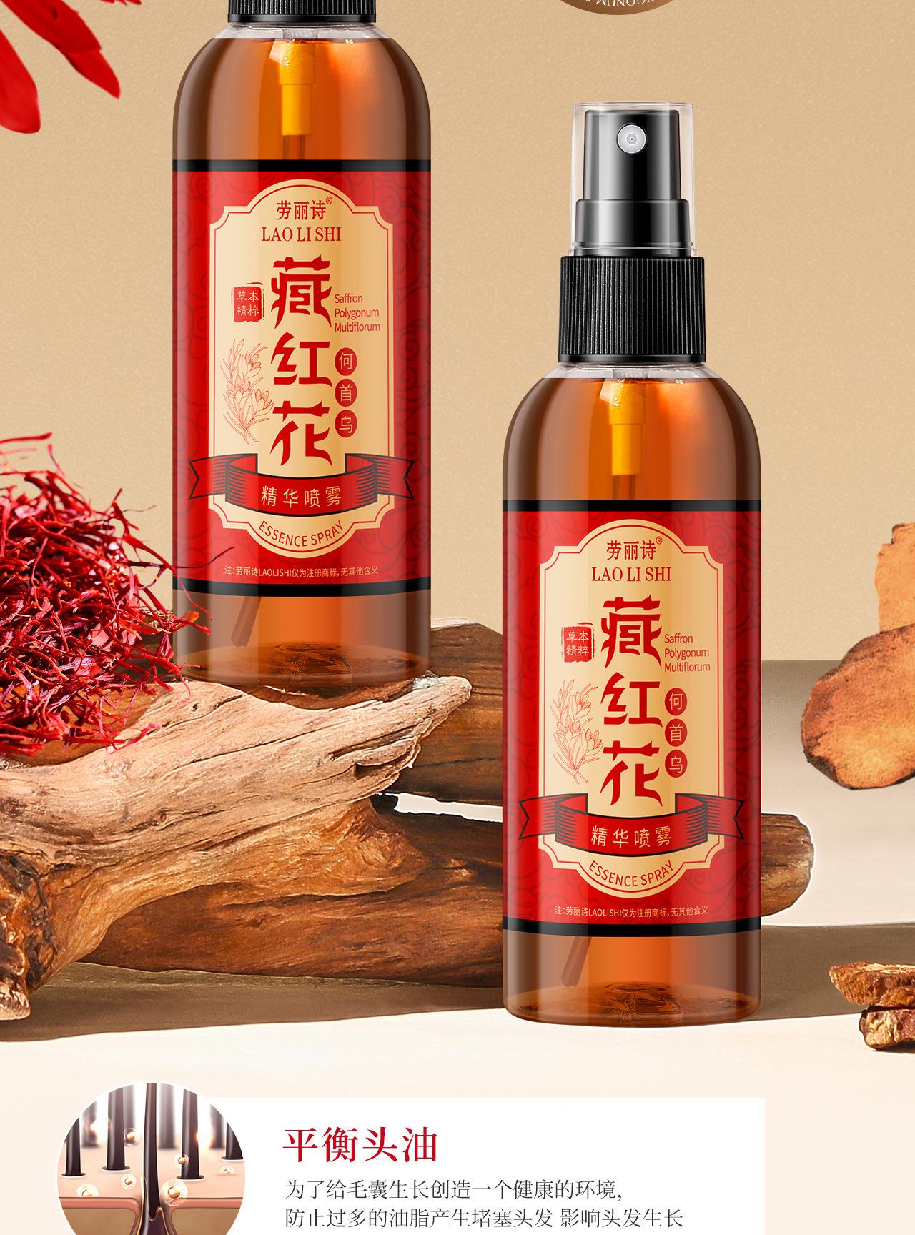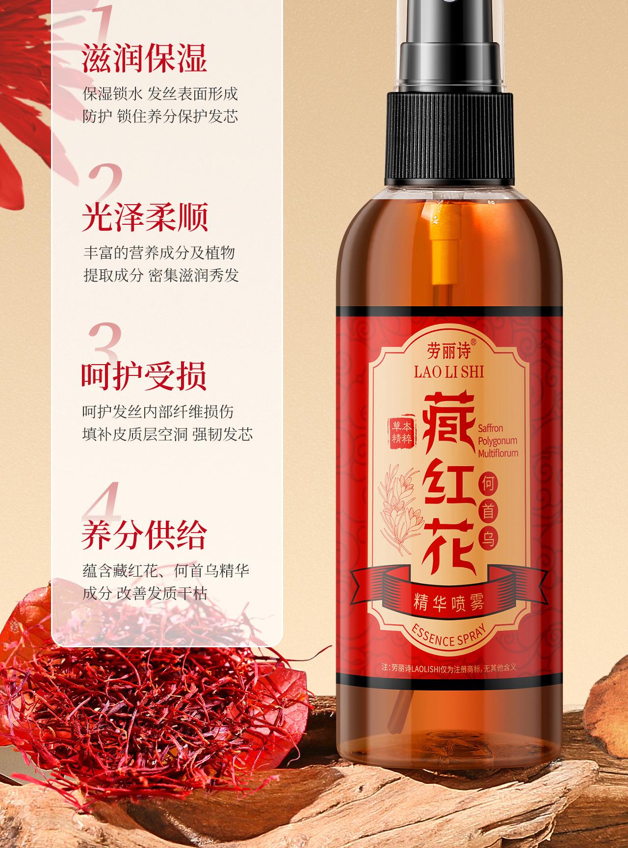 Spray de Esencia de Azafrán y Polygonum Multiflorum de Laurie para el Cuidado Suave y Nutritivo del Cabello, Adecuado para Cabello Seco, Encrespado, Teñido y Permanentado