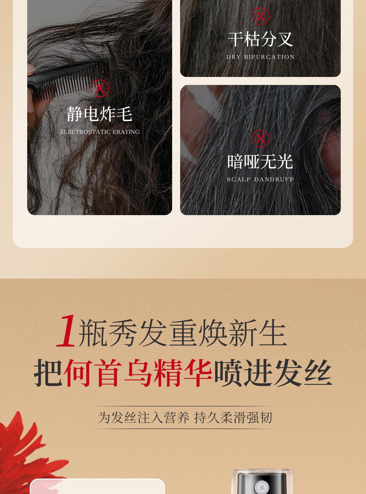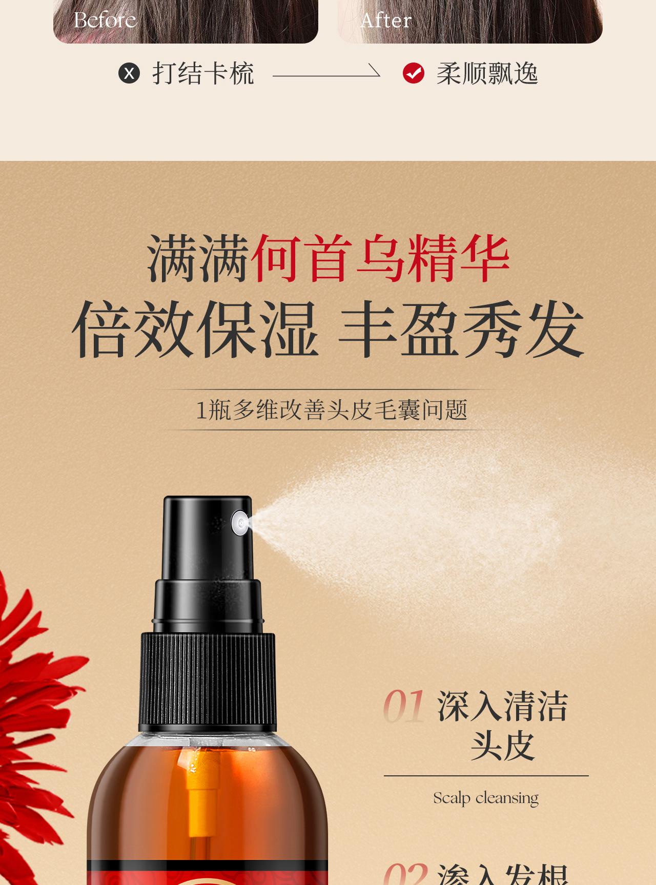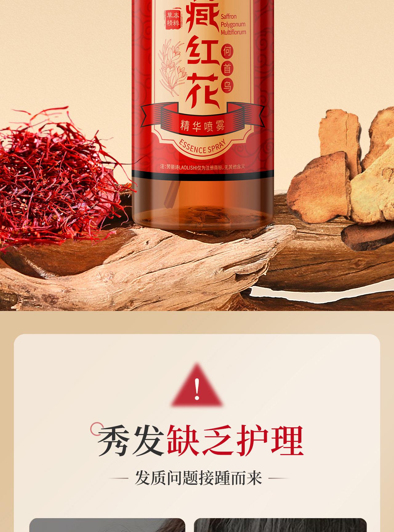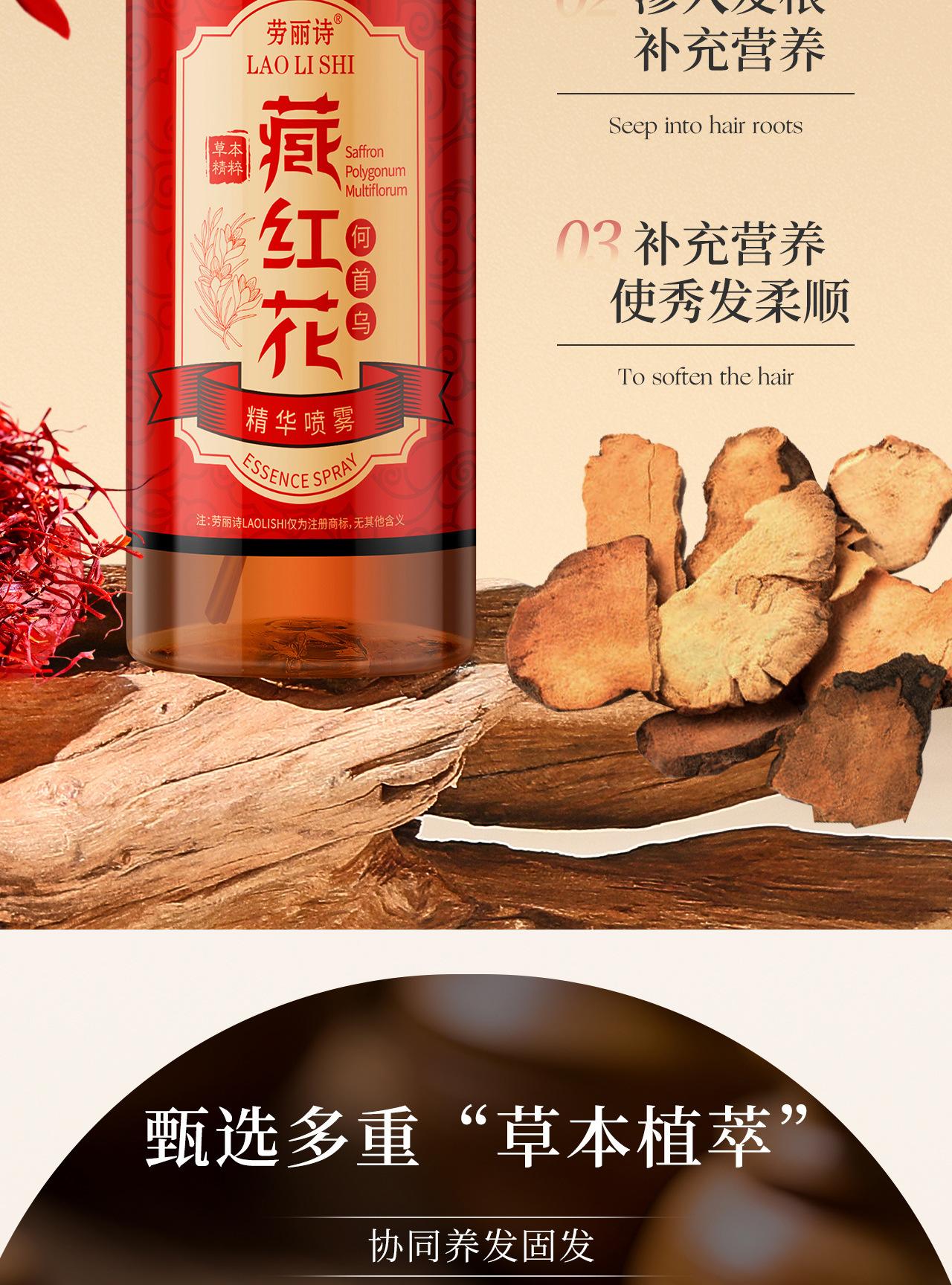 Spray de Esencia de Azafrán y Polygonum Multiflorum de Laurie para el Cuidado Suave y Nutritivo del Cabello, Adecuado para Cabello Seco, Encrespado, Teñido y Permanentado