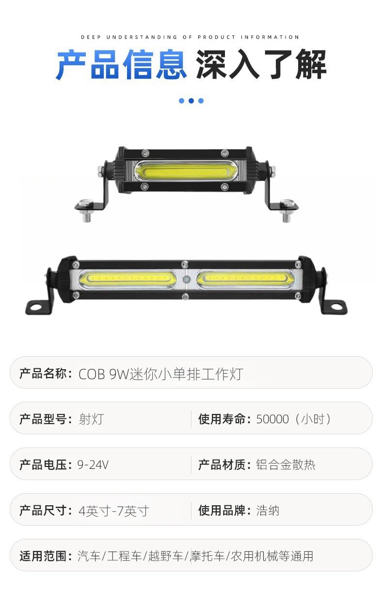 Luz LED de Tira para Coche al por Mayor Mini Pequeña Fila Única Cob9W Luz de Trabajo Luz Diurna Modificada Luz Auxiliar para Motocicleta