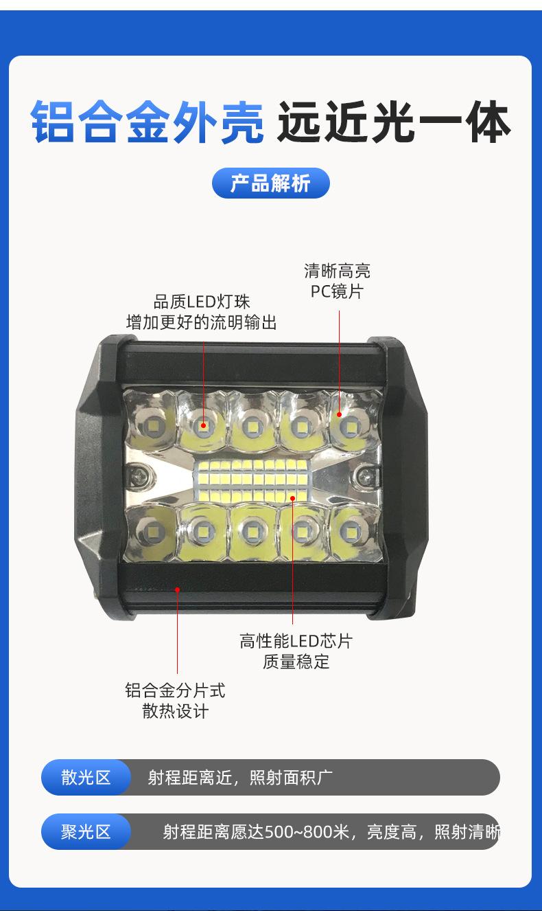 Luz de Trabajo Led para Coche Luz Auxiliar Externa de Inspección Trinocular 4 Pulgadas 20 Led 60W Foco Modificado para Vehículo Todoterreno
