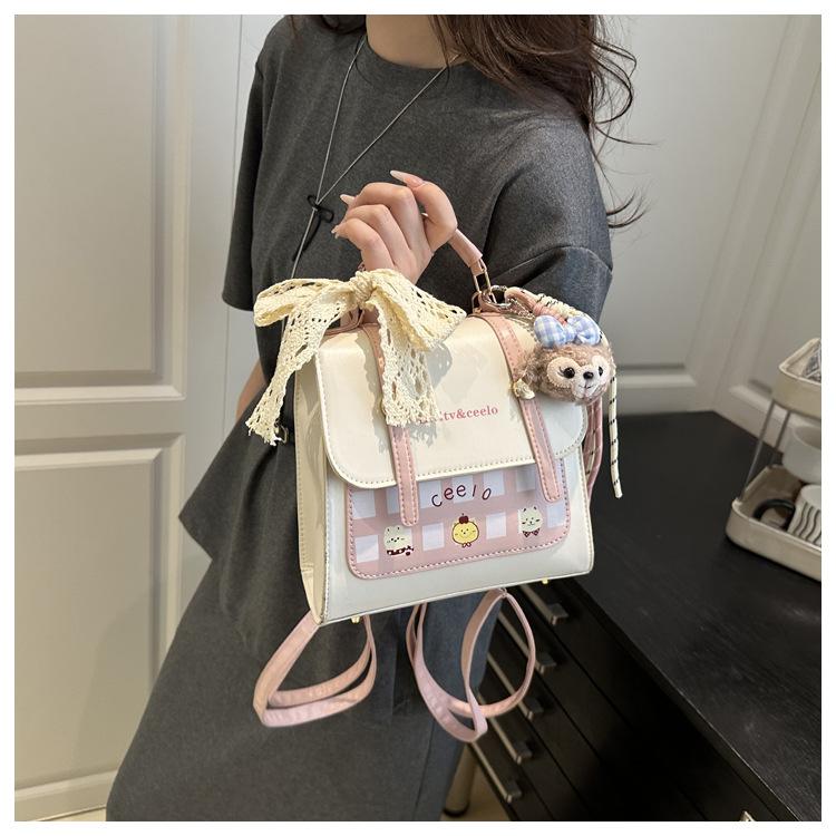 Mochila Retro para Mujer 2025 Primavera y Verano Nuevo Bolso Textura Versátil Color Contrastante Bolso de Hombro Bolso Cruzado de Moda