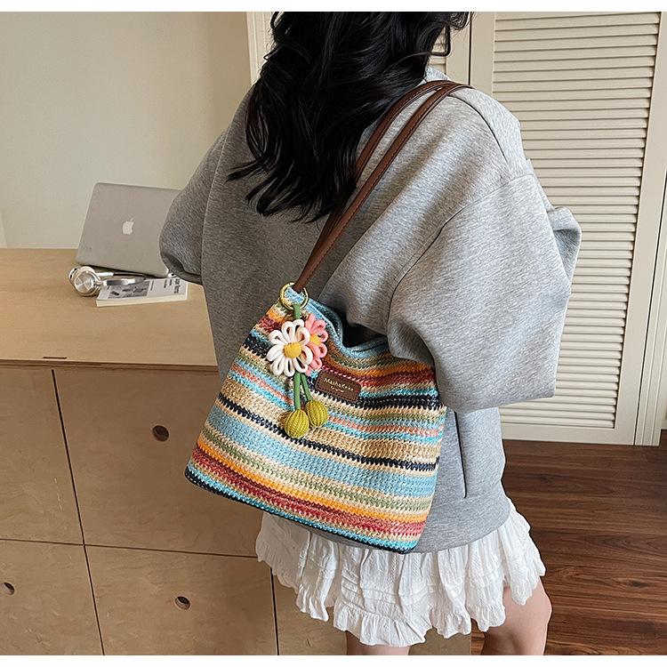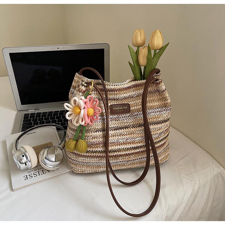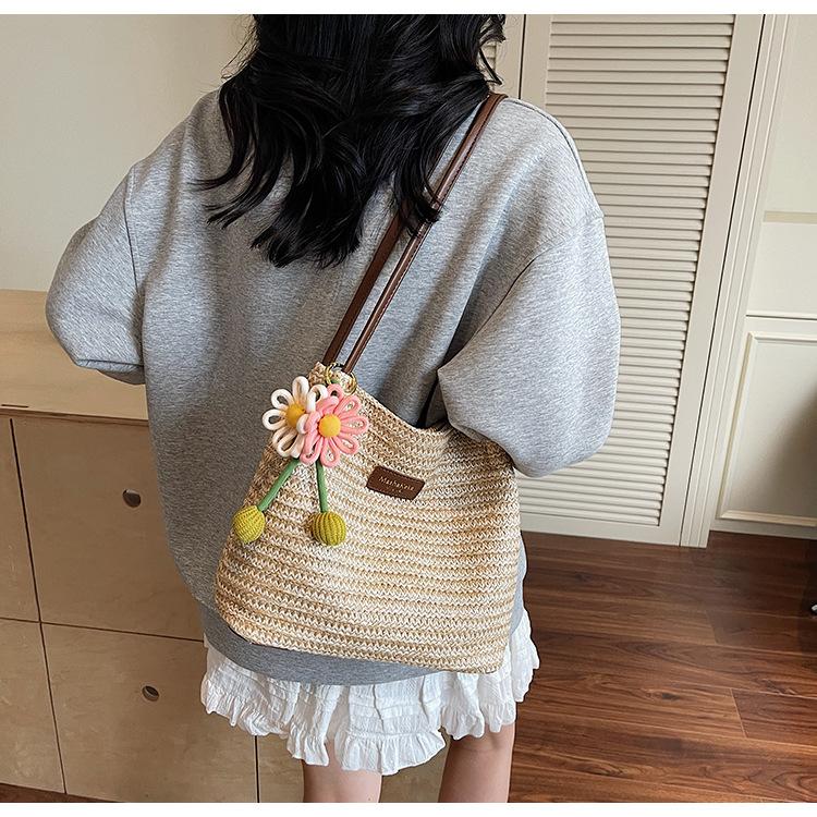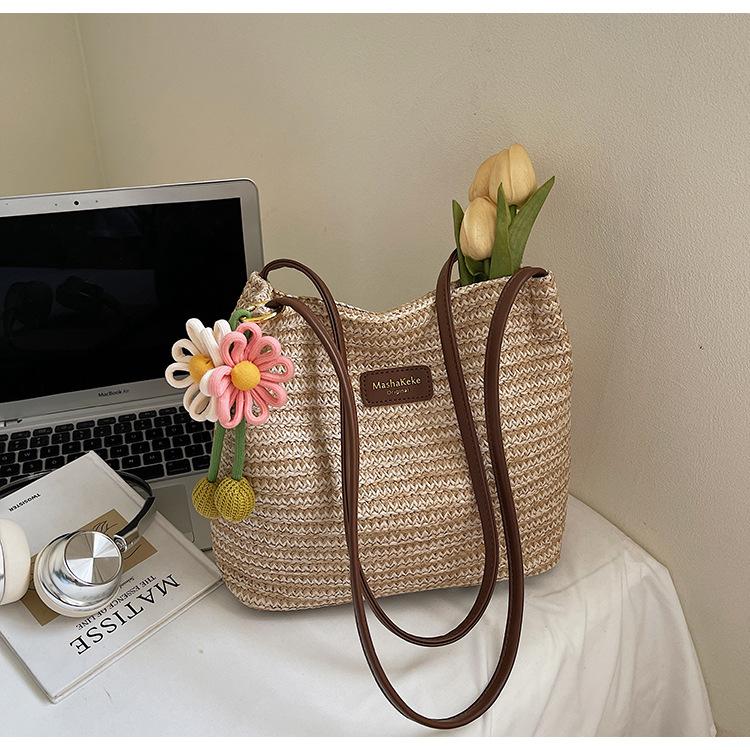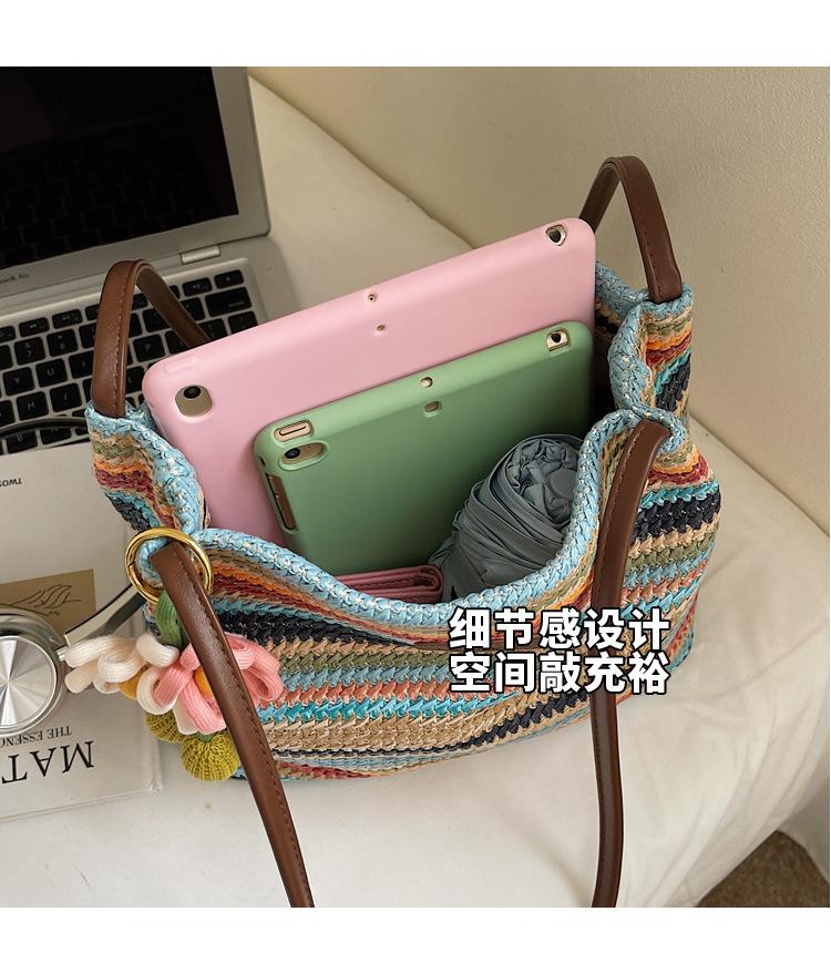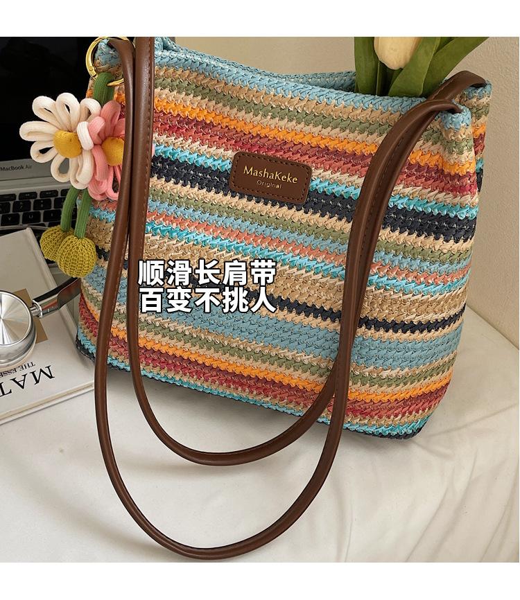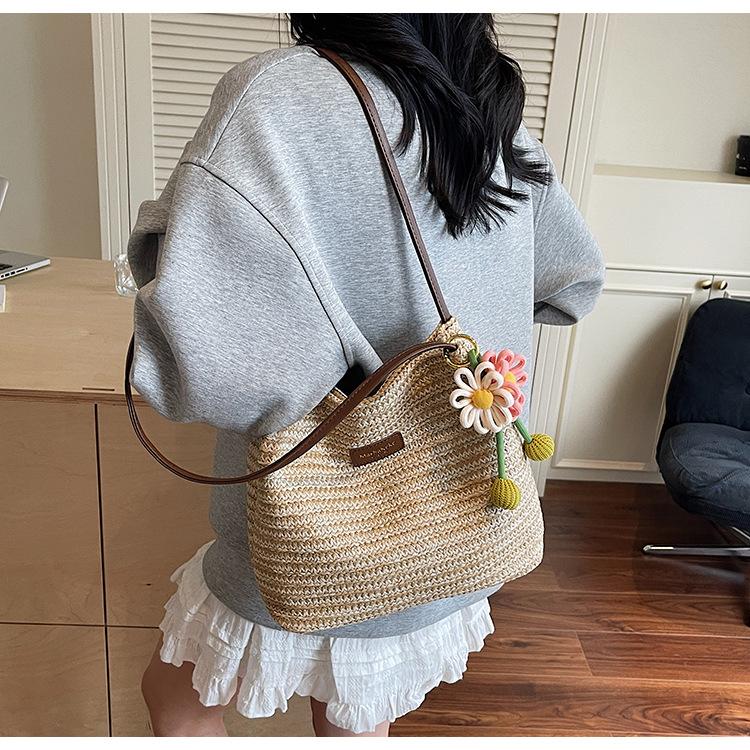 Bolso de Paja Tejida para Mujer de Gran Capacidad 2025 Nueva Moda de Verano Casual Recortado al Hombro Vacaciones Marítimas Bolso de Playa