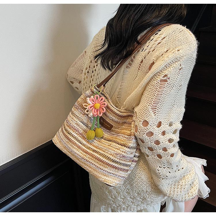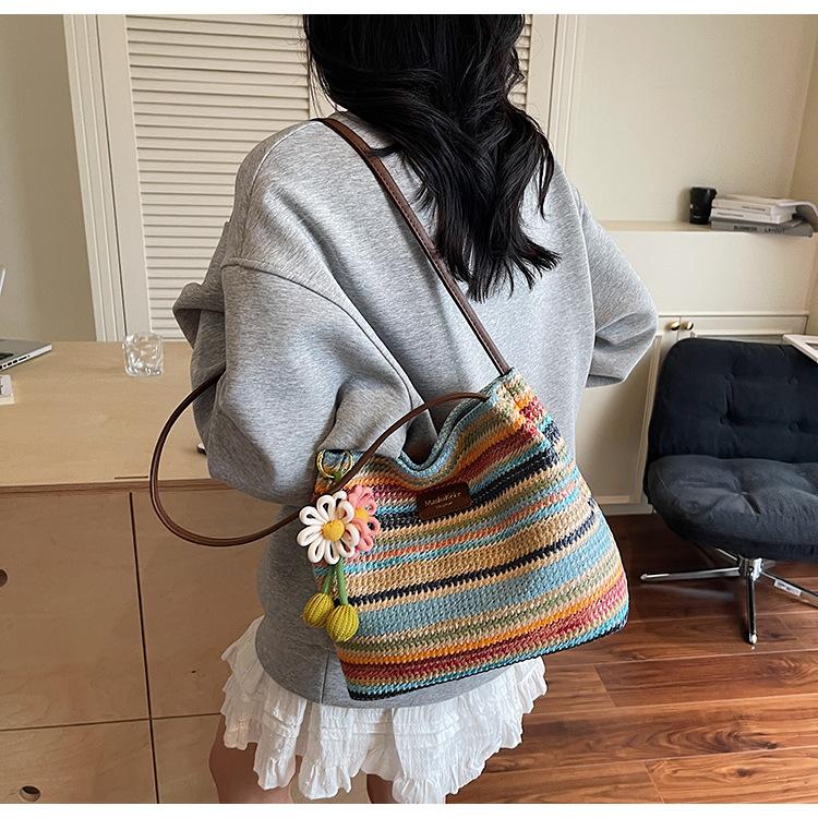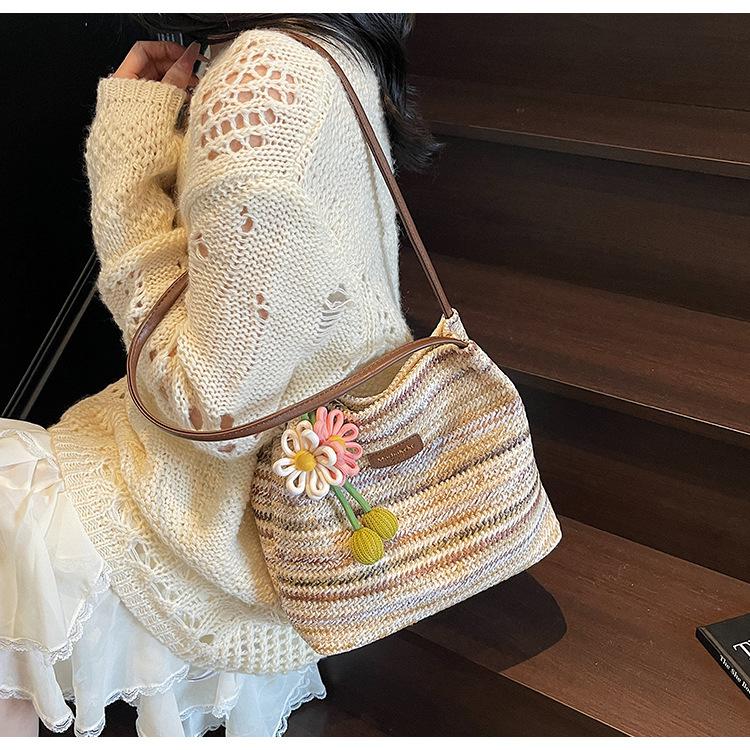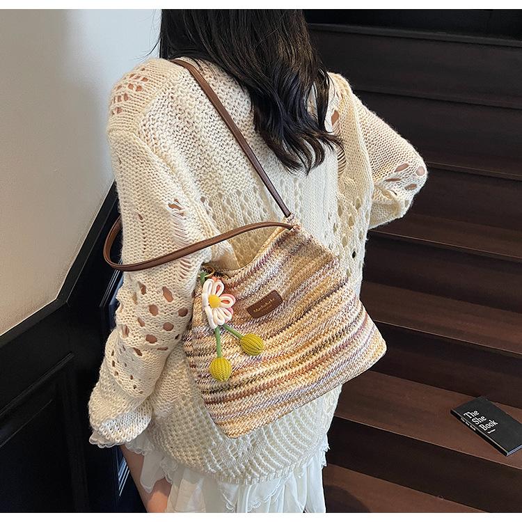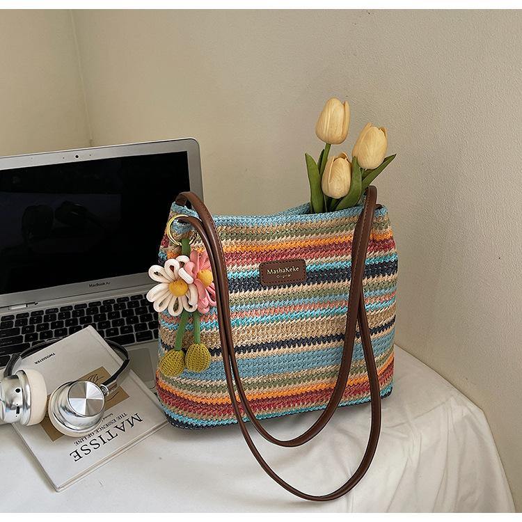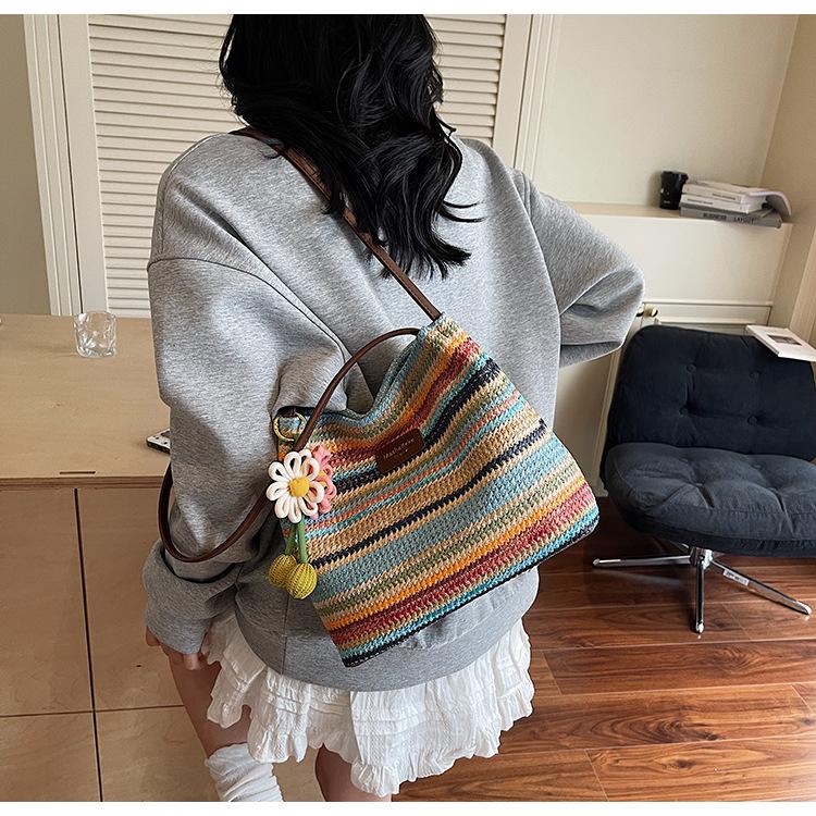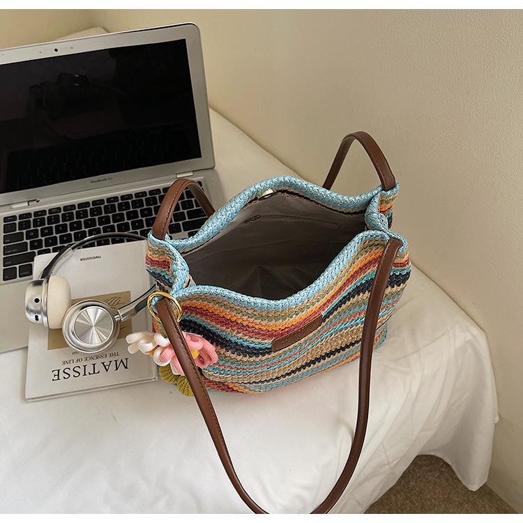 Bolso de Paja Tejida para Mujer de Gran Capacidad 2025 Nueva Moda de Verano Casual Recortado al Hombro Vacaciones Marítimas Bolso de Playa