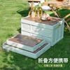 Caja de Almacenamiento Plegable para Camping al Aire Libre Organizador de Picnic Caja de Almacenamiento Creativa con Tapa de Madera para Maletero de Coche
