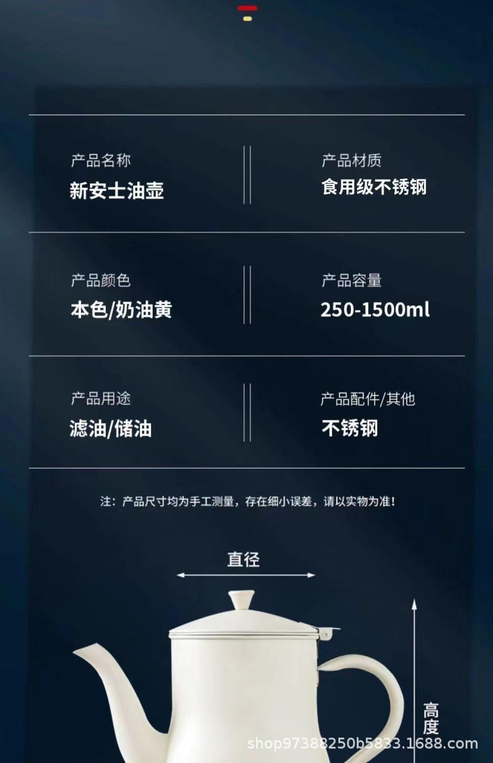 Olla de Aceite de Acero Inoxidable Espesada Olla Blanca Anshi Tanque de Almacenamiento de Aceite Botella de Aceite Multiusos con Malla Antigoteo Olla para Salsa Vinagre Botella para Especias Hogar