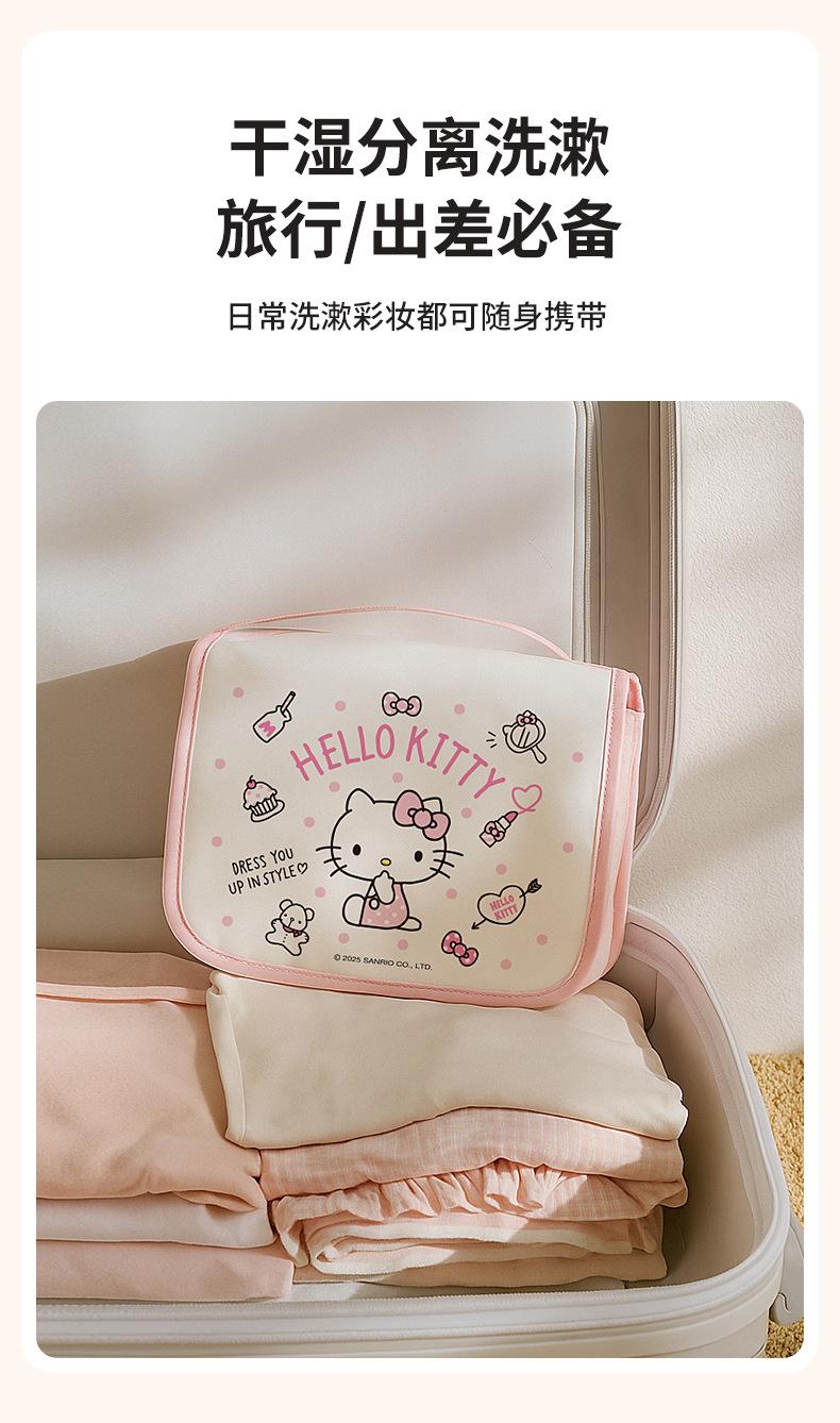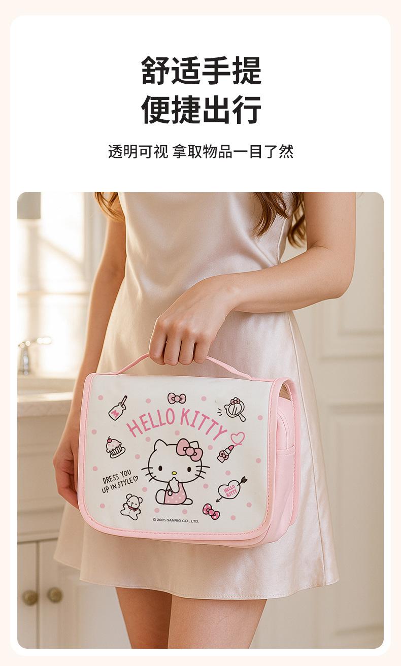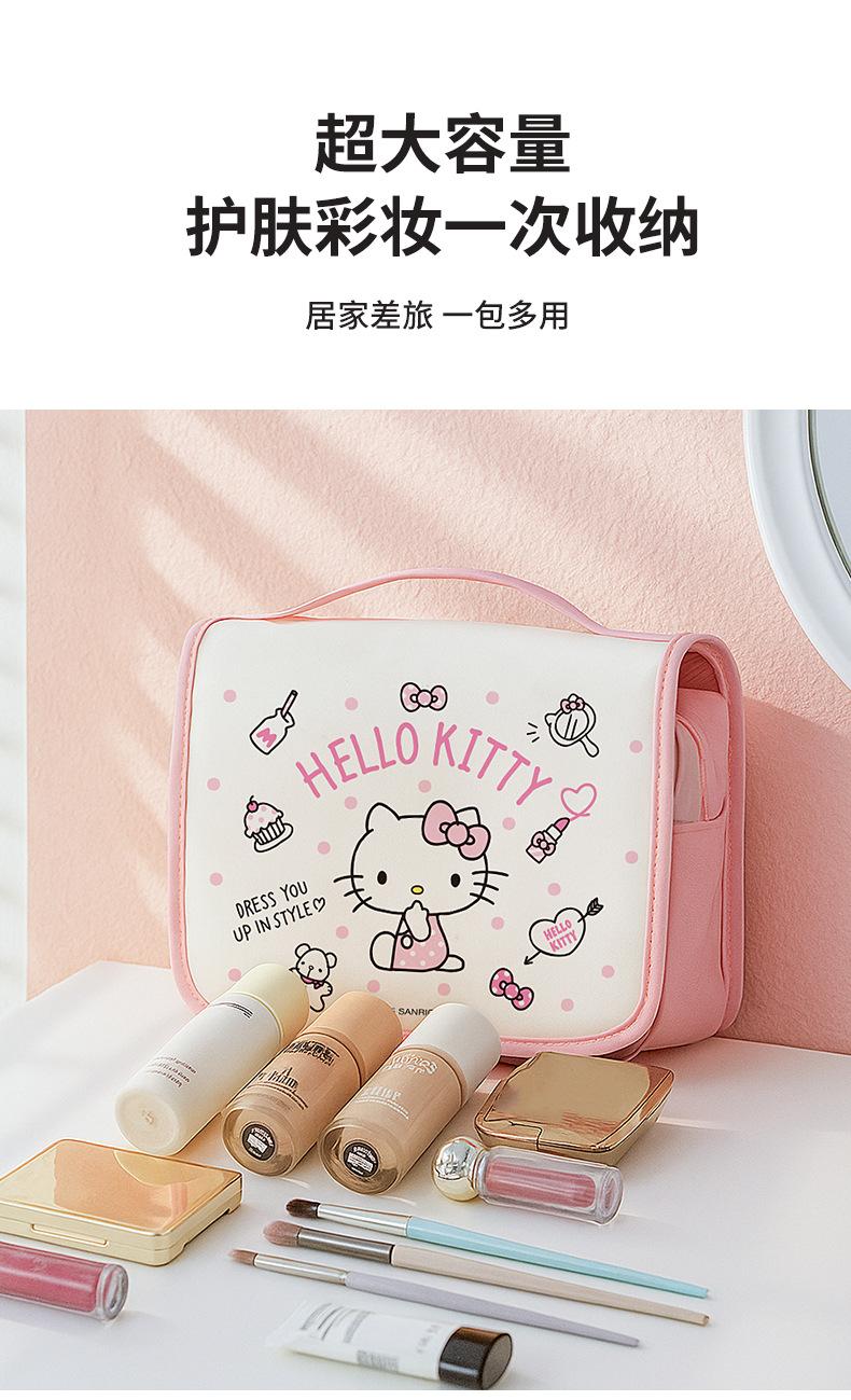 Sanrio Bolsa de Viaje con Gancho de Gran Capacidad para Artículos de Aseo Bolsa de Almacenamiento Colgante Bolsa de Maquillaje Multifuncional Impermeable de Mano para Mujer