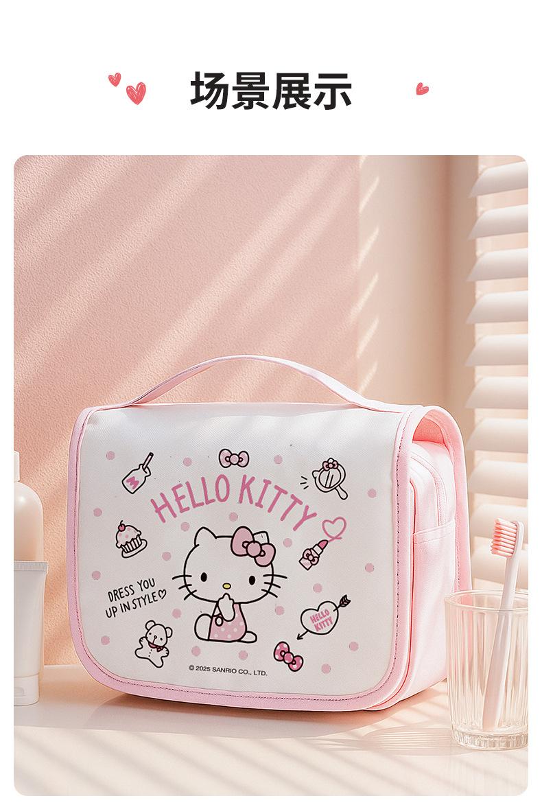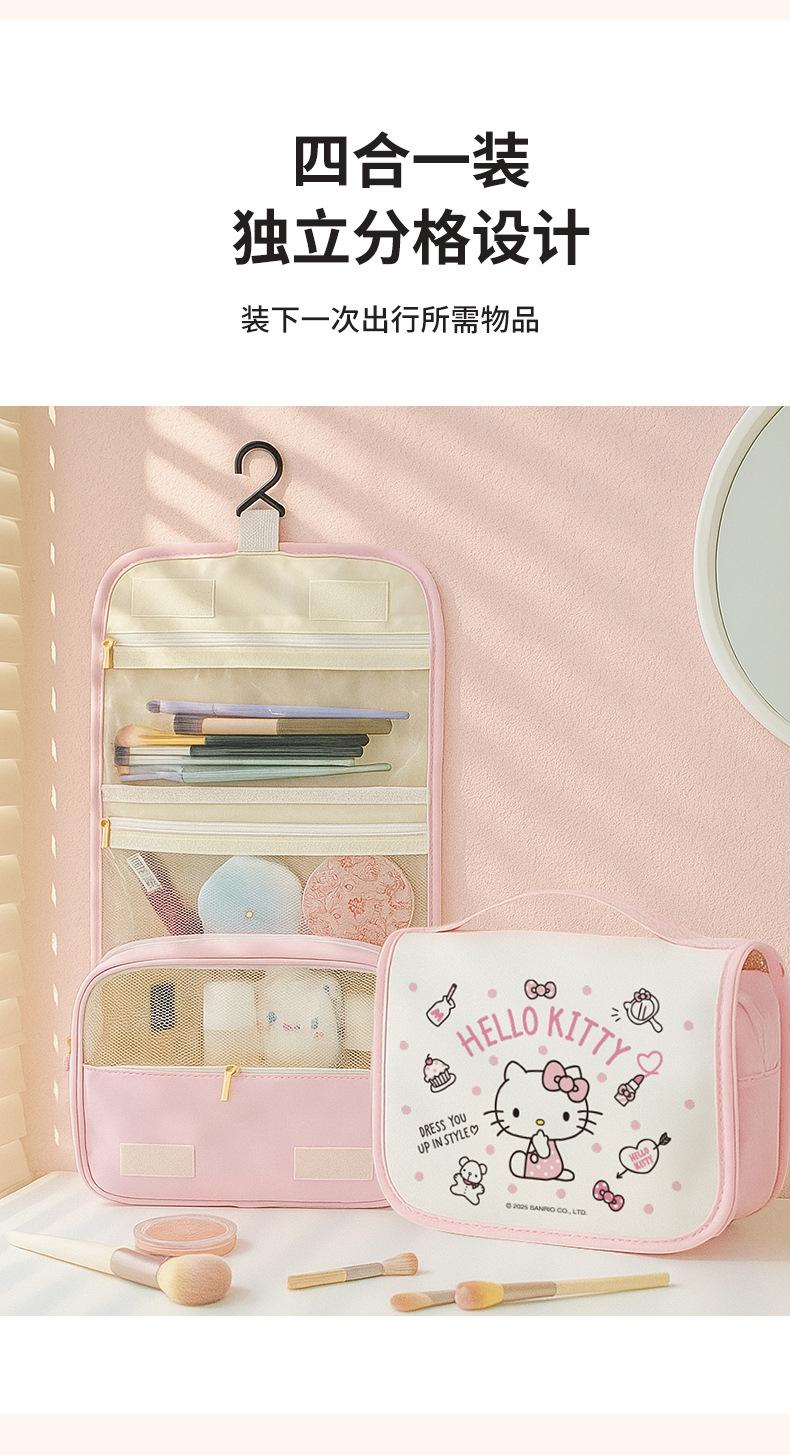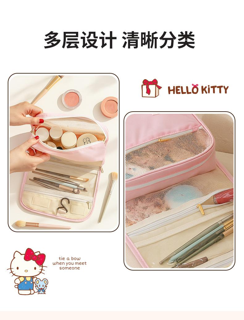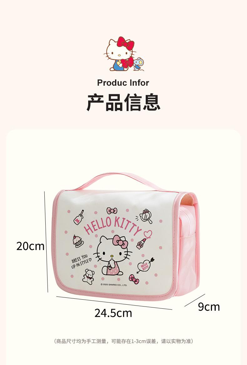 Sanrio Bolsa de Viaje con Gancho de Gran Capacidad para Artículos de Aseo Bolsa de Almacenamiento Colgante Bolsa de Maquillaje Multifuncional Impermeable de Mano para Mujer