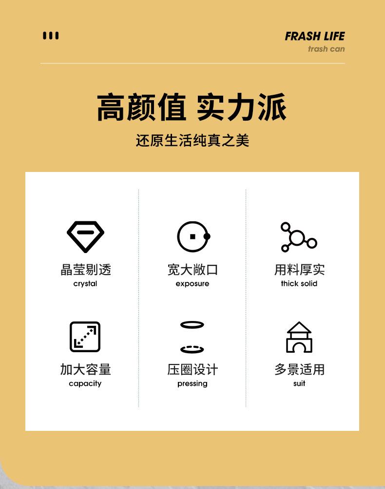 Bote de Basura Doméstico de Alta Calidad para Cocina, Contenedor de Residuos de Gran Capacidad, Cesto de Basura de Lujo Ligero para Sala de Estar, Baño y Aseo