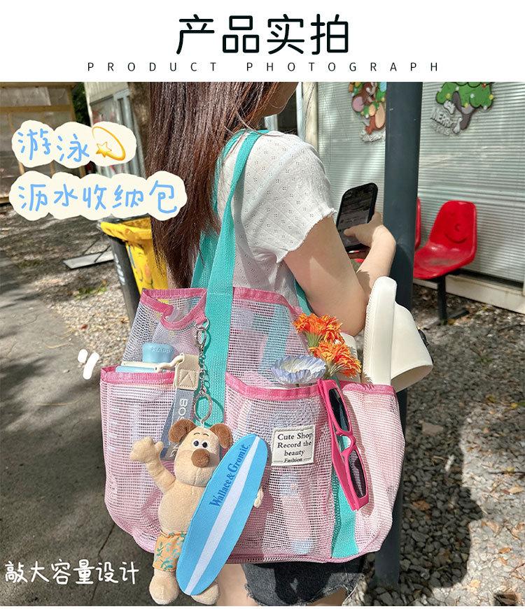 Bolsa de Malla para Natación Portátil de Gran Capacidad Bolsa de Playa Viaje Baño Fitness Lavado Almacenamiento Traje de Baño Bolsillo de Malla para Baño