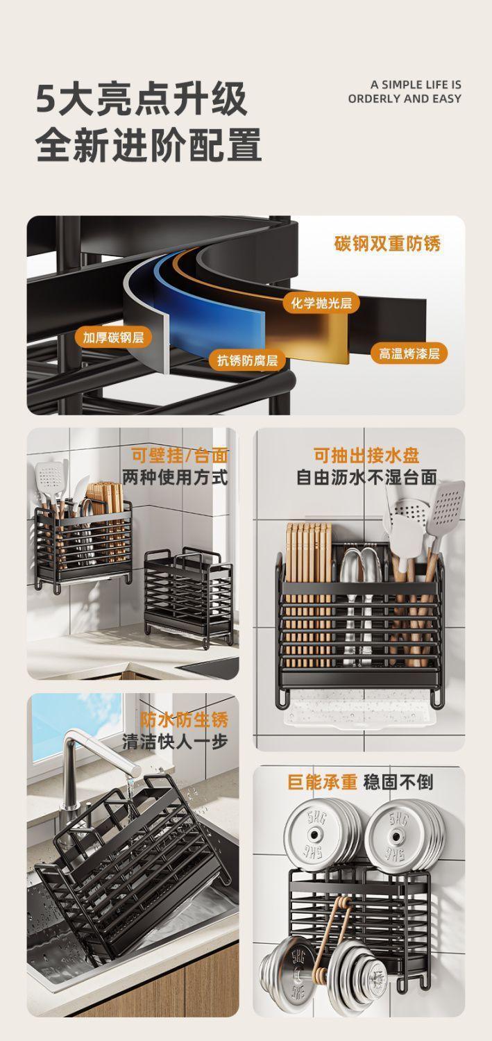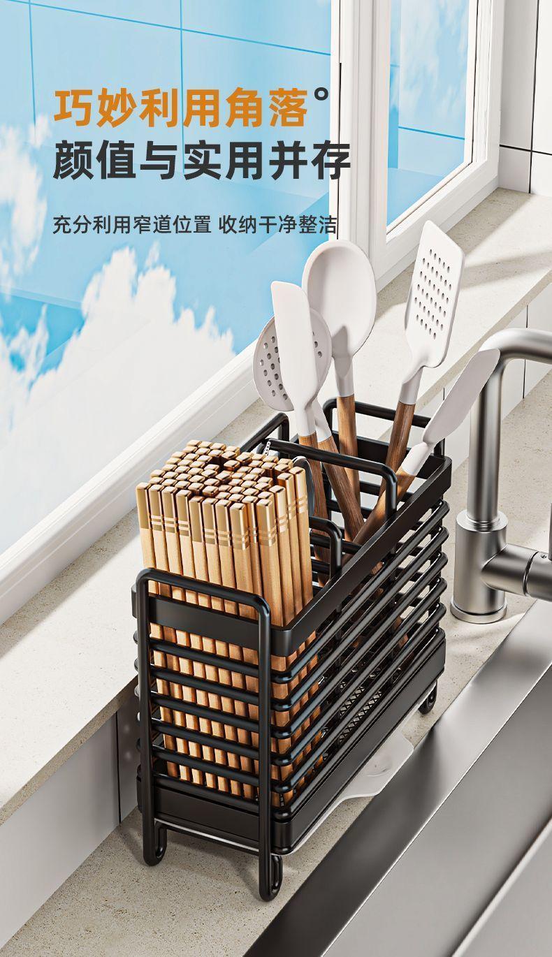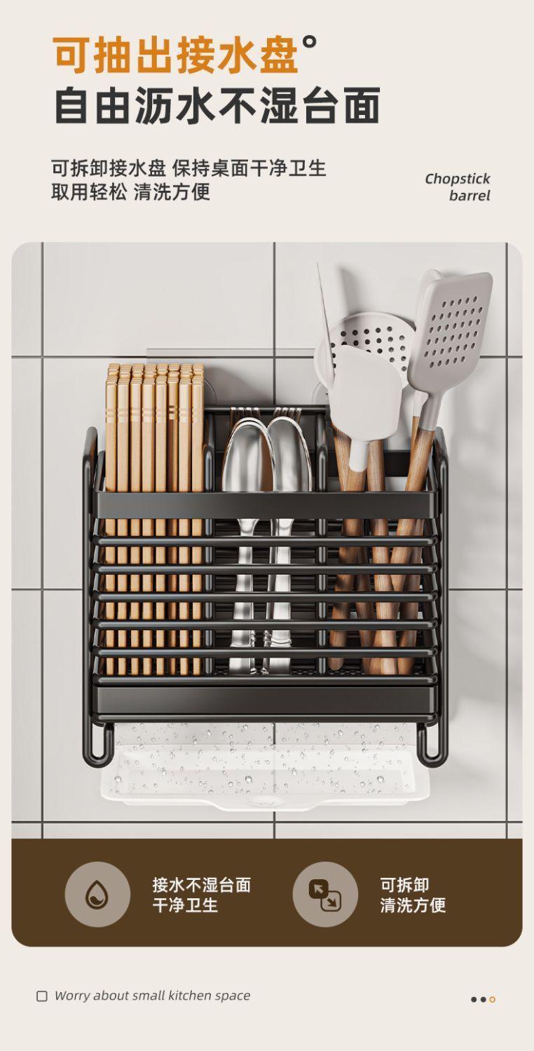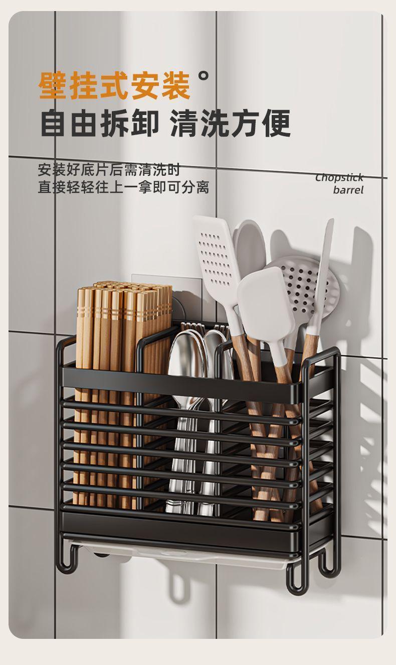 Caja de Almacenamiento de Palillos Soporte para Palillos Montado en la Pared Cubo de Drenado Rápido Cesta Estante Cocina Hogar Nuevo Estilo Soporte para Cucharas