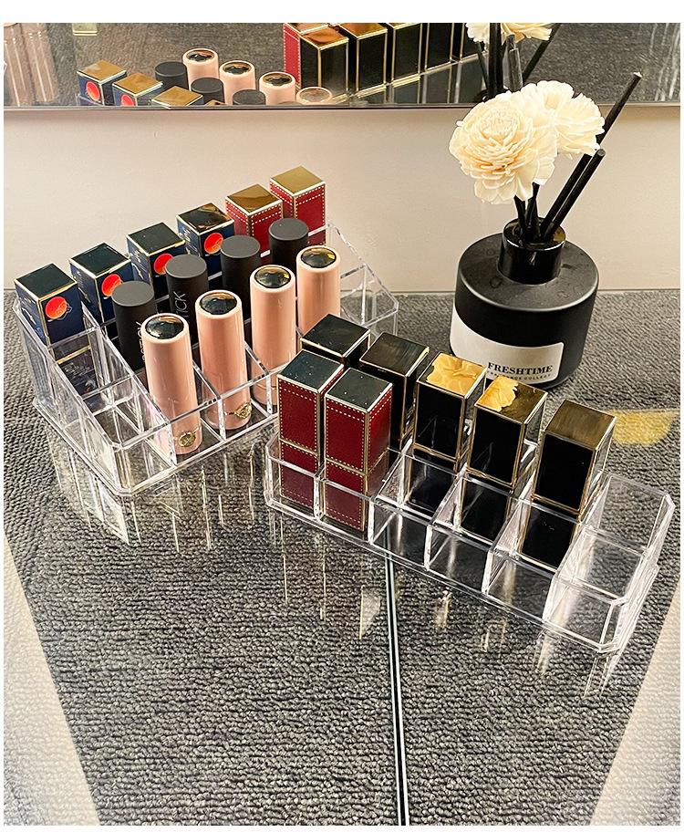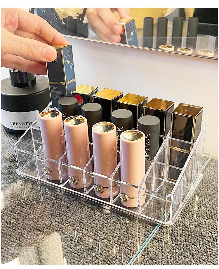 Caja de Almacenamiento de Lápices Labiales Estilo Ins de Múltiples Rejillas Lujo Ligero Acrílico Transparente Estante de Almacenamiento Organizador de Cosméticos de Escritorio Lápiz Labial